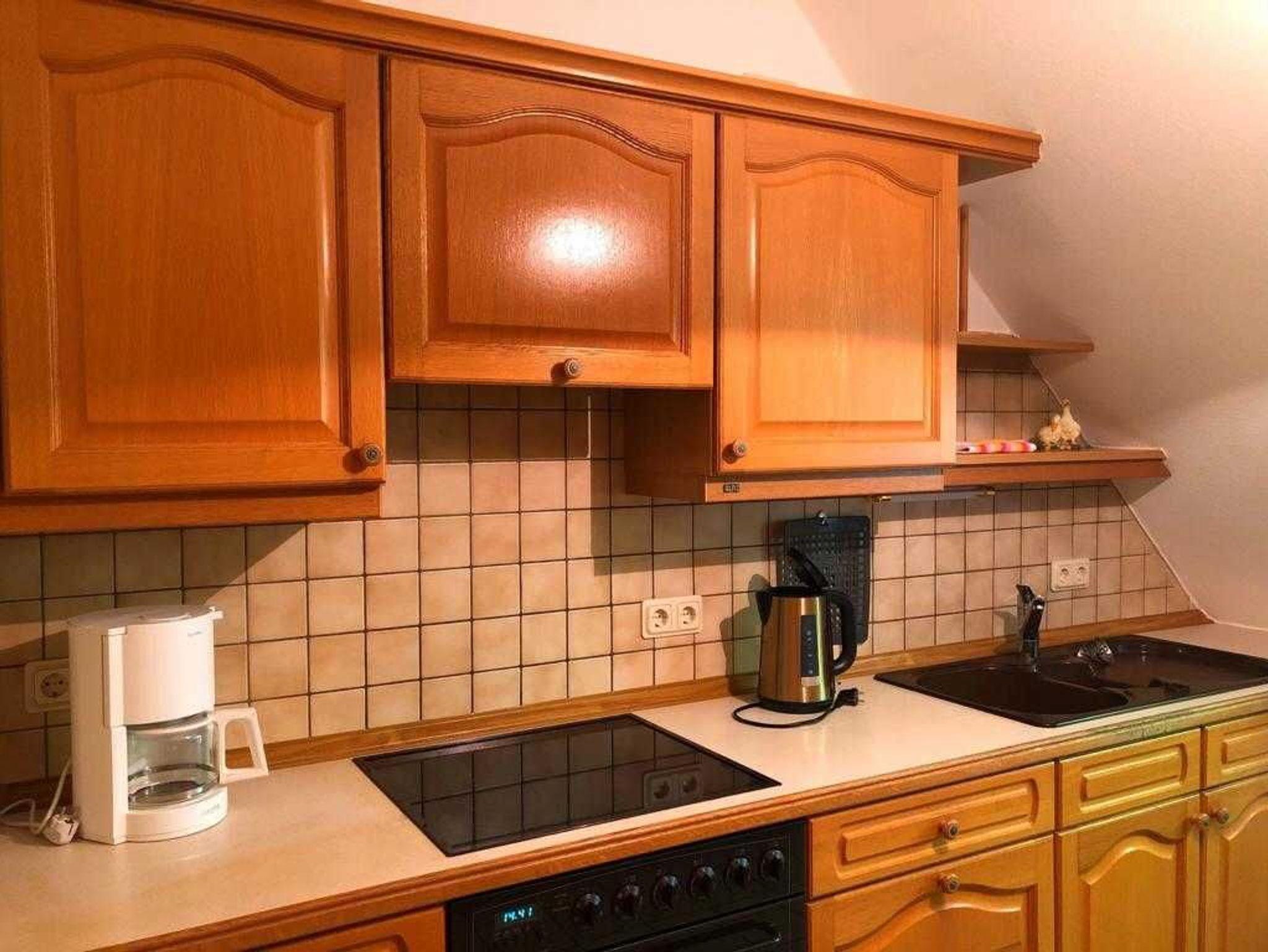 Die Küche ist folgendermaßen ausgestattet: E-Herd mit Backröhre, Geschirrspülmaschine, Mikrowelle, Kaffeemaschine, Toaster, Kühlschrank, Geschirr und Töpfe usw.. Sie werden alles finden, um Ihre Liebste/ Liebsten kulinarisch verwöhnen zu können.