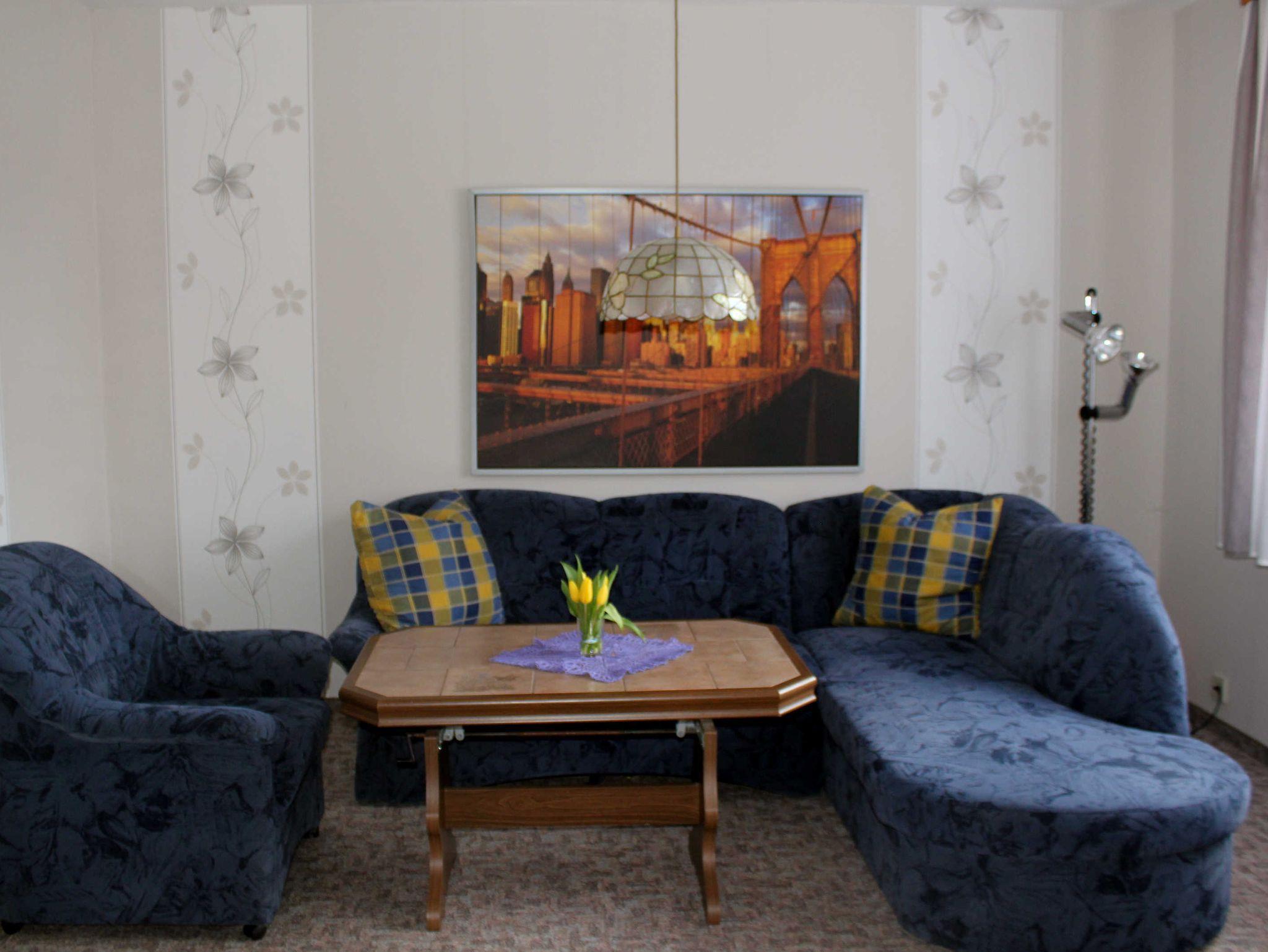 Das Haus hat ein gemütliches Wohnzimmer mit SAT-TV, DVD-Player und Radio. Das Sofa kann bei Bedarf als Schlafgelegenheit für 2 Personen genutzt werden.