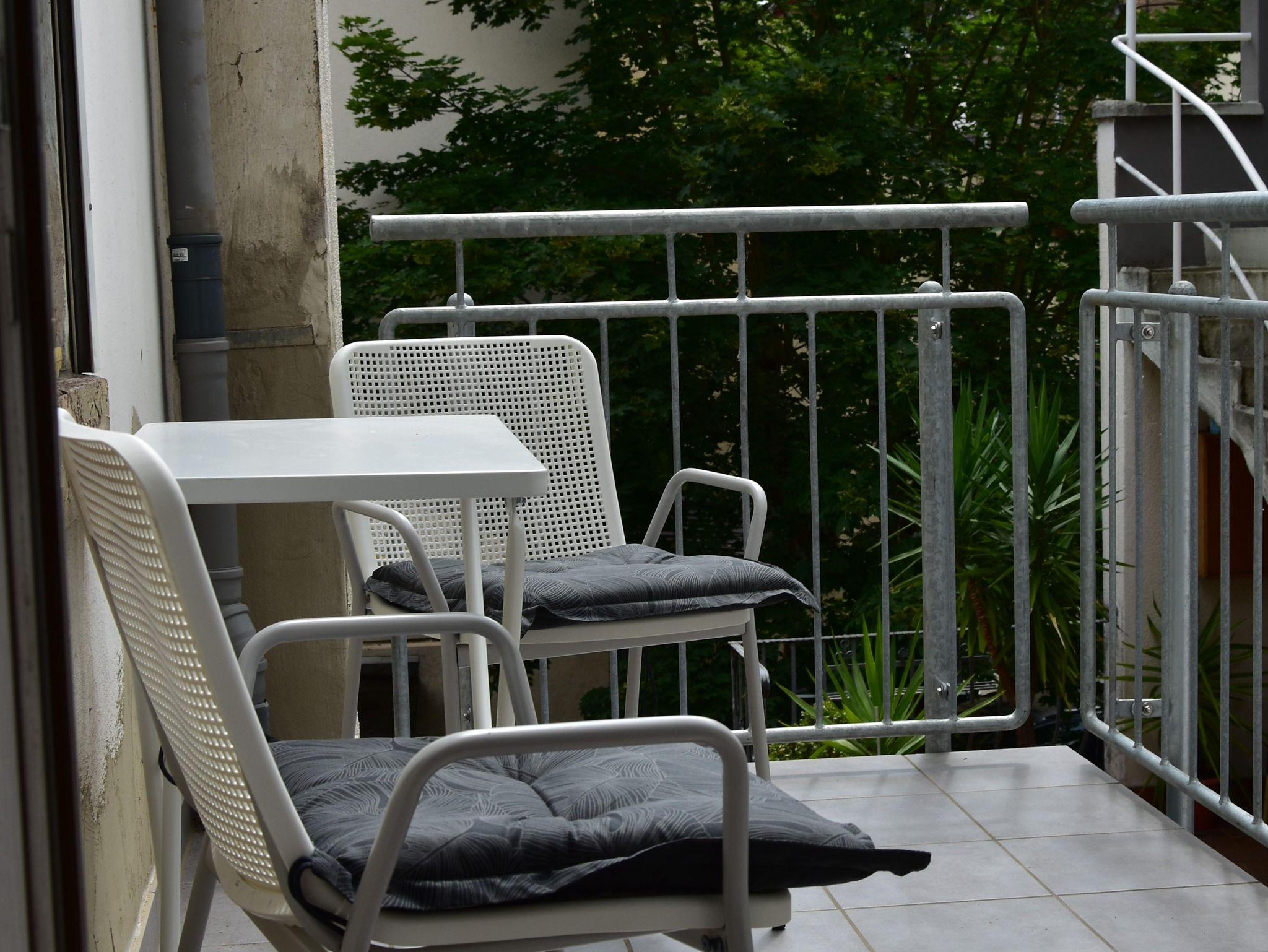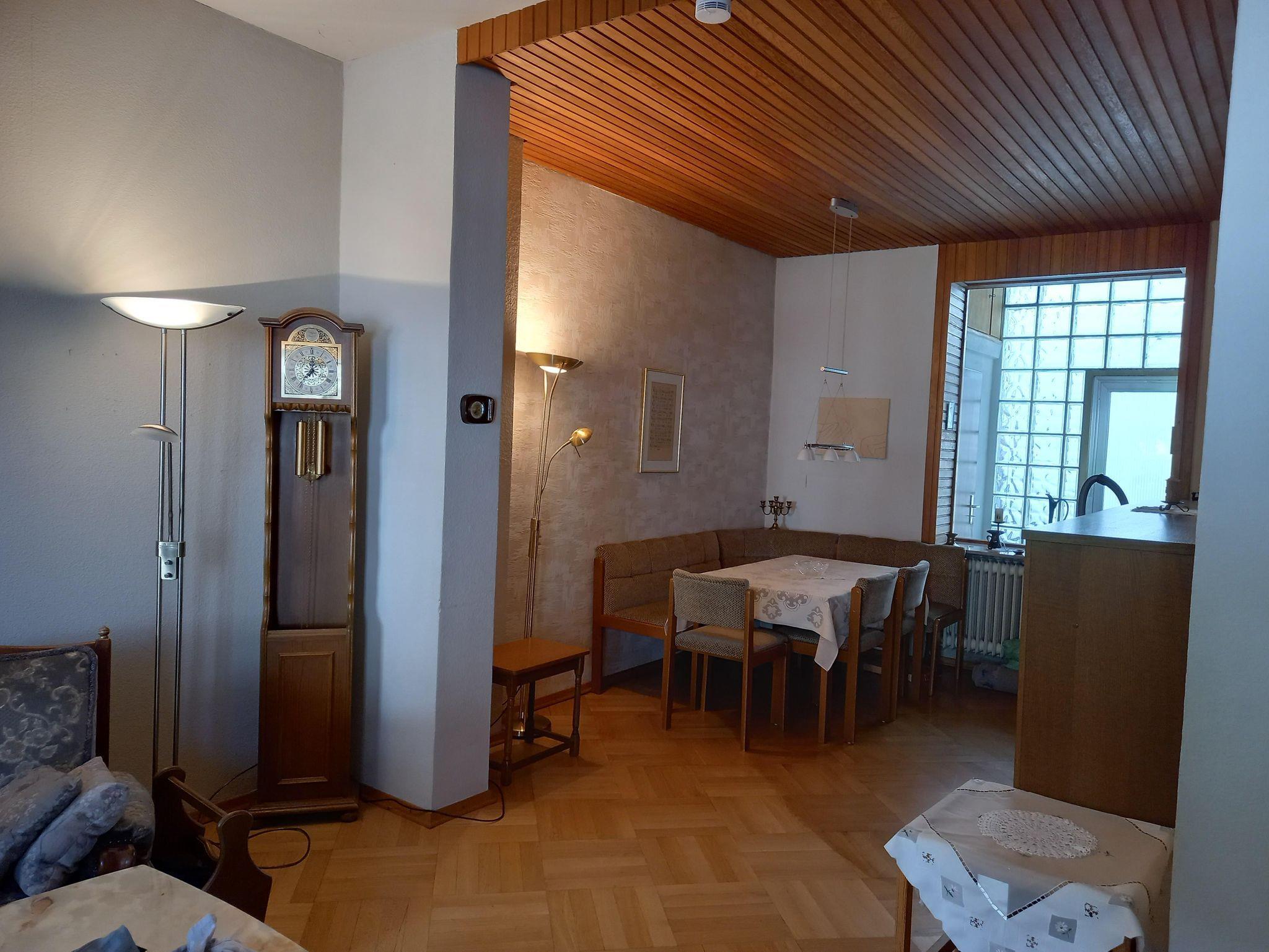 Das Wohn- und Esszimmer mit Balkon hat Blick auf den Marktplatz (TV-Gerät mit Amazon Fire-Stick, Internet-Radio und W-Lan Anschluss).