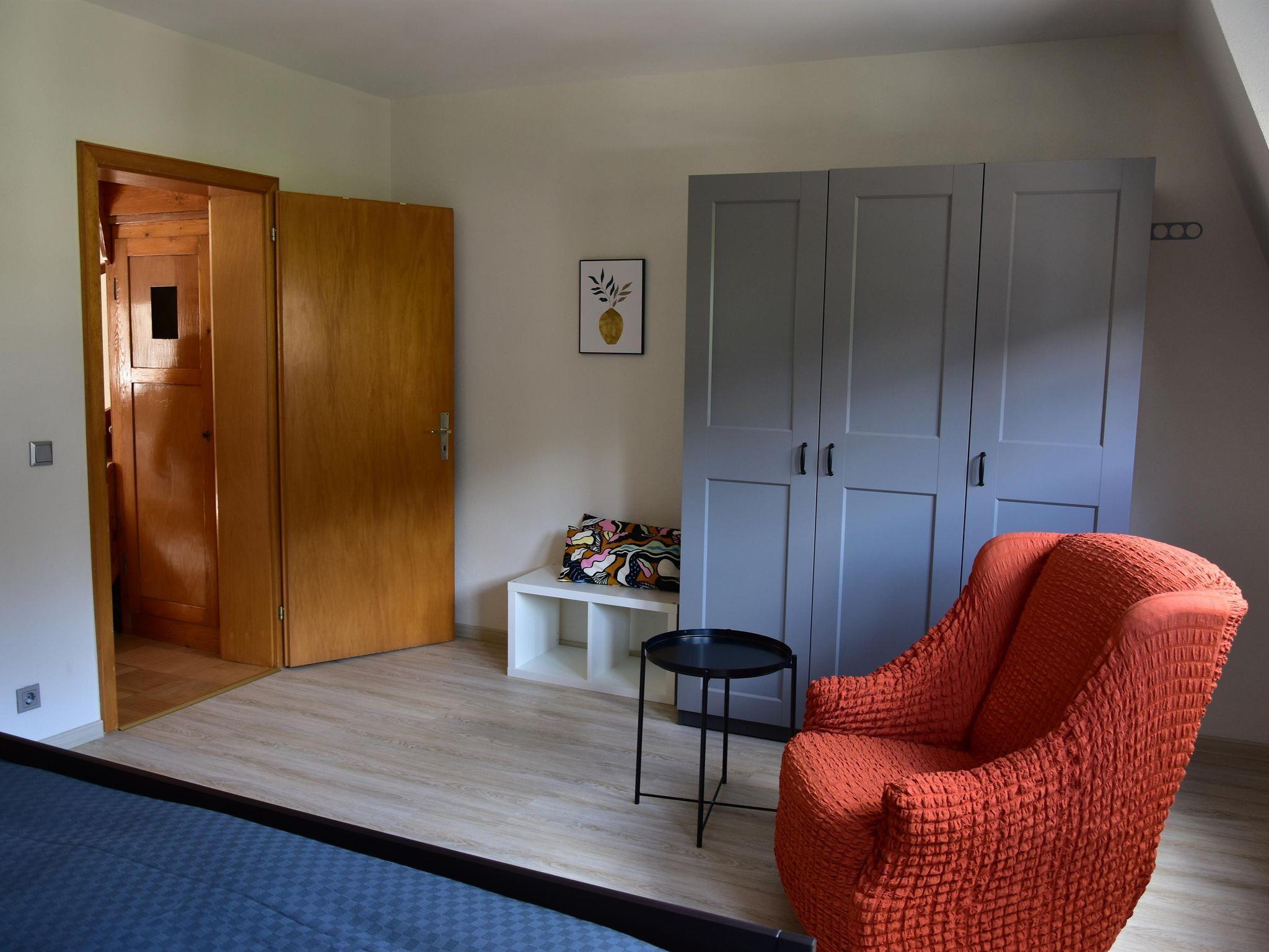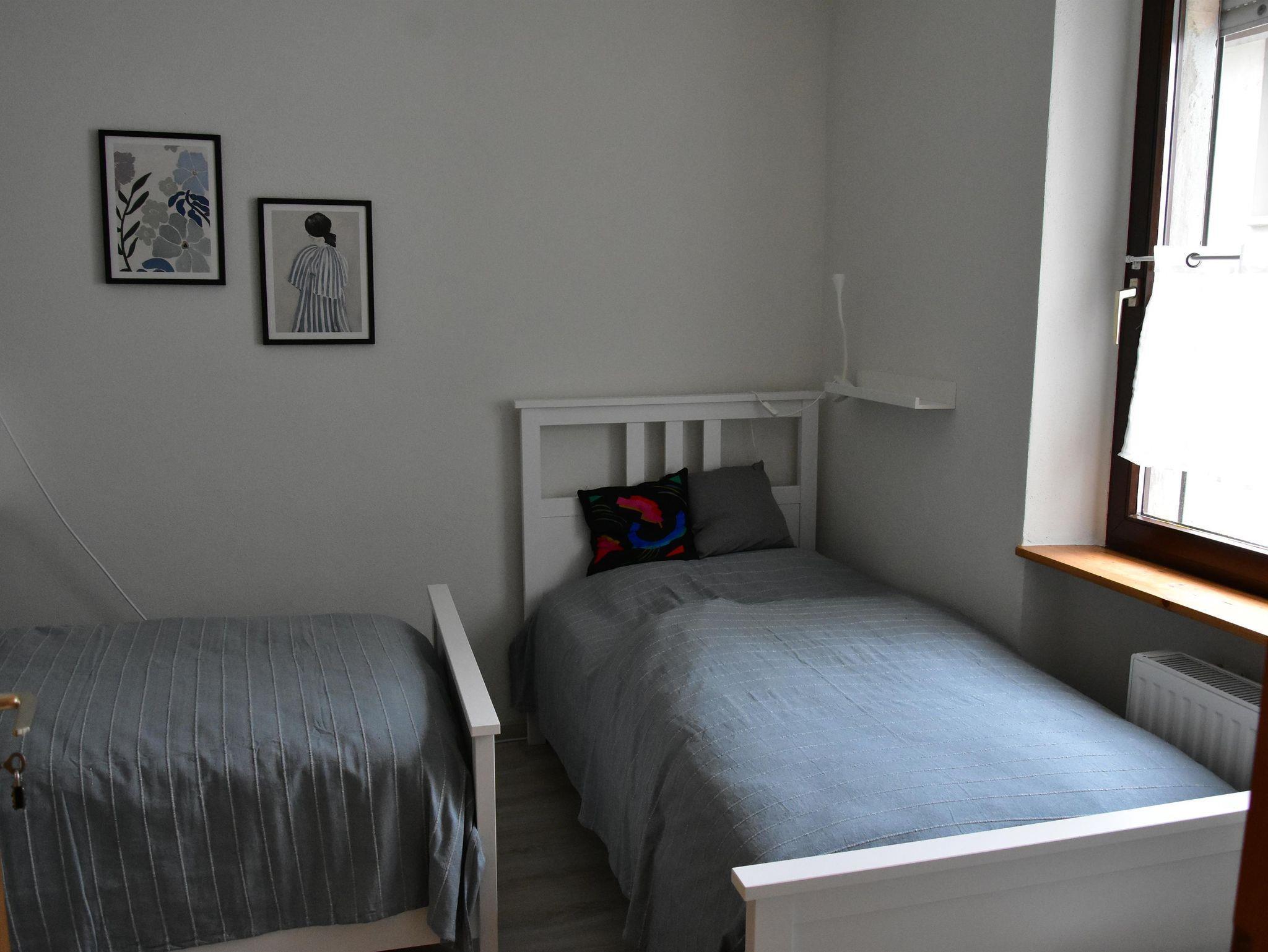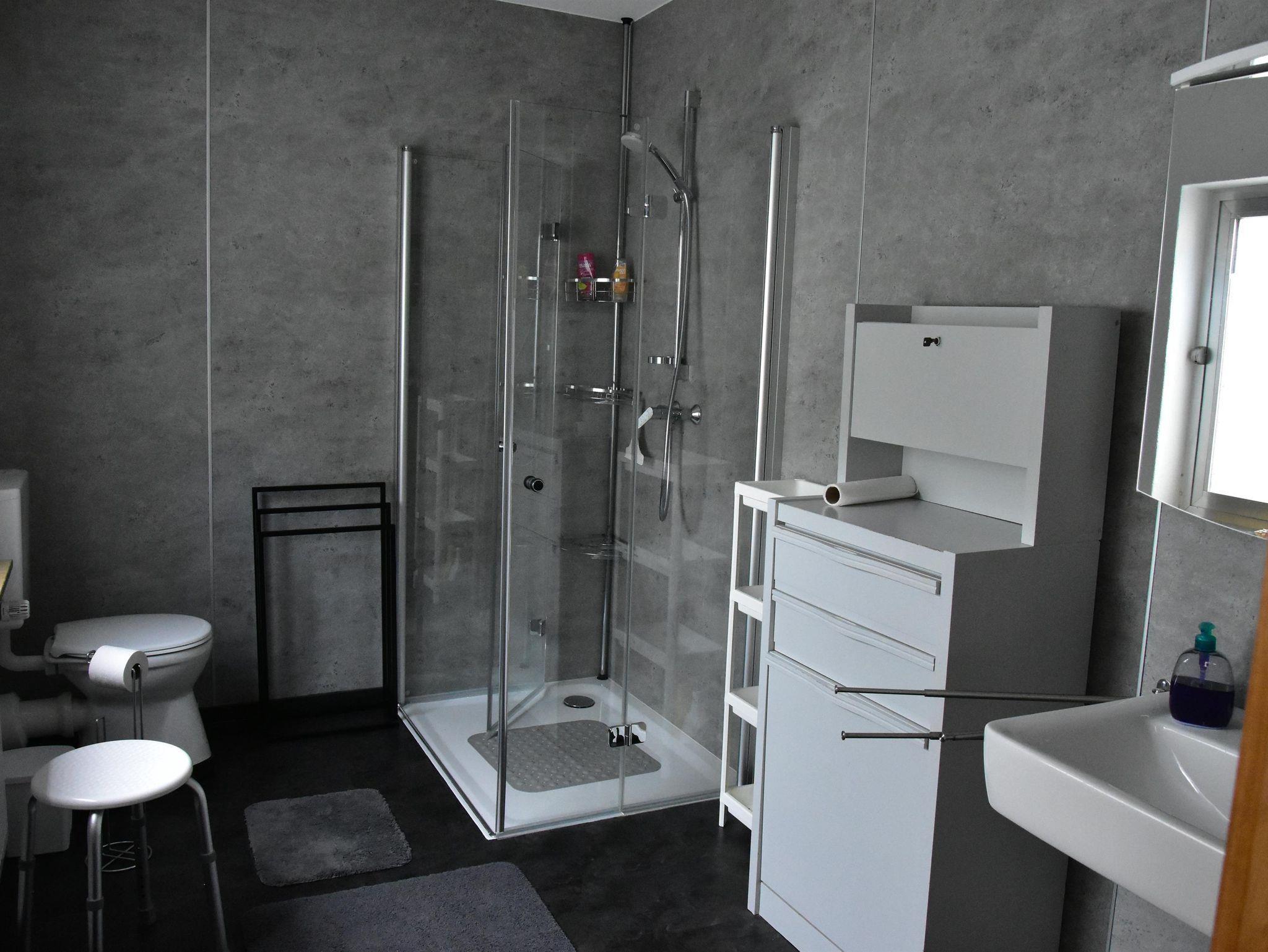Auf der zweiten Etage sind 2 Schlafzimmer (ein großes Zimmer mit Doppelbett 2x90cm und ein kleineres 2-Bettzimmer) ein neues, geräumiges Bad (Dusche, WC, Waschbecken, Fön) und eine kleine Terrasse.