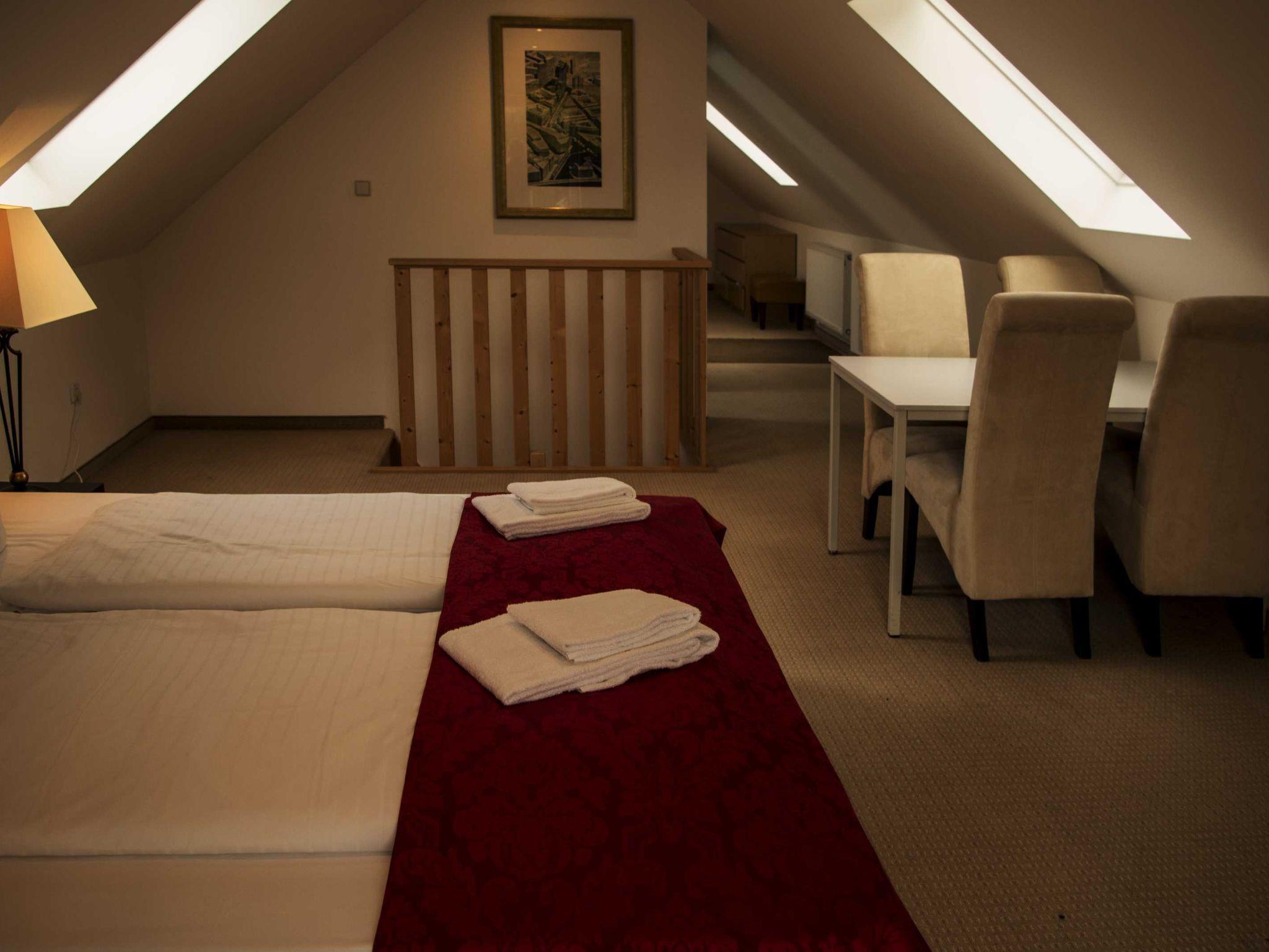3-Zimmer-Apartments (40-50 qm) für bis zu 7 Personen mit kombiniertem Wohn- / Schlafraum und zusätzlichen zwei separaten Schlafzimmern. Die Apartments verfügen über kleine Kochnische mit einer Kaffeemaschine, Wasserkocher, einem Toaster und einem Kühlschrank, sowie einen Sitzbereich mit einem Flachbild-TV. Jedes Zimmer verfügt über kostenfreies WLAN. Das moderne Badezimmer mit Fußbodenheizung ist mit Dusche (ebenerdig), WC, Waschbecken und einem Haartrockner ausgestattet.