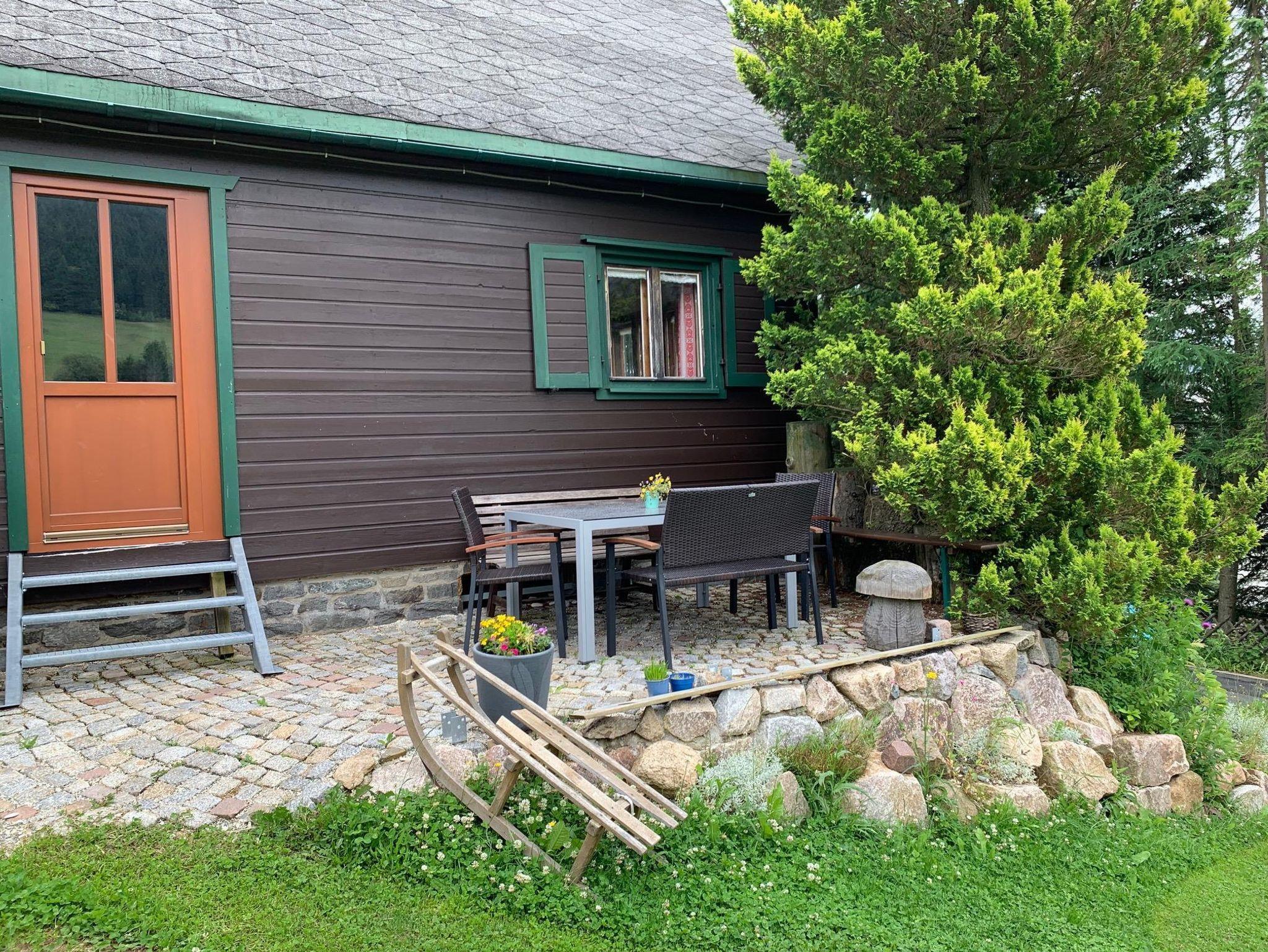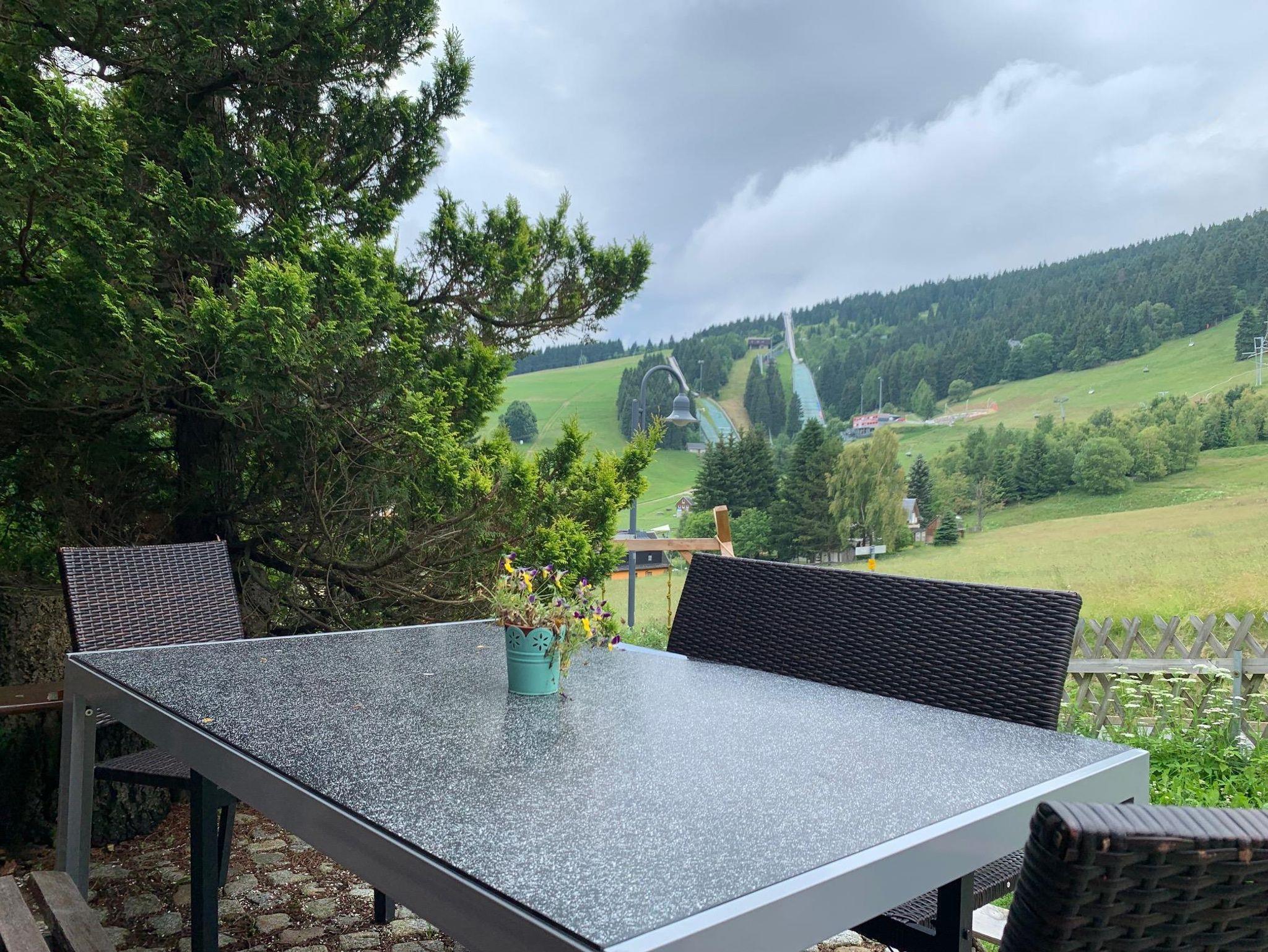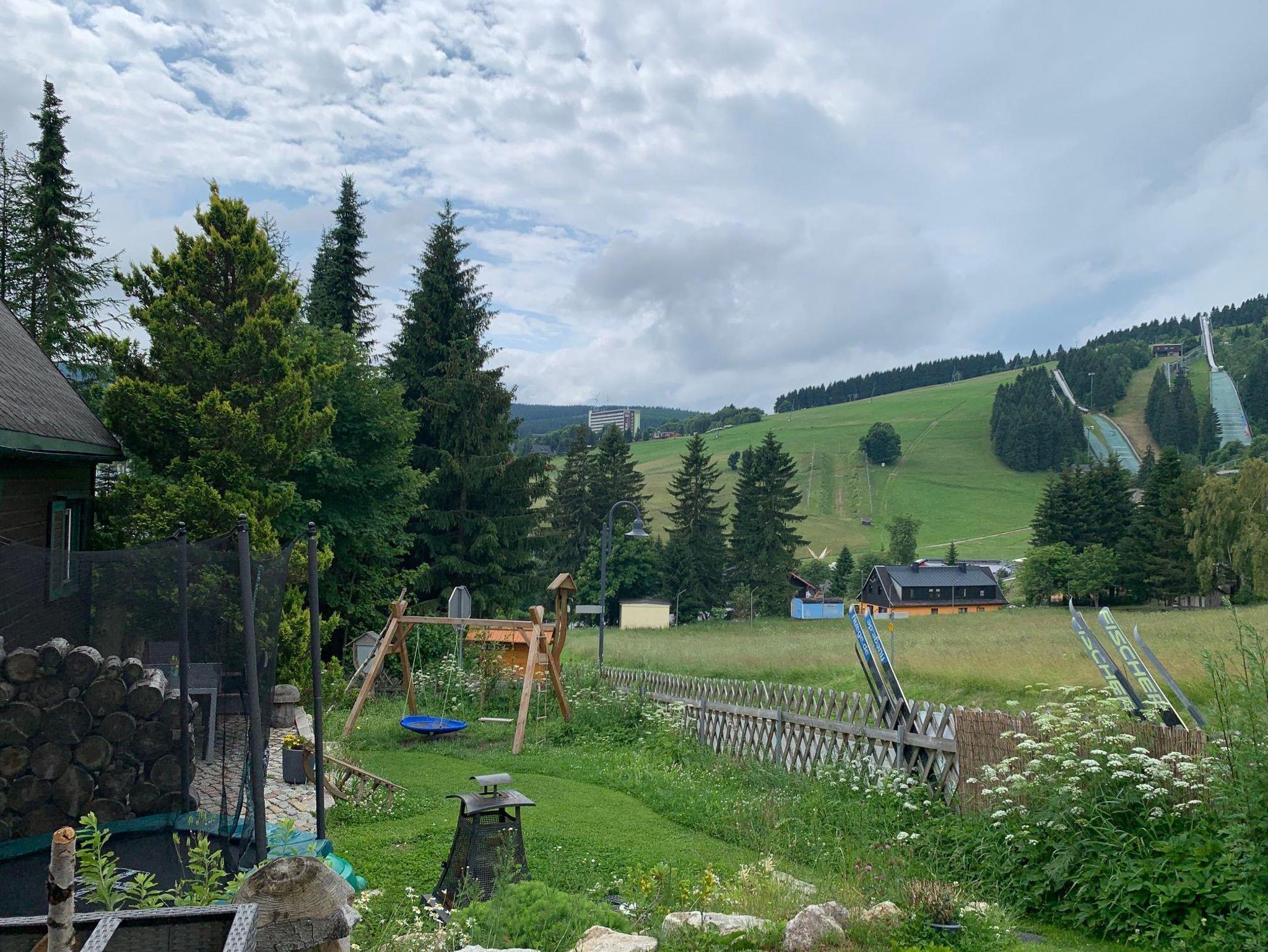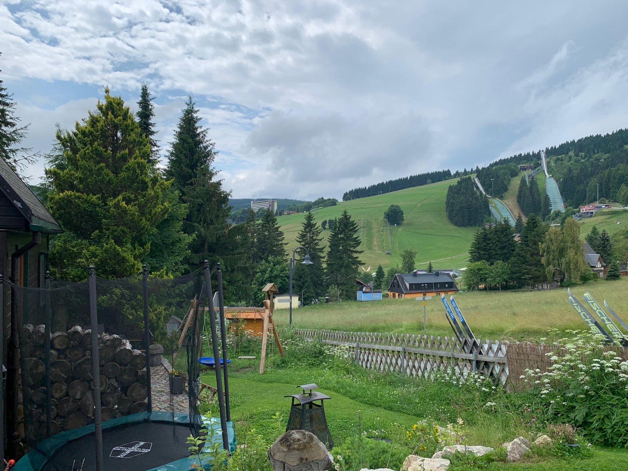 Die gemütlich, urige Berghütte mit Kachelofen bietet Platz für max. 8 Pers. & liegt direkt am Rodelhang. Genießt die Aussicht auf Bergwiesen, die Sprungschanzen und den Fichtelberg. Kommt herein und fühlt euch wie zu Hause!