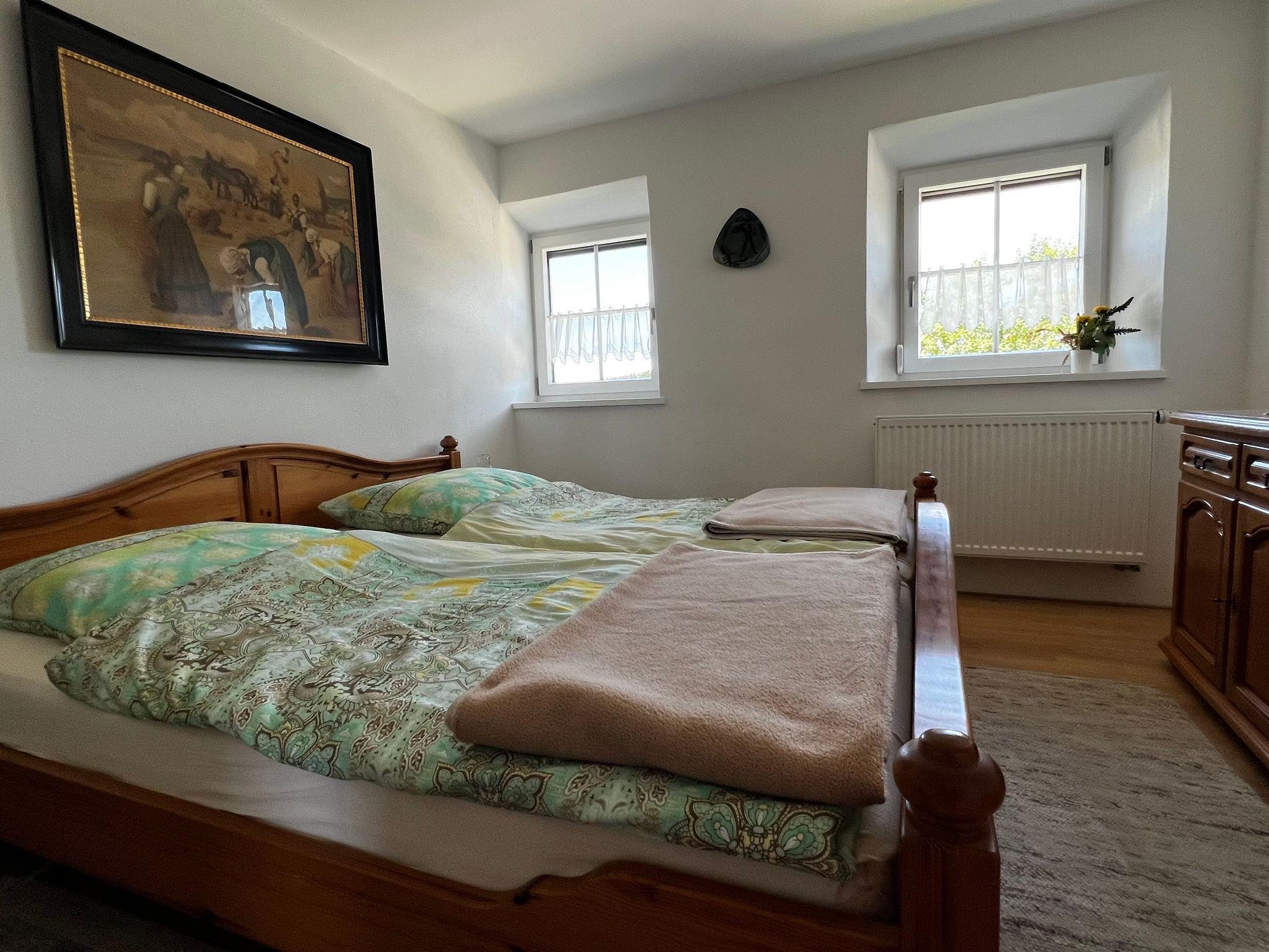 Die Wohnung im Stammhaus hat ein geräumiges Wohnzimmer, zwei Schlafzimmer und ein Bad im Obergeschoß. Im Erdgeschoß befindet sich die Küche, eine Stube und ein weiteres Bad mit Dusche.