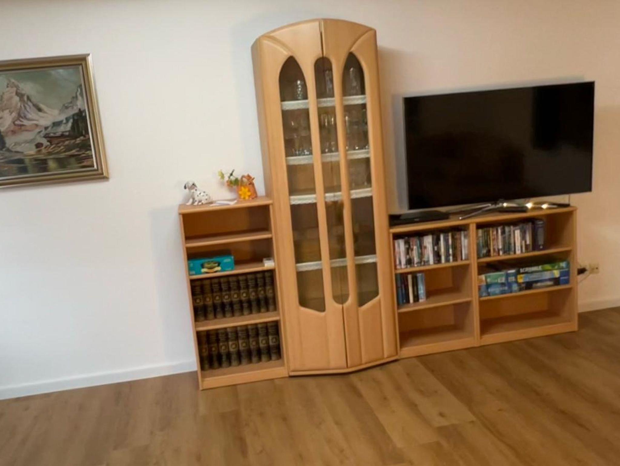 Die Wohnung hat ein geräumiges Wohnzimmer, zwei Schlafzimmer und eine Küche.
