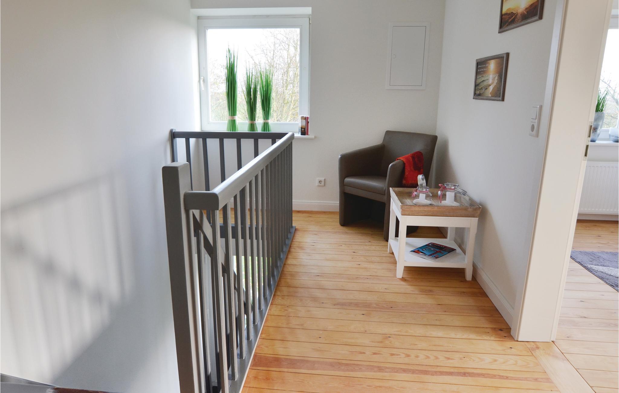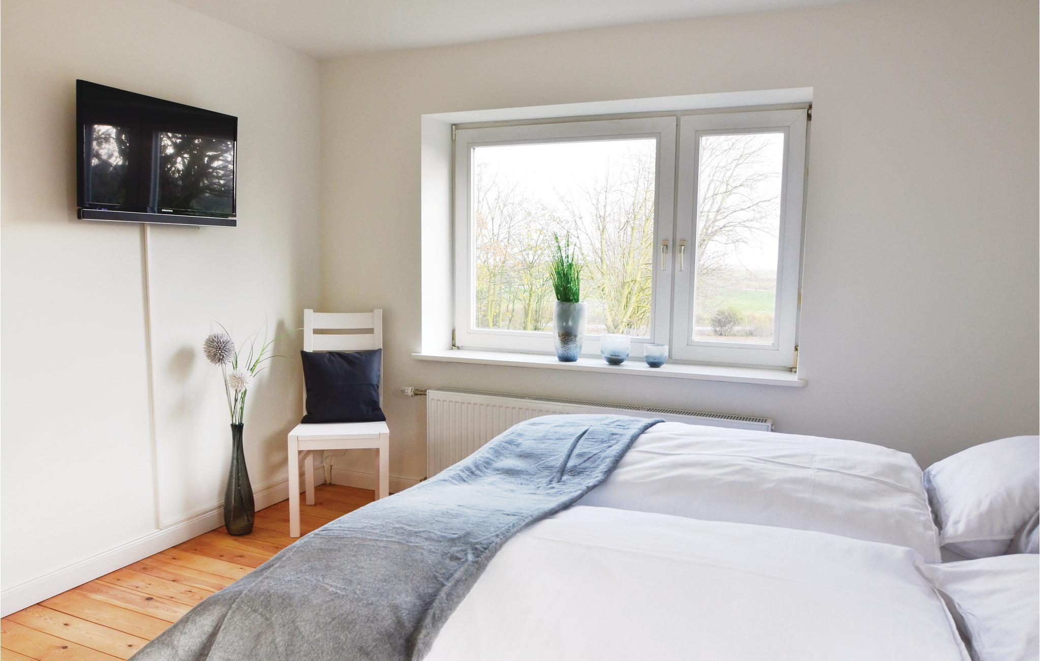 I de særdeles rummelige værelser, fordelt på to etager, er der plads til op til ni gæster. Den gamle bondestue er nu en hyggelig dagligstue med stort siddehjørne og moderne fladskærms-TV. Rummet, som er i åbent plan, går over i det moderne køkken med spiseområde samt et arbejdsværelse. Igennem de store panoramavinduer til haven gennemstrømmes værelserne af lys og byder på udsigt til de grønne omgivelser.