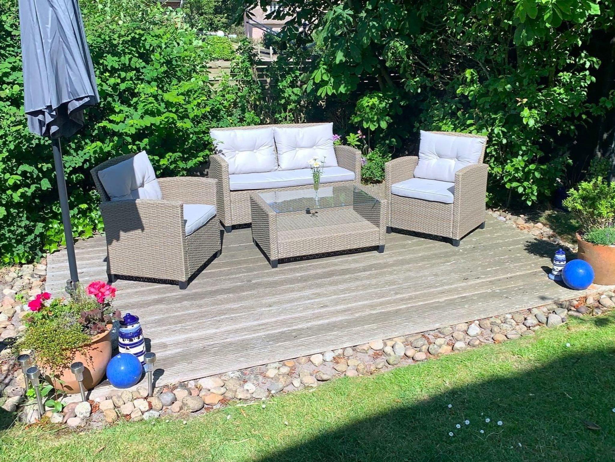 In dem wunderschönen ,gemütliche und geschützte eigene Garten, können Sie in den Sommermonaten die Ruhe genießen.