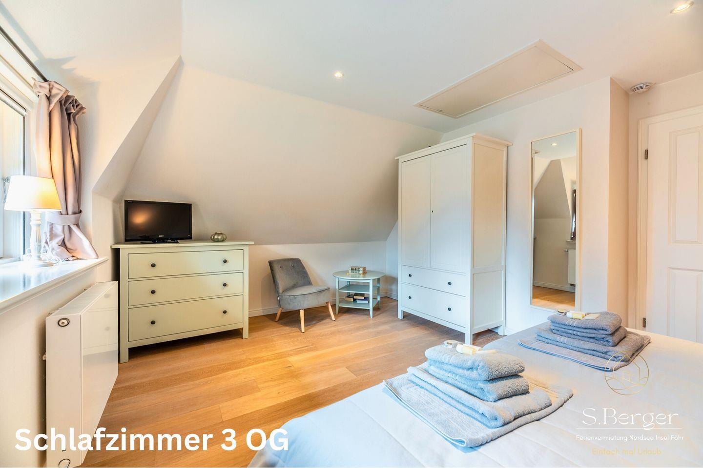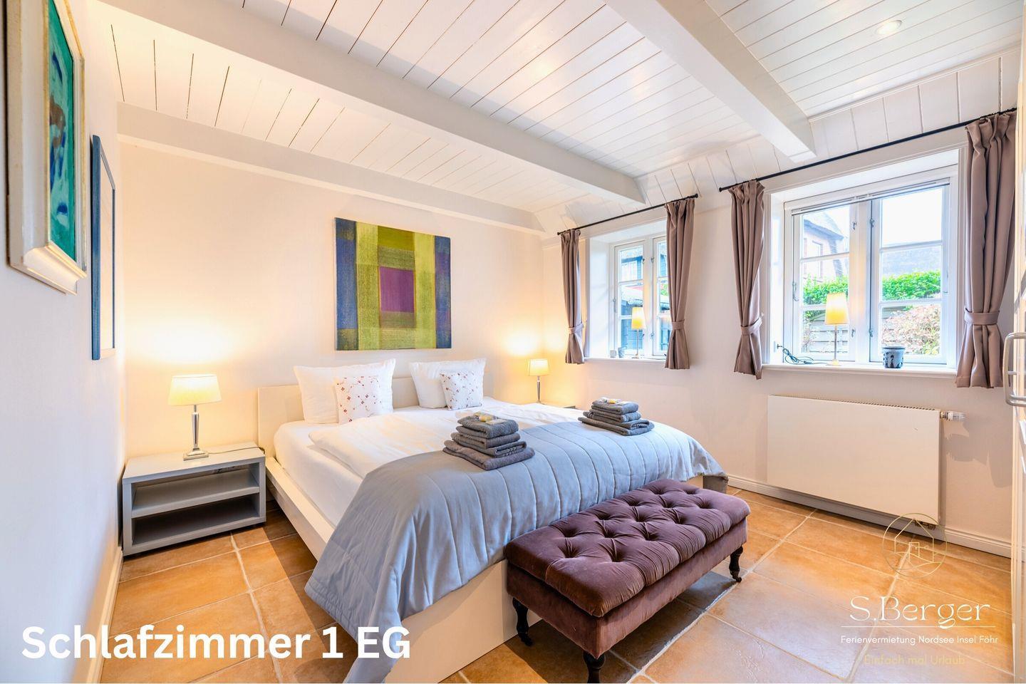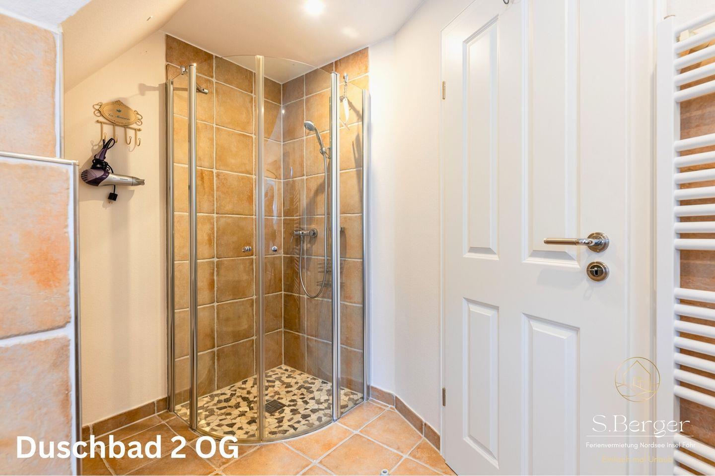 Zwei liebevoll gestaltete Schlafzimmer im Obergeschoss sorgen für erholsamen Schlaf. Das Duschbad verfügt über eine ebenerdige Dusche mit WC.