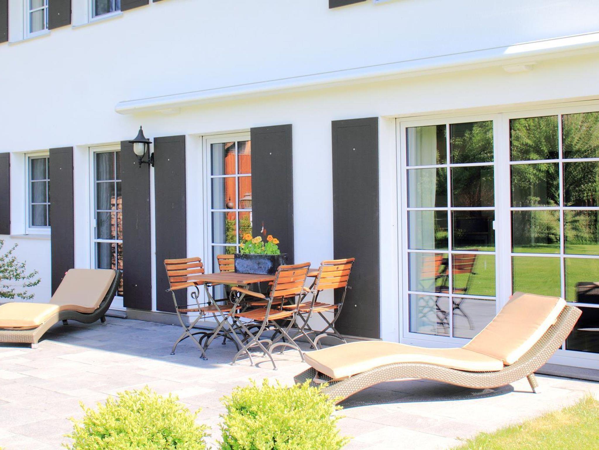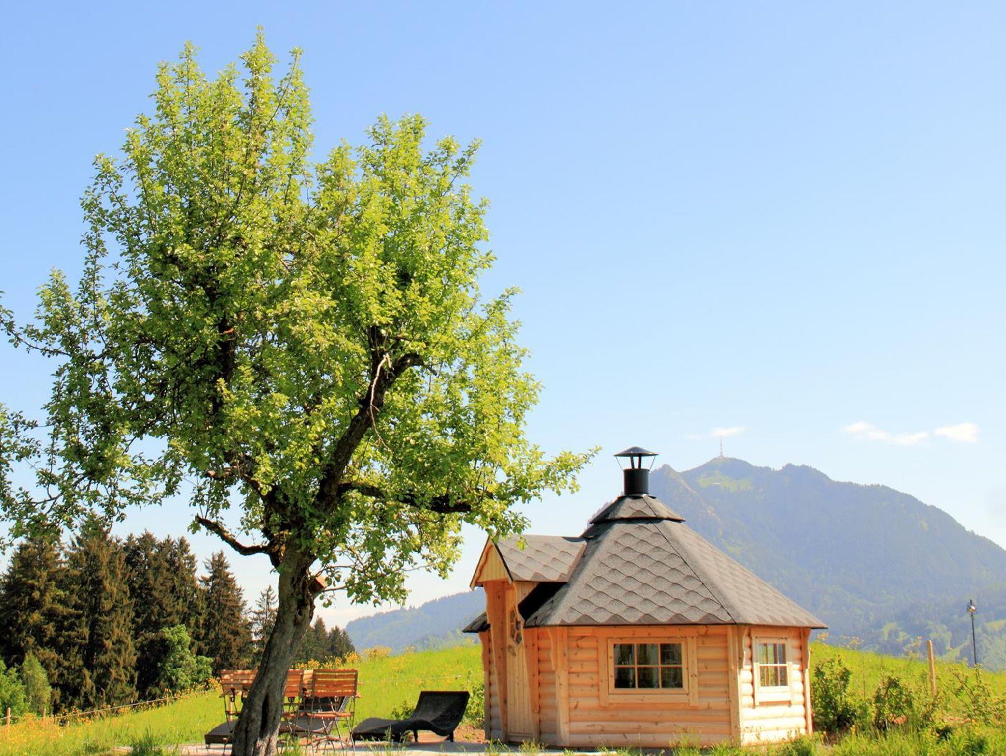 Das Fünf-Sterne-Ferienhaus AlpenLodge Allgäu mit seinen drei großzügigen Ferienappartements liegt in Hüttenberg, einem idyllischen Ortsteil von Ofterschwang in einer Höhe von ca. 860 m, direkt an den Ausläufen der Allgäuer Alpen. Das vollständig neu aufgebaute Bauernhaus im Allgäuer Stil bettet sich auf einem Hochplateau ein - mit einem atemberaubenden Ausblick über das gesamte Illertal. Der riesige Garten mit seinen fünf Schatten-spendenden Apfelbäumen und der finnischen Grillhütte wird durch keinen Zaun begrenzt. Alles ist offen und benutzbar samt kleinem Spielplatz und Fußballplatz für die jungen Gäste.