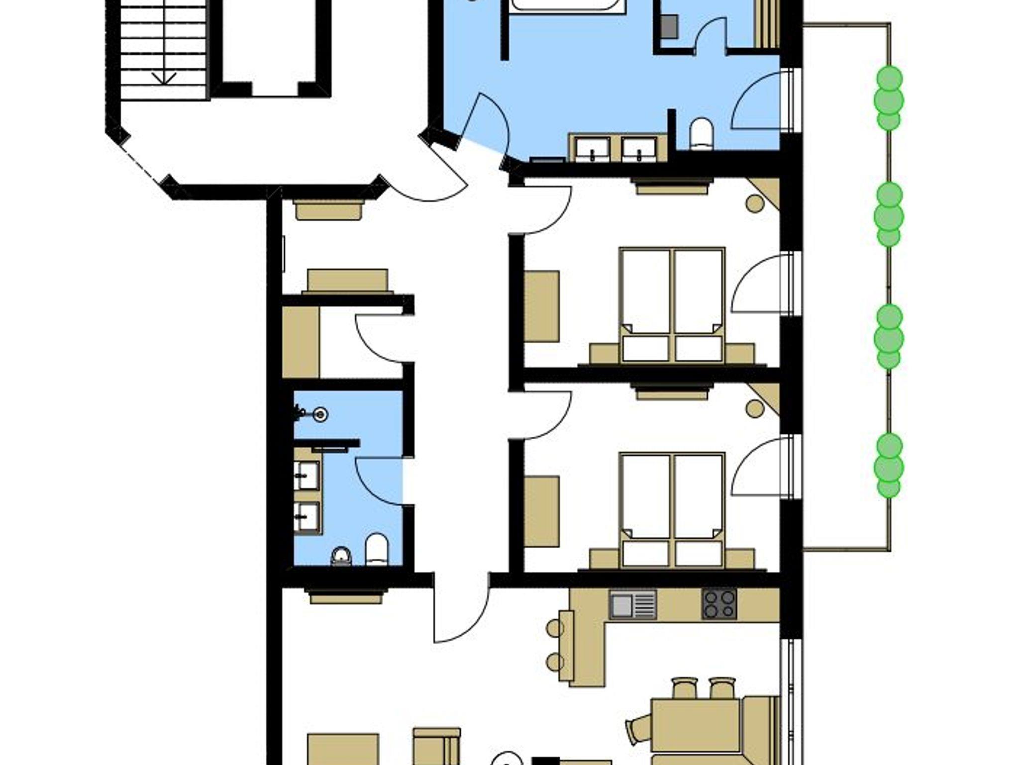 Jede Wohnung verfügt über zwei separate Schlafzimmer, zwei Balkone, zwei Bäder und eine private Sauna. Zusätzlichen Komfort bietet Ihnen unser Aufzug. Nur 200 Meter von der Bergbahn Weltcup-Express sowie dem Skigebiet Ofterschwang und 100 Meter vom Dorfzentrum entfernt, ist Ihr Urlaubszuhause der ideale Ausgangspunkt für Freizeitaktivitäten jeglicher Art, Sommer wie Winter.