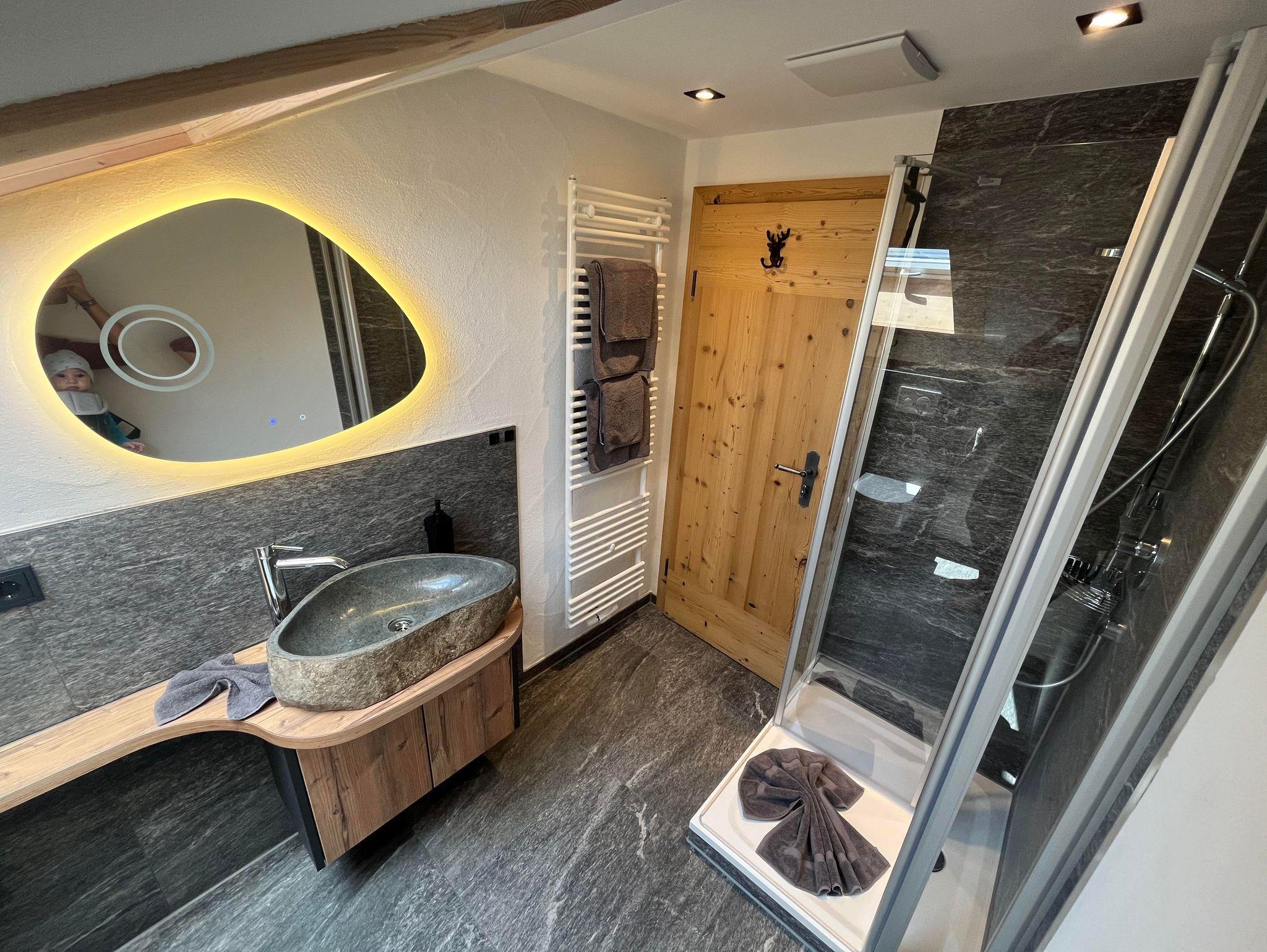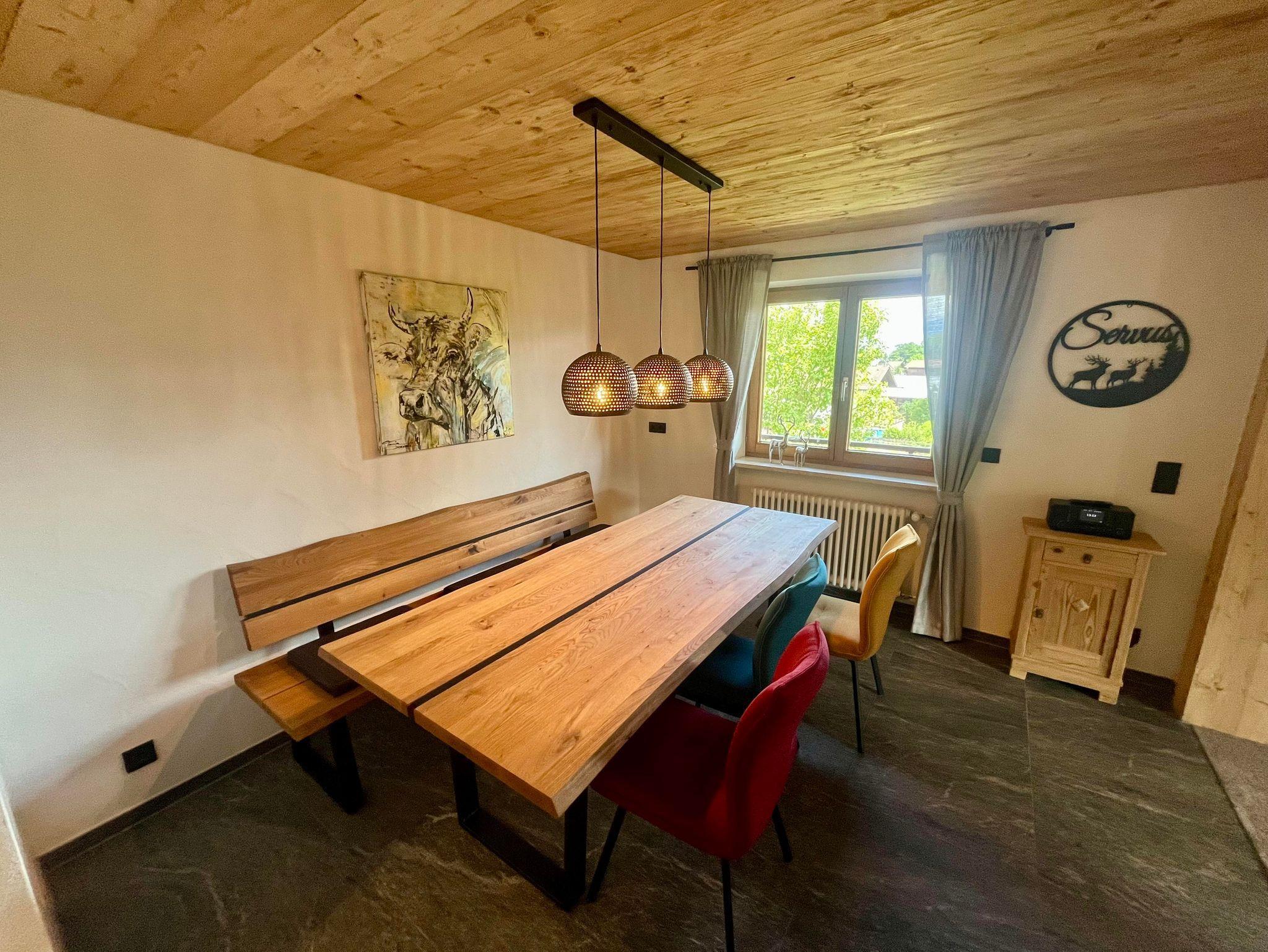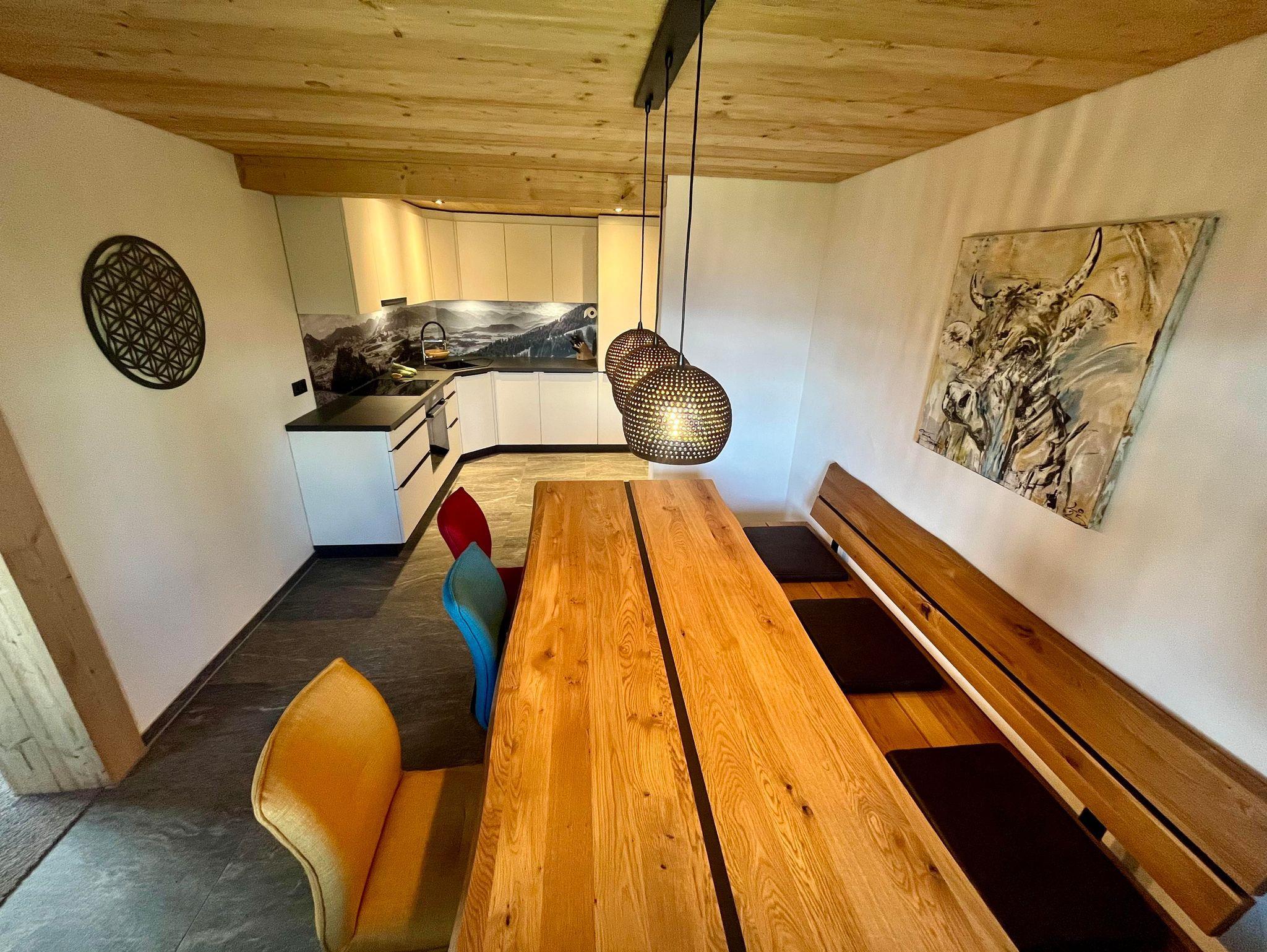 Neu renovierte FeWo, genießen Sie den Duft und den erholsamen Schlaf in Zirbenholzbetten und der gehackten Holzdecken. Moderne und großzügige Küche sowie einen Essbereich mit Platz für bis zu 8 Personen. 3 Schlazimmer mit eigenem Bad und natürlichen Steinwaschbecken. Sauna im Garten ab 2026! großer, sonniger Balkon mit rundum Bergsicht.
