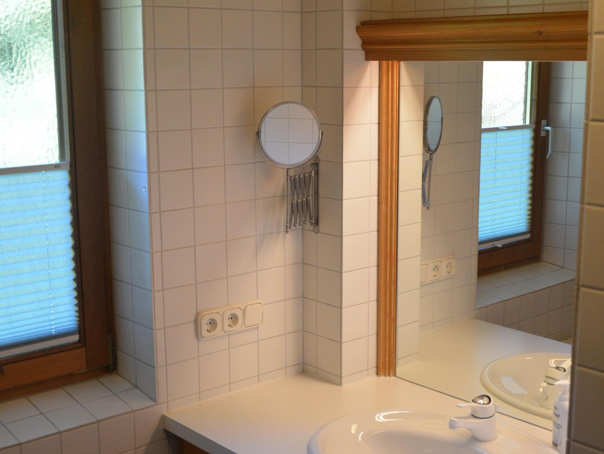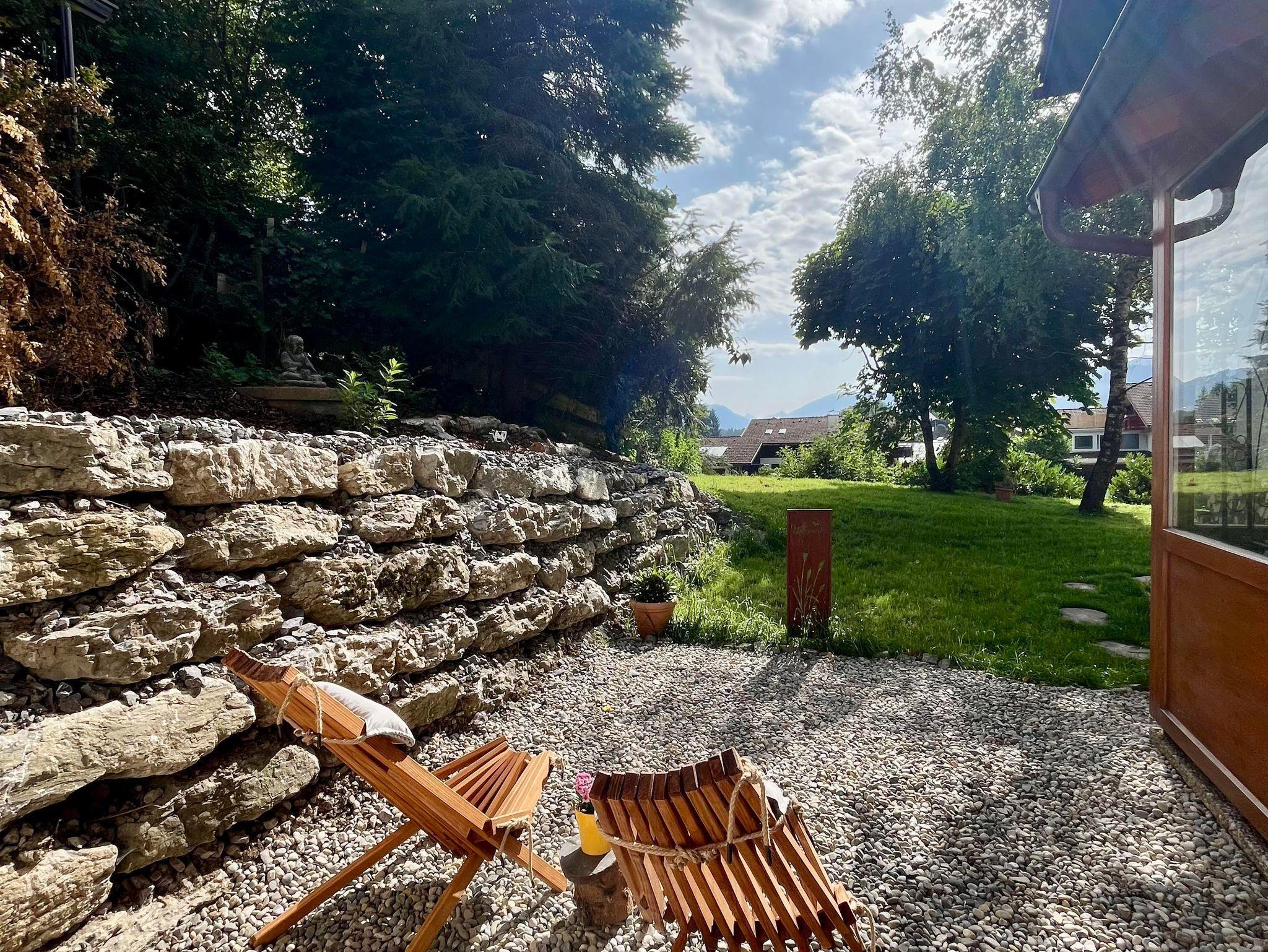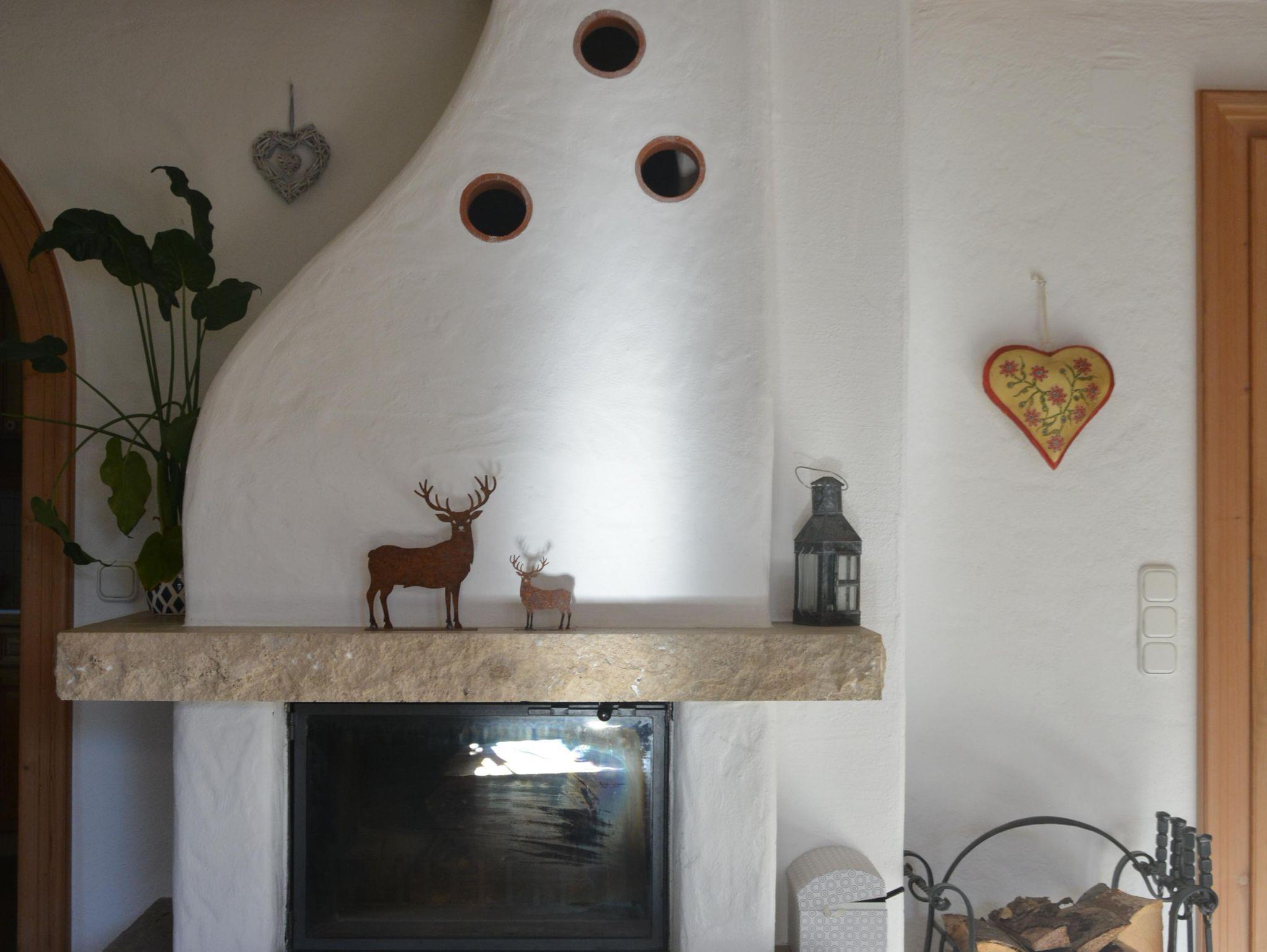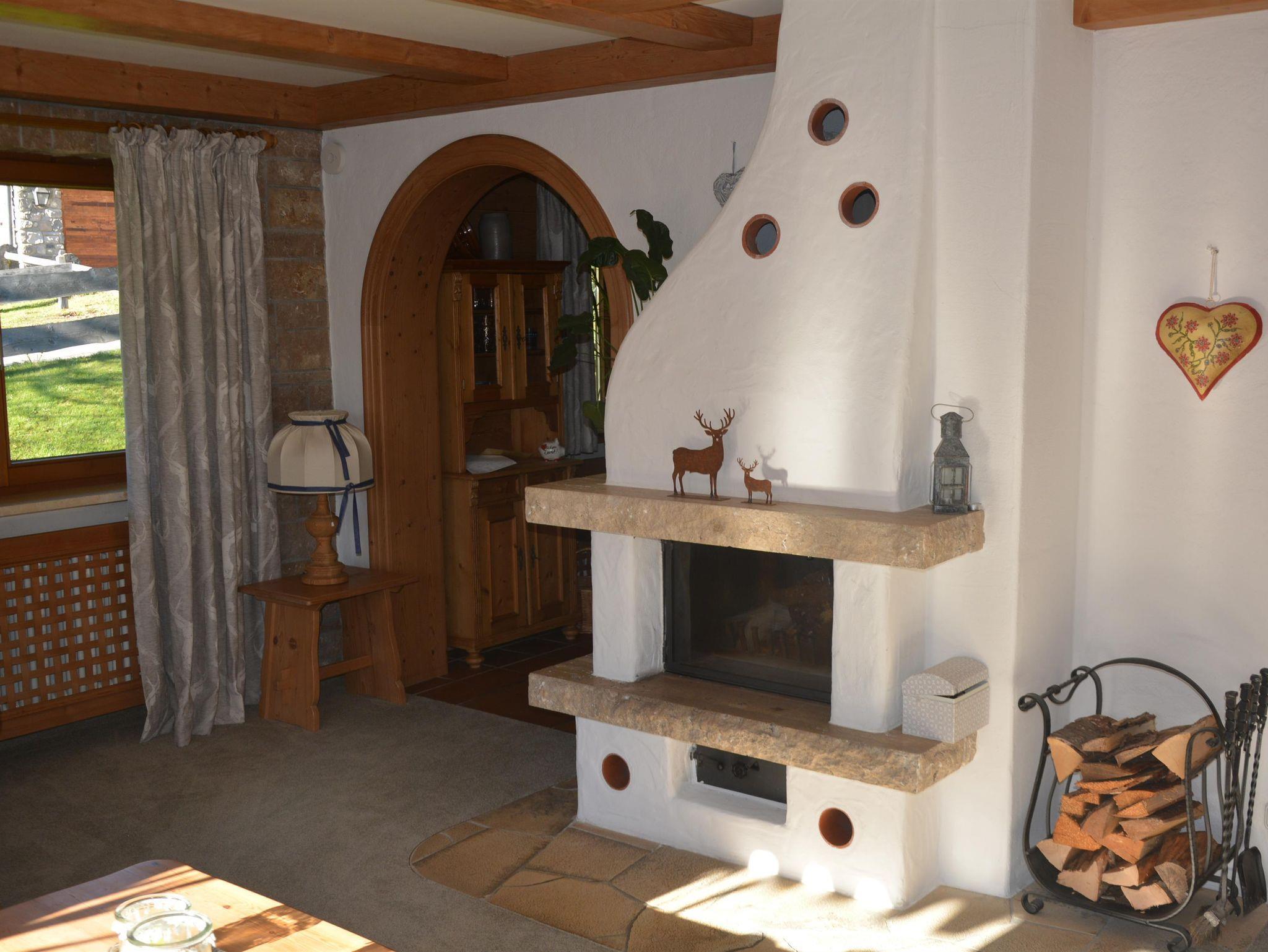 Schlafzimmer mit eigenem Bad, zusätzliches Gäste WC mit Dusche, voll ausgestattete Küche, Sonnenterrasse mit Liegestühlen und Sitzbank, offener Kamin im Wohnzimmer für romantische Stunden und Sauna im Keller.