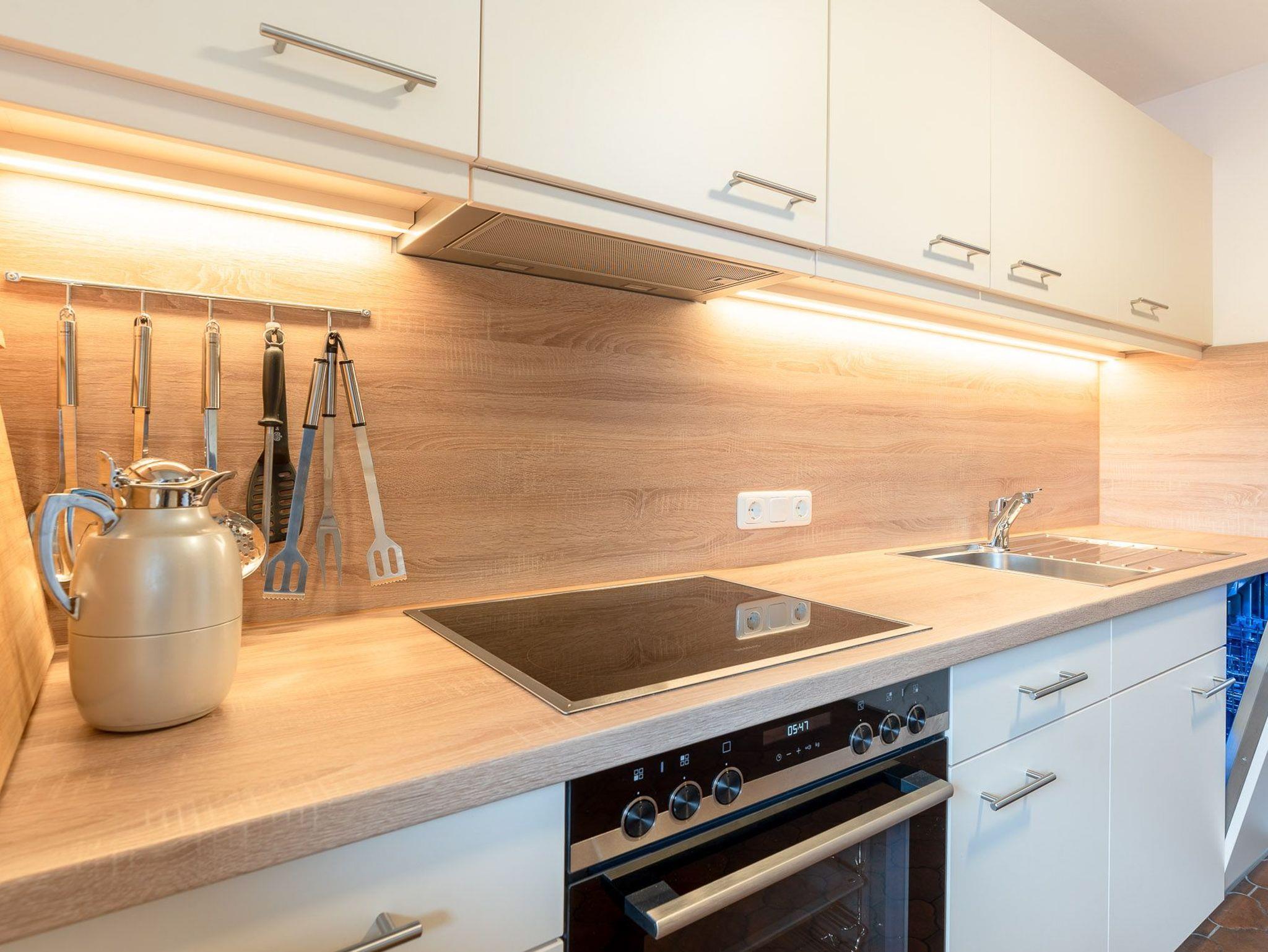 Im Erdgeschoss erwartet Sie eine kleine Küche von welcher Sie in den geräumigen Wohn-Essbereich gelangen. Hier können Sie sich an einem der beiden Essplätze, einer gemütlich am warmen Kachelofen der andere in einem Erker mit Ausblick bei einem ausgiebigen Frühstück oder einem Gläschen Wein entspannen oder Sie machen es sich auf der großen Sofalandschaft im geräumigen Wohnzimmer bequem. Von hier aus gelangen Sie auf die große Terrasse die im Sommer und im Winter ein herrlicher Ort ist um die warmen Sonnenstrahlen und die schneebedeckte, glitzernde Bergwelt zu genießen. In dieser Etage befinden sich zwei Schlafzimmer jeweils mit Doppelbett ausgestattet, ein separates WC und ein Badezimmer mit Dusche, Badewanne, Bidet und WC.