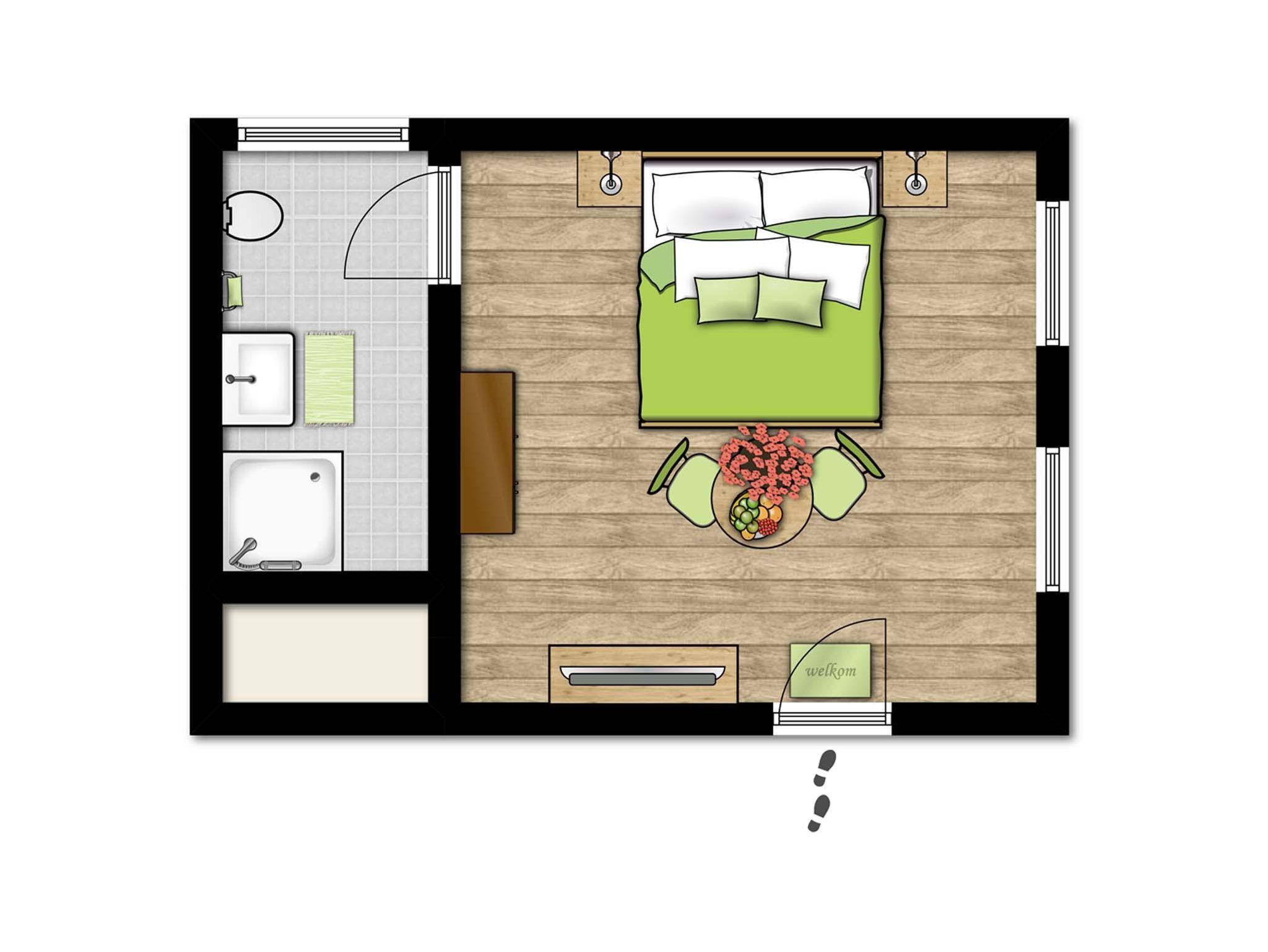 Ferienhaus am Mühlbach, Doppelzimmer Wiesengrün