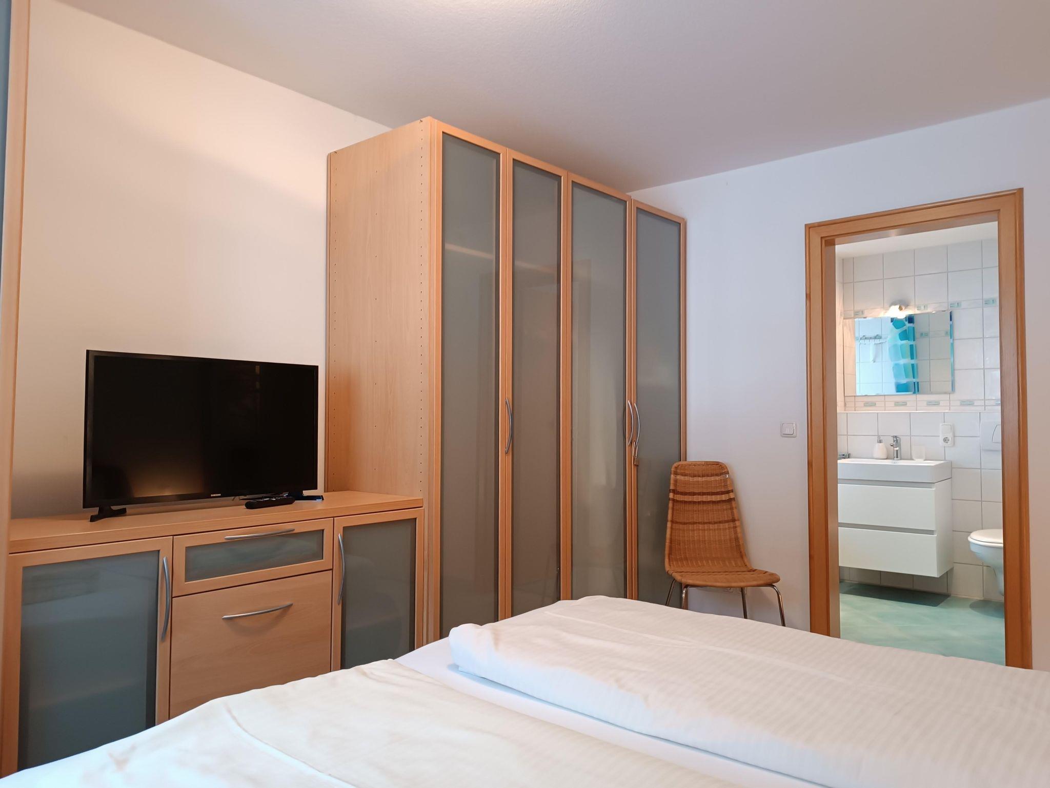 Geräumige, helle 3-Raum Ferienwohnung im ersten Obergeschoss, 70qm für 2-5 Personen, 2 getrennte Schlafzimmer, TV im Hauptschlafzimmer, 2 Bäder, Ostbalkon, Wintergarten, kostenloser PKW-Stellplatz in der Tiefgarage, WLAN
