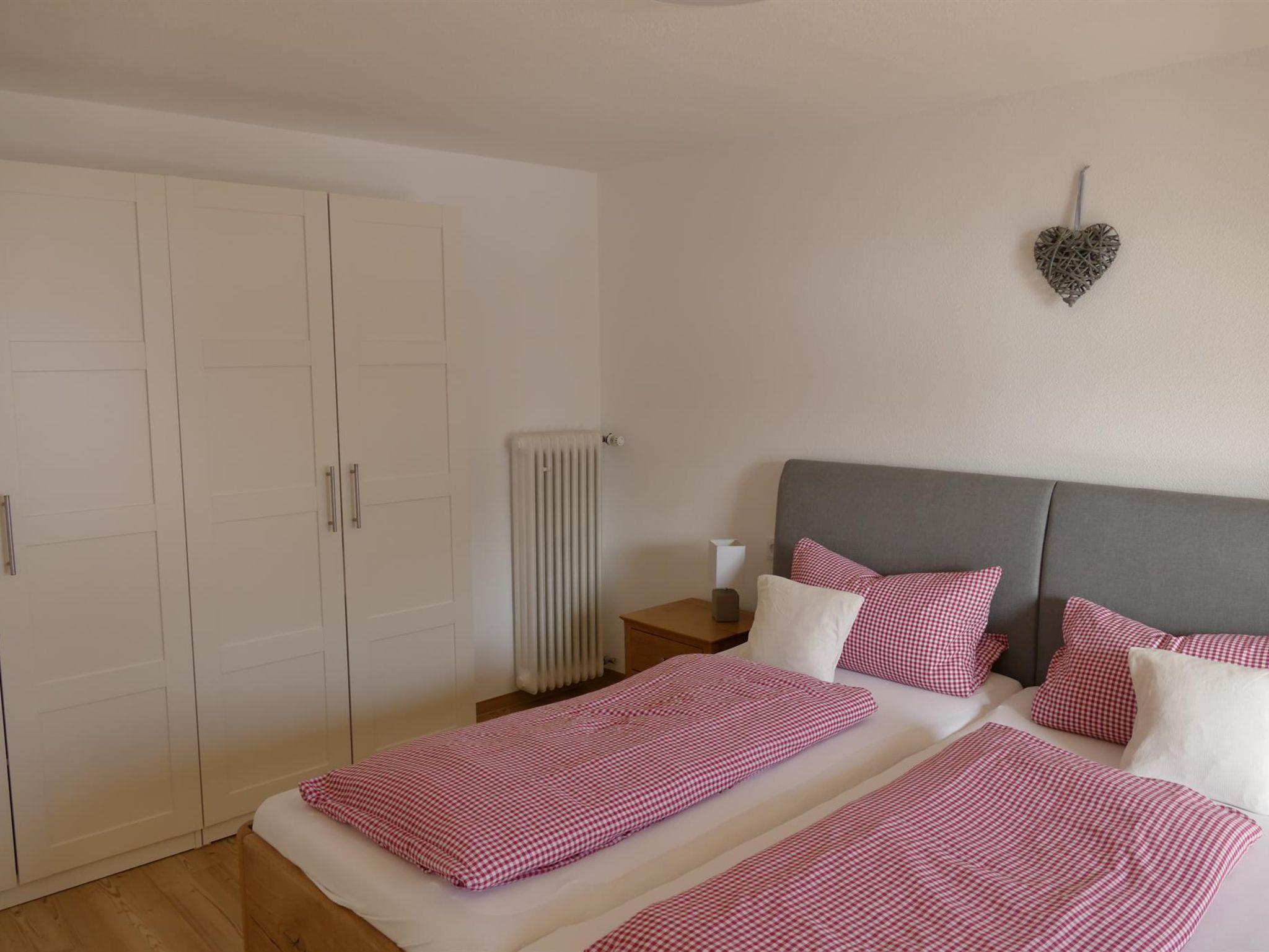 Das Schlafzimmer ist hell und freundliche ausgestattet und bieter sehr viel Platz. hier hat man einen direkten Zugang zum Südbalkon.
