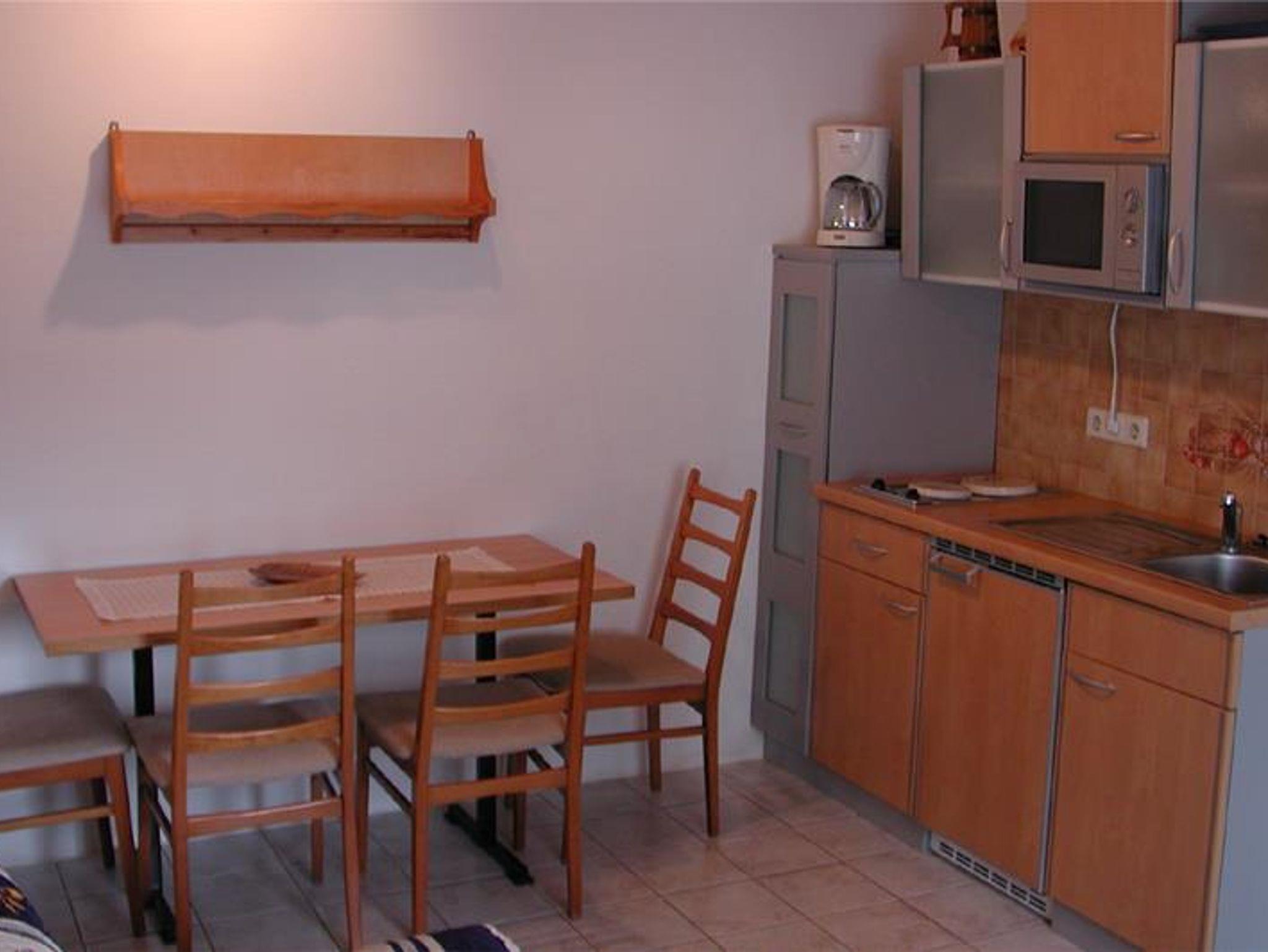 Die Wohnung verfügt über eine Kleinküche mit Kochgelegenheit, Mikowelle und Kühlschrank, Kaffeemaschine, Wasserkocher und Toaster.