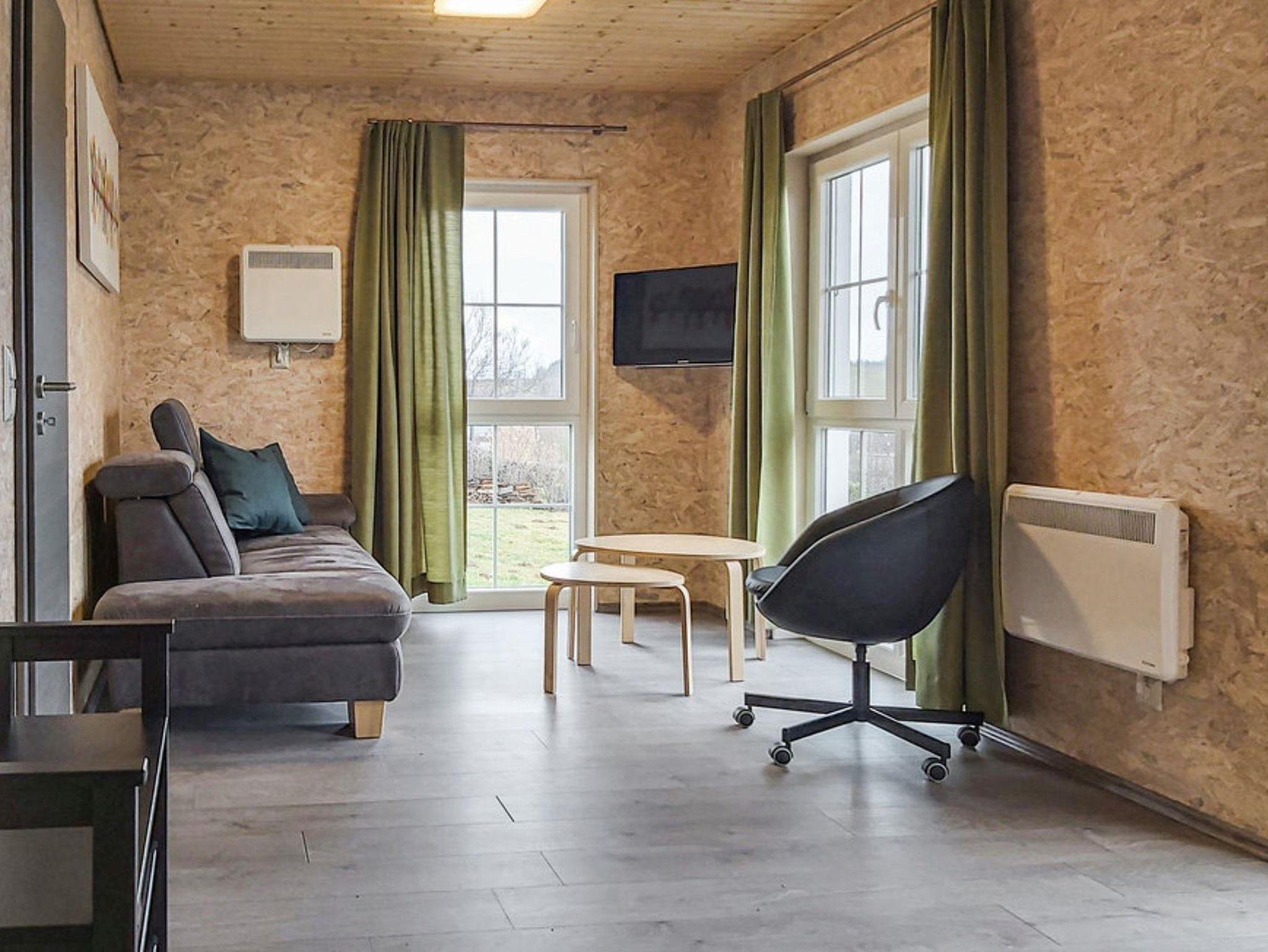 Freistehendes Ferienhaus im skandinavischen Stil mit Terrasse. 20 qm großer Wohn- und Essbereich. Komplett ausgestattete Einbauküche mit Kühlschrank, Herd, Geschirrspüler, Kaffeemaschine, Toaster und Geschirr. Vom Haus aus direkter Blick auf den Badesee. 10 qm großes Schlafzimmer mit Doppelbett und Kinderbettchen. 4 qm großes Badezimmer mit bodenebener Dusche, WC und Waschbecken. Terrasse und Gartenmöbel. 2400 qm großes gepflegtes Grundstück mit Kleinkinderspielplatz.