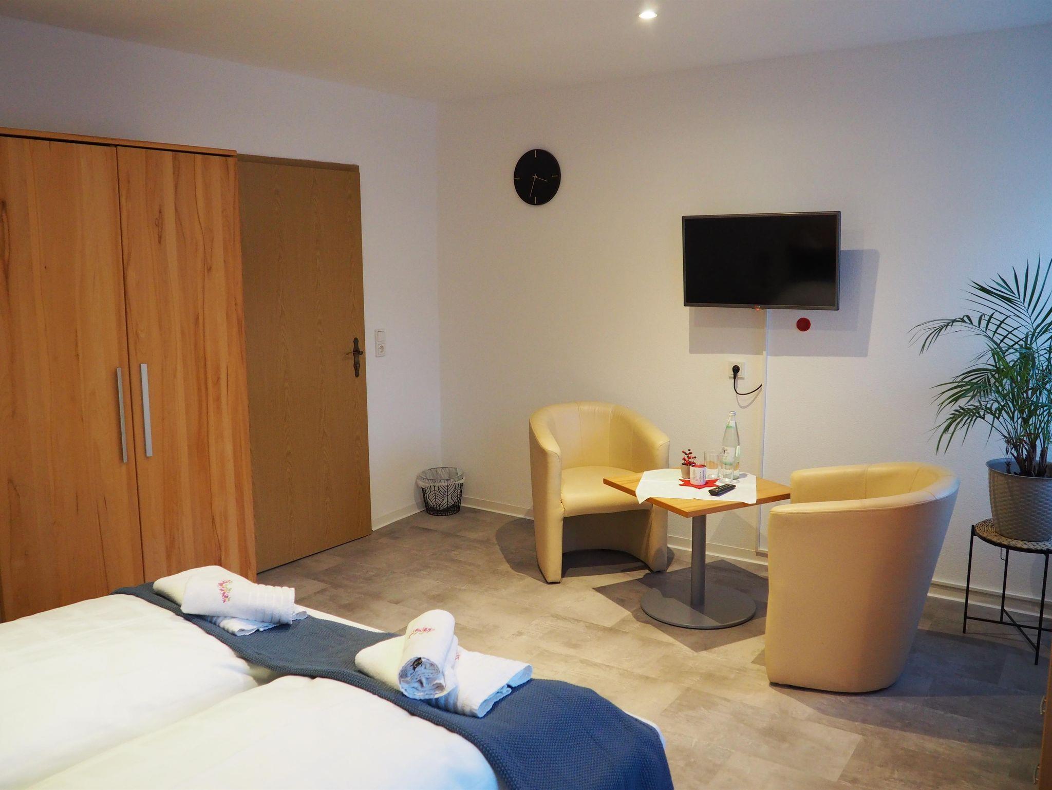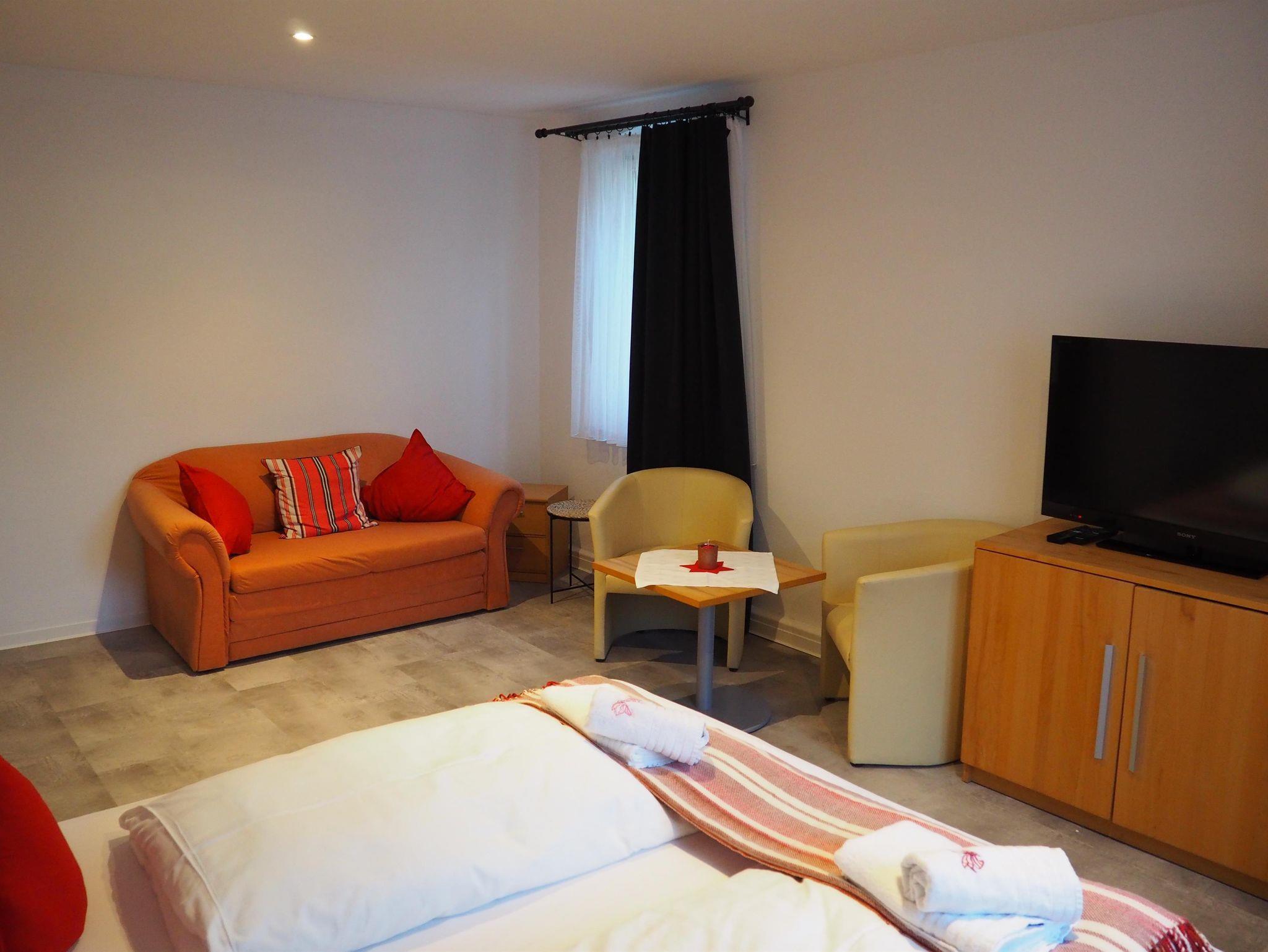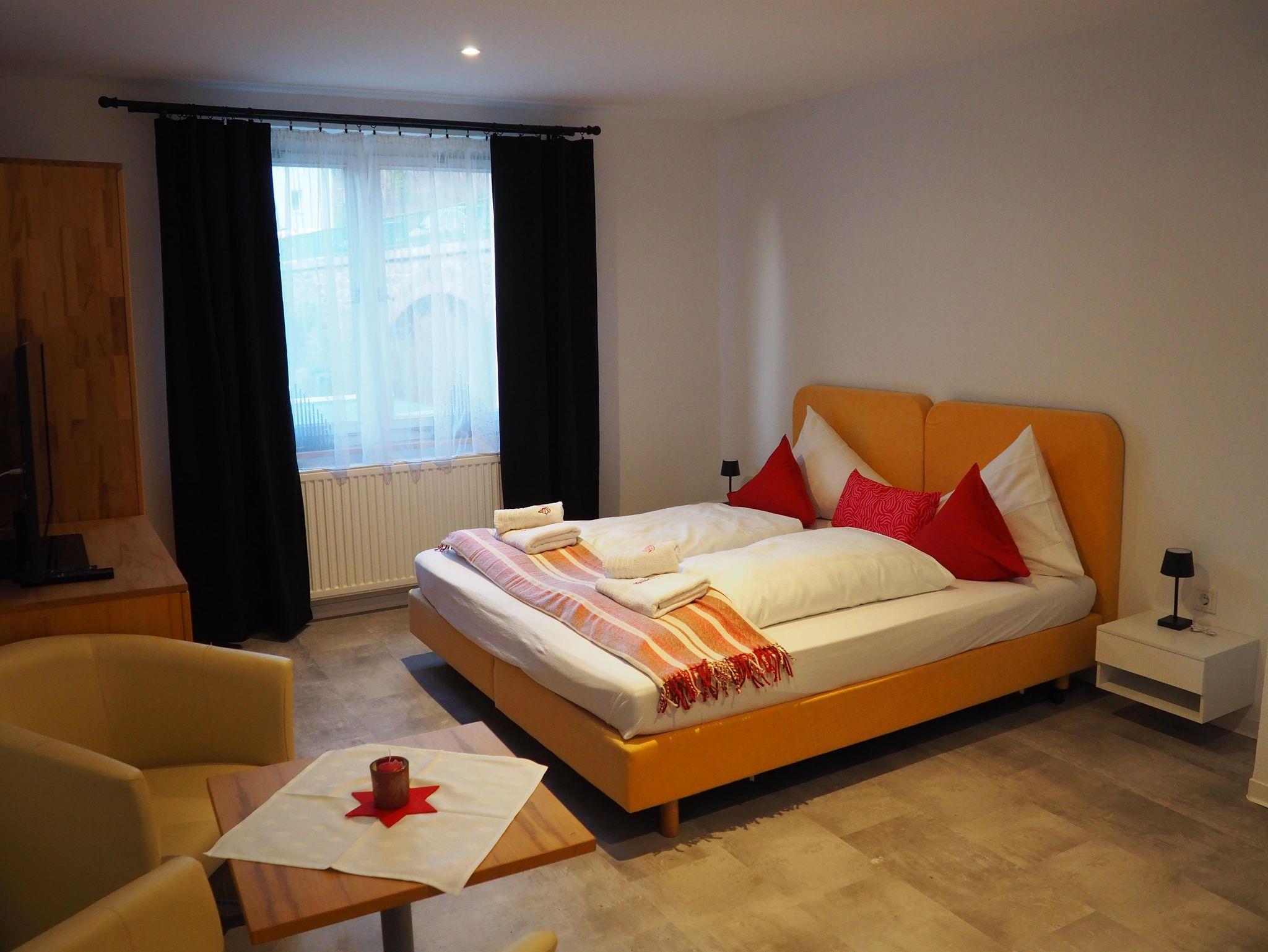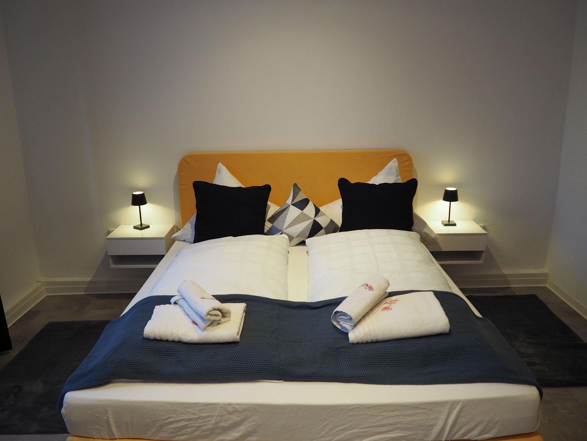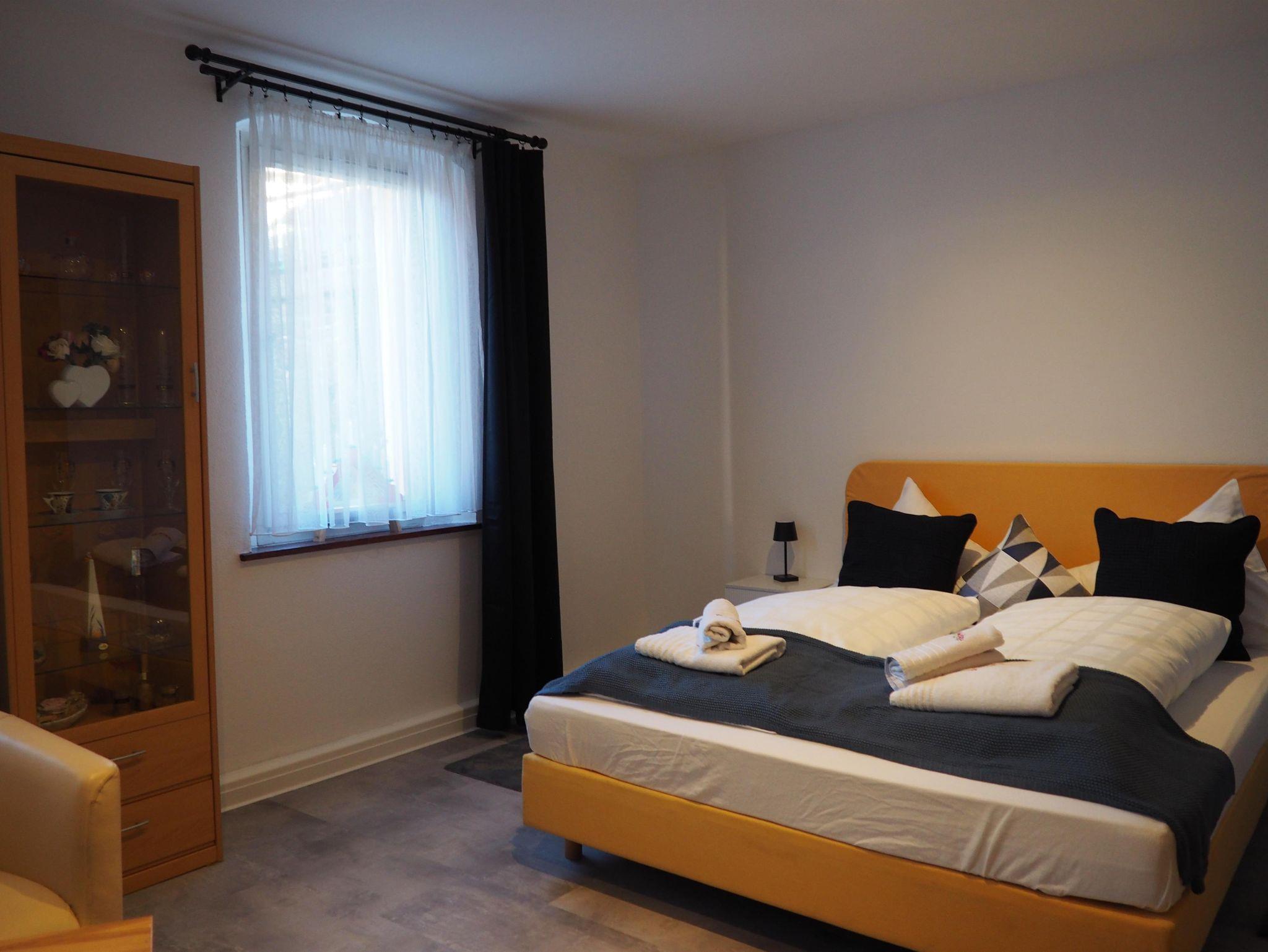 Unser frisch renovierte Ferienwohnung mit 70m² Wohnfläche bietet Platz für 1-6 Personen. Die gemütlichen Zimmer mit Schlafsofa und Flachbild-TV laden zum Verweilen ein. Die komplett ausgestattete Küche mit Geschirrspüler, Kühlschrank, Herd, Backofen, Mikrowelle, Wasserkocher, Eierkocher, Toaster und Kaffeemachine lässt keine Wünsche offen. Die Ferienwohnung verfügt über 2 Schlafzimmer mit jeweils einem Doppelbett und einem Schlafsofa. Das geräumige Badezimmer mit Dusche, großem Spiegel und Handtuchtrockner rundet das Gesamtbild ab. Vor allem im Sommer können Sie entspannte Grillabende in unserem Garten verbringen. Das WLAN und den Parkplatz vor dem Haus können Sie kostenfrei nutzen.