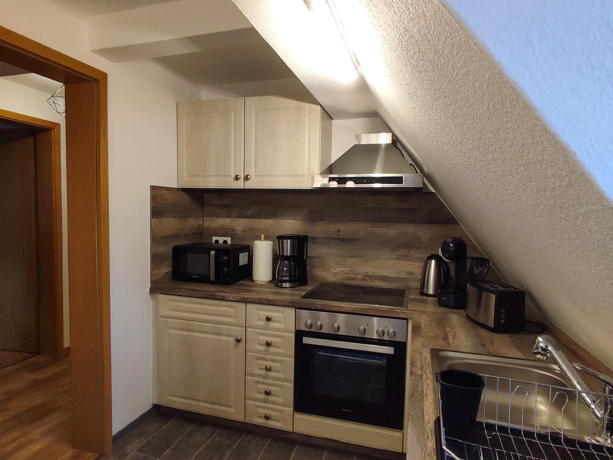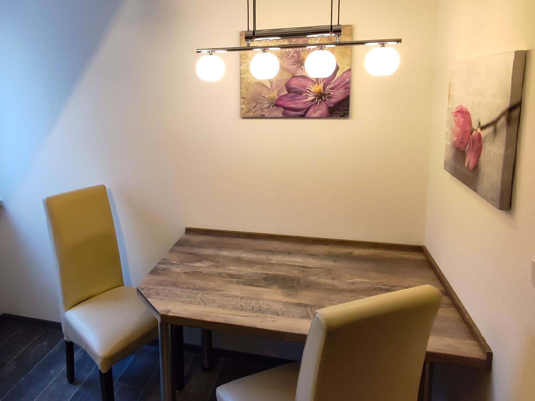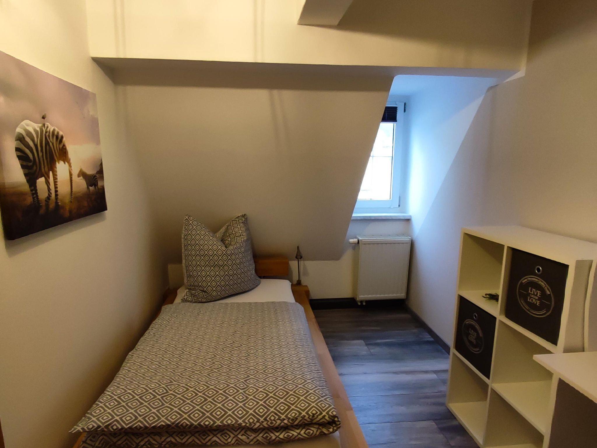 Die Ferienwohnung mit 60m² Wohnfläche bietet Platz für max. 4 Personen. Das gemütliche Wohnzimmer mit Schlafsofa und Flachbild-TV lädt zum Verweilen ein. Die komplett ausgestattete Küche mit Kühlschrank inkl. Gefrierfach, Herd, Backofen, Mikrowelle, Wasserkocher, Eierkocher, Toaster und Kaffeemaschine lässt keine Wünsche offen. Die Wohnung verfügt über 2 Schlafzimmer mit einem Doppel- und einem Einzelbett. Auf Wunsch kann eine Aufbettung auf dem Schlafsofa im Wohnzimmer erfolgen. Hierfür wird ein Aufpreis von 15€/Nacht erhoben. Das Badezimmer ist mit einer Badewanne mit integrierter Dusche ausgestattet. Vor allem im Sommer können Sie entspannte Abende auf der Dachterrasse oder in der Sitzecke hinter dem Haus verbringen. Bitte beachten Sie, dass keine Haustiere erlaubt sind. Das WLAN und den Parkplatz hinter dem Haus (Achtung: Hofdurchfahrtsbreite 2,25m / Durchfahrtshöhe 1,90 m) können Sie kostenfrei nutzen.