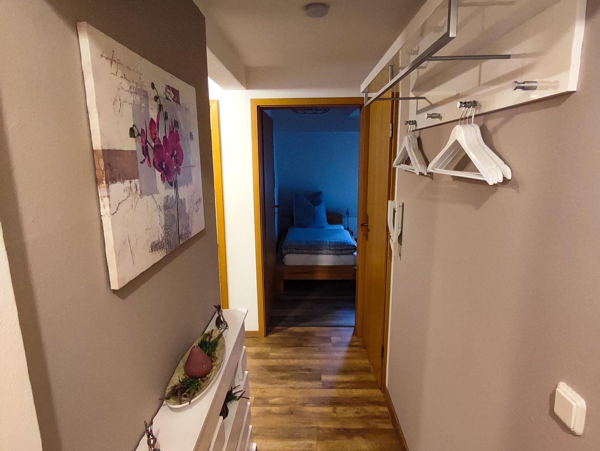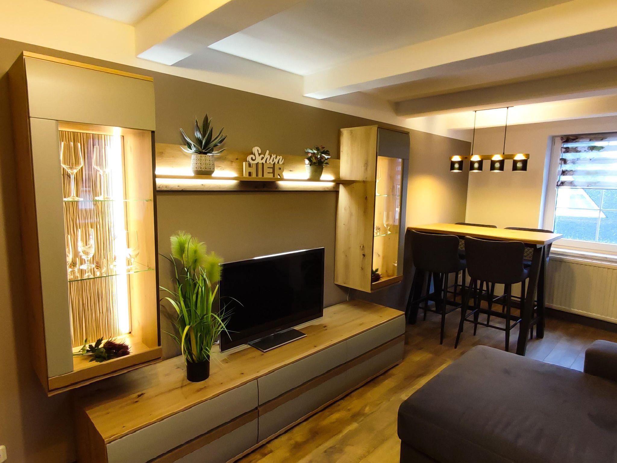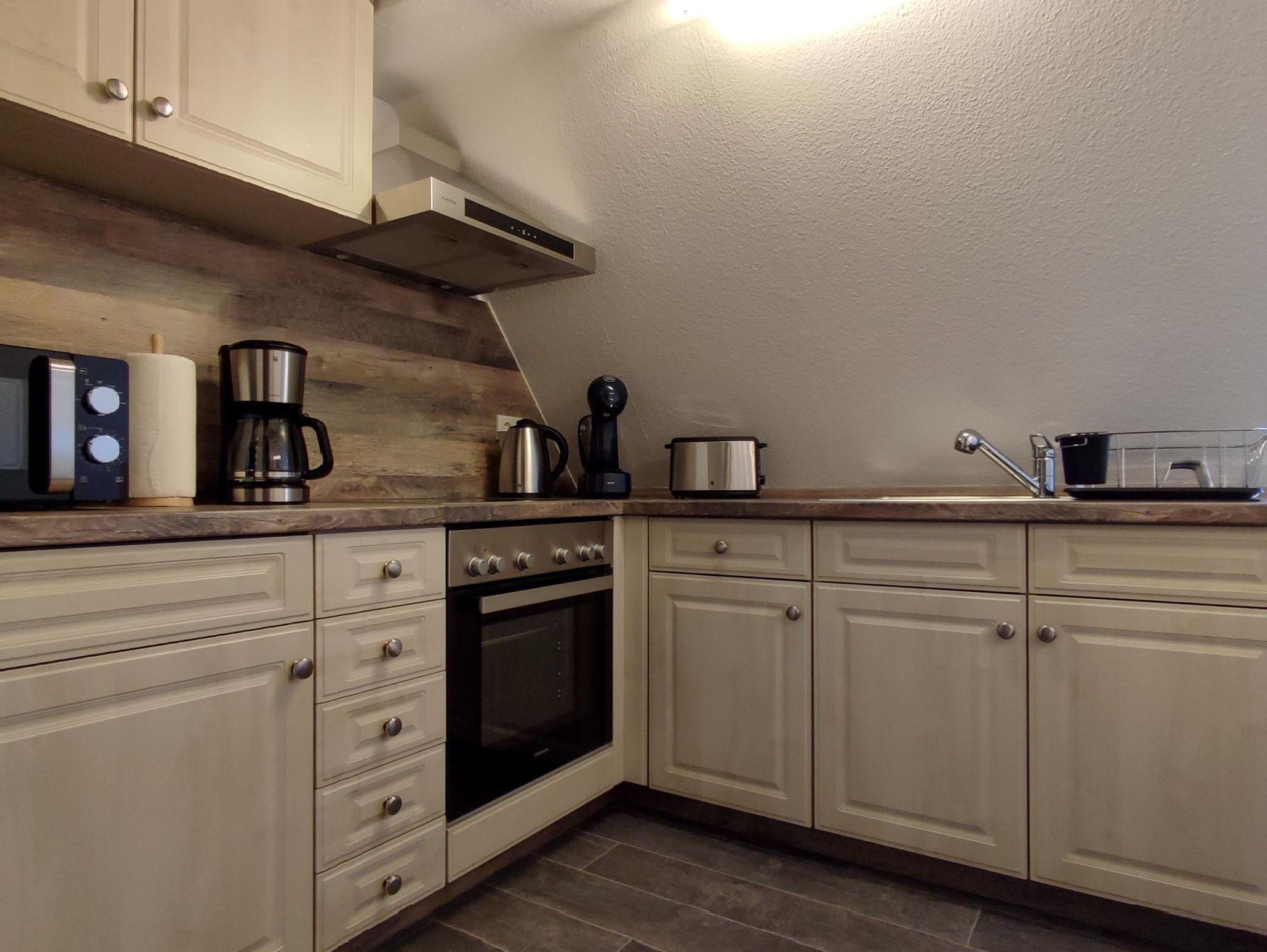 Die Ferienwohnung mit 60m² Wohnfläche bietet Platz für max. 4 Personen. Das gemütliche Wohnzimmer mit Schlafsofa und Flachbild-TV lädt zum Verweilen ein. Die komplett ausgestattete Küche mit Kühlschrank inkl. Gefrierfach, Herd, Backofen, Mikrowelle, Wasserkocher, Eierkocher, Toaster und Kaffeemaschine lässt keine Wünsche offen. Die Wohnung verfügt über 2 Schlafzimmer mit einem Doppel- und einem Einzelbett. Auf Wunsch kann eine Aufbettung auf dem Schlafsofa im Wohnzimmer erfolgen. Hierfür wird ein Aufpreis von 15€/Nacht erhoben. Das Badezimmer ist mit einer Badewanne mit integrierter Dusche ausgestattet. Vor allem im Sommer können Sie entspannte Abende auf der Dachterrasse oder in der Sitzecke hinter dem Haus verbringen. Bitte beachten Sie, dass keine Haustiere erlaubt sind. Das WLAN und den Parkplatz hinter dem Haus (Achtung: Hofdurchfahrtsbreite 2,25m / Durchfahrtshöhe 1,90 m) können Sie kostenfrei nutzen.