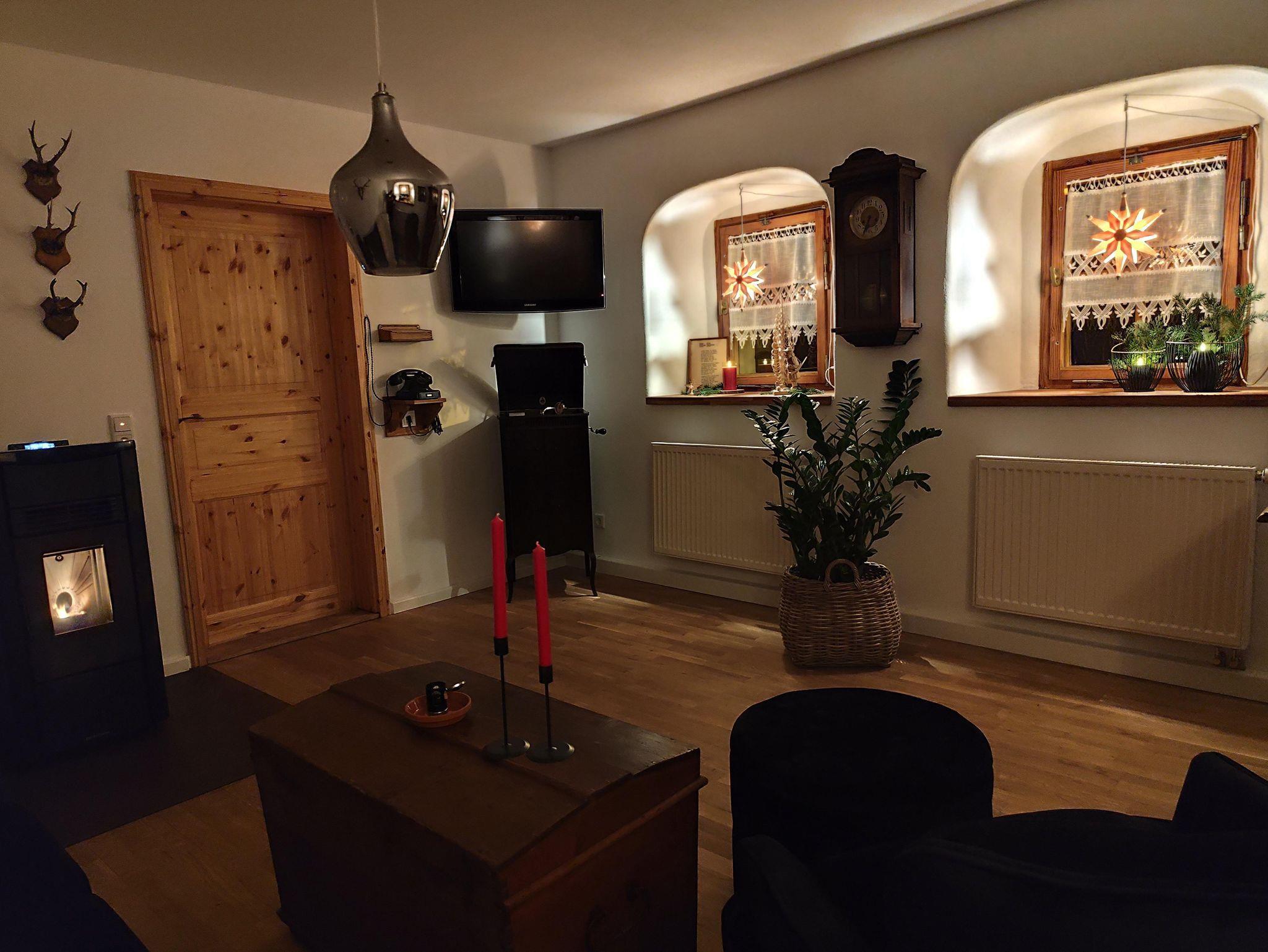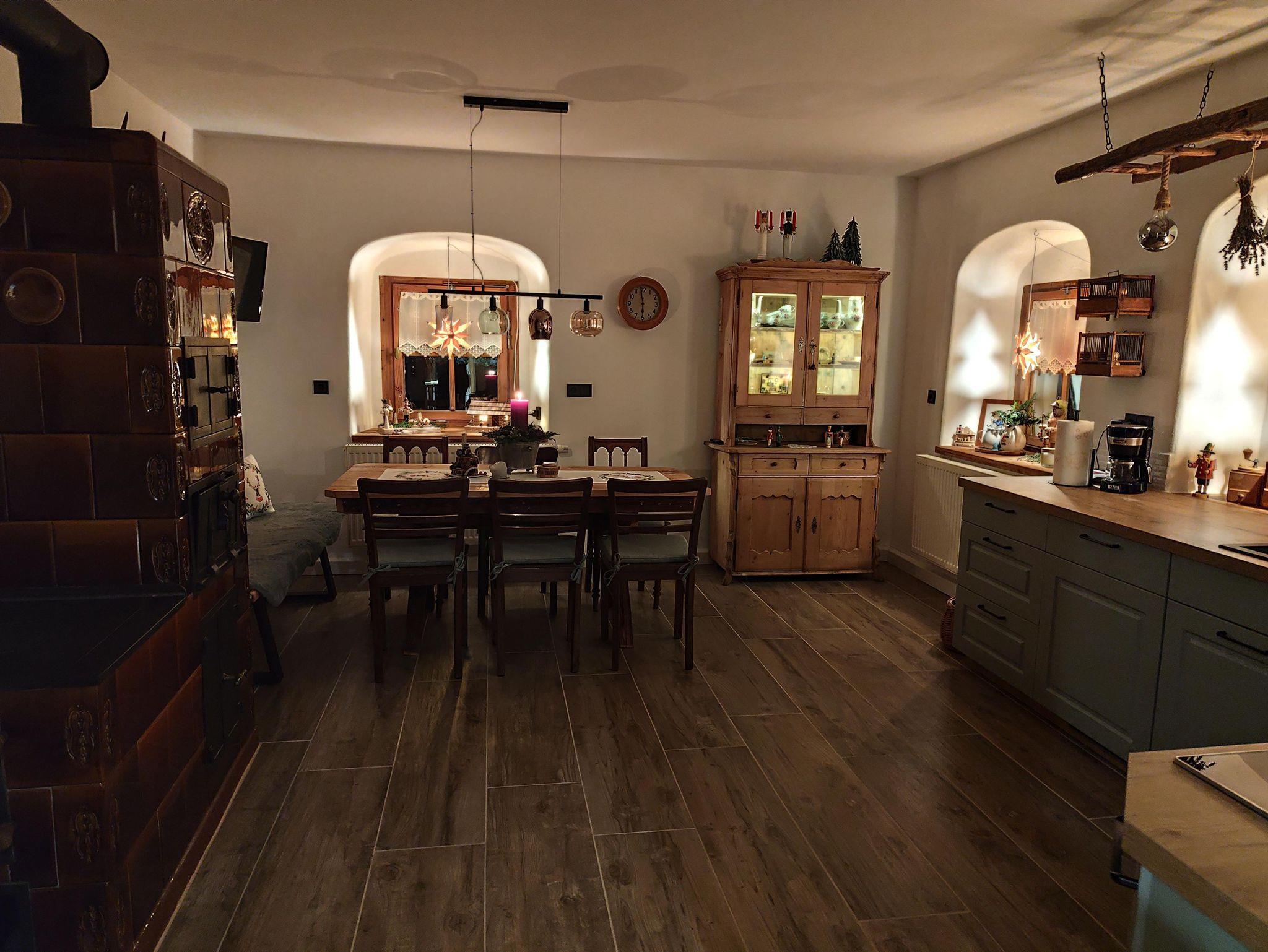 Sei es der gemütliche, historische Kachelofen in der Küche oder der wohlige Pelletkamin im Wohnzimmer. Hier sind kuschelige Stunden garantiert. Alte Holzmöbel, liebevoll restauriert im gesamten Haus, könnten sicher so manche interessante Geschichte erzählen. Nehmen Sie sich Zeit und schmökern Sie in alten Büchern bei einem guten Glas Wein oder genießen Sie einfach die Ruhe.