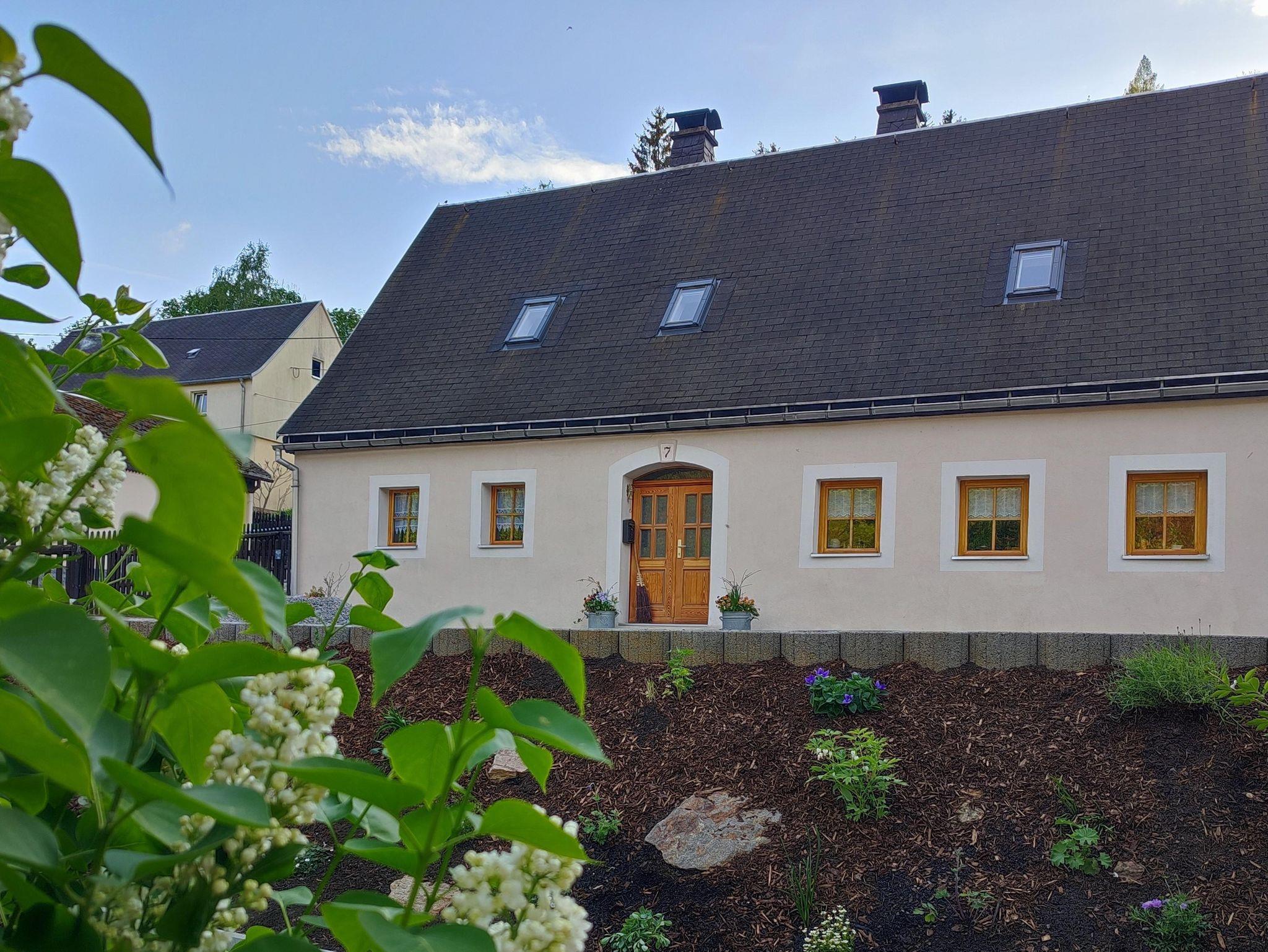 Unser typisch erzgebirgisches Ferienhaus „De Sieme“ mit ca. 110m² Wohnfläche und überdachten Außenbereich mit Grillmöglichkeit sowie einem kleinen Garten, bietet reichlich Platz für eine entspannte Zeit.
