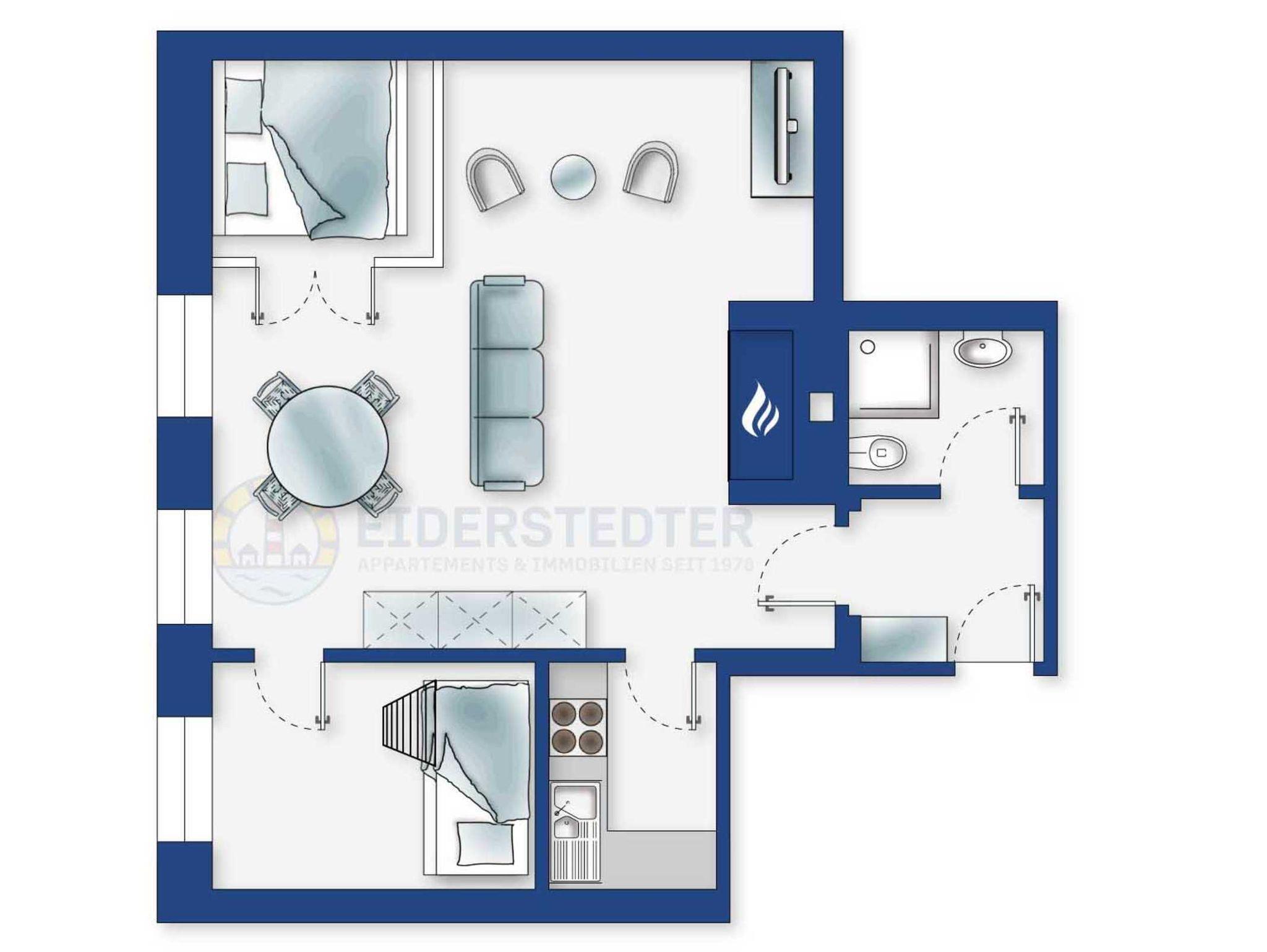 Gemütliche 2-Zimmer-Ferienwohnung Caspar Hoyer im Herrenhaus Hoyerswort mit ca. 40 m² auf 1 Ebene (1. OG) für bis zu 4 Personen. In ruhiger Lage im Grünen auf dem Schloss in Oldenswort. Der Holzdielenboden und die historischen Deckenbalken verleihen dieser Wohnung eine einzigartige Atmosphäre. In der Einrichtung vermischt sich die Moderne mit restaurierten Schmuckstücken. Von allen Räumen haben Sie einen schönen Ausblick ins Grüne. Hunde sind herzlich willkommen!