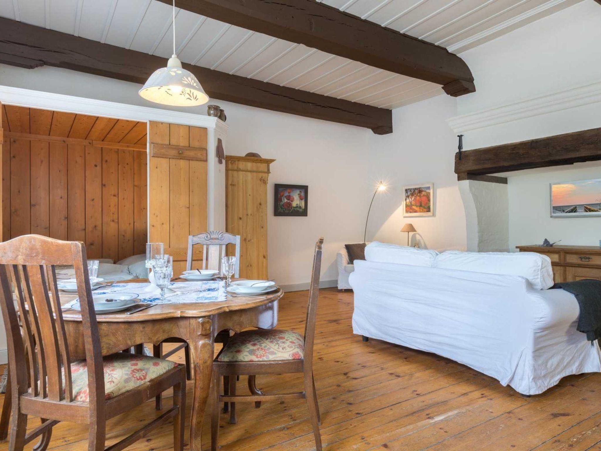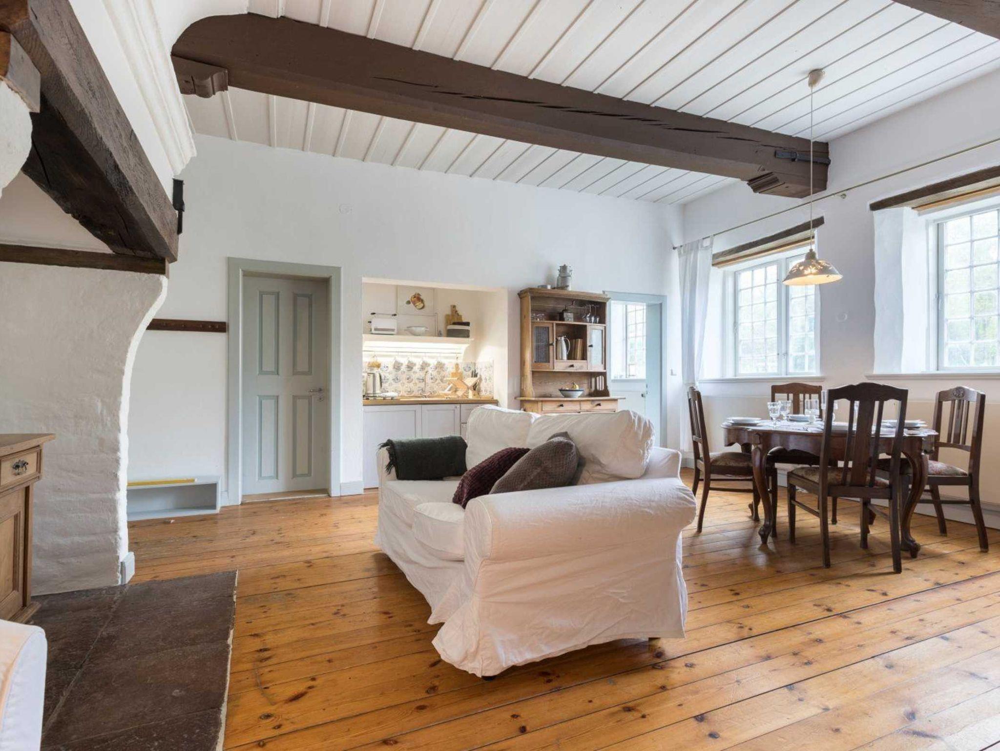 Gemütliche 2-Zimmer-Ferienwohnung Reiherhorst im Herrenhaus Hoyerswort mit ca. 40 qm auf 1 Ebene (Erdgeschoss) für bis zu 4 Personen. In ruhiger Lage im Grünen auf dem Schloss in Oldenswort. Der Holzdielenboden und die historischen Deckenbalken verleihen dieser Wohnung eine einzigartige Atmosphäre. In der Einrichtung vermischt sich die Moderne mit restaurierten Schmuckstücken. Von allen Räumen haben Sie einen schönen Ausblick ins Grüne. Hunde sind herzlich willkommen!