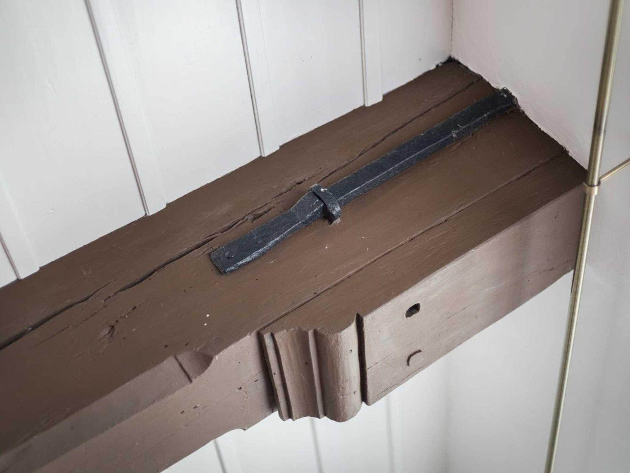 Flur mit Garderobe und antikem Spiegel im Eingangsbereich.