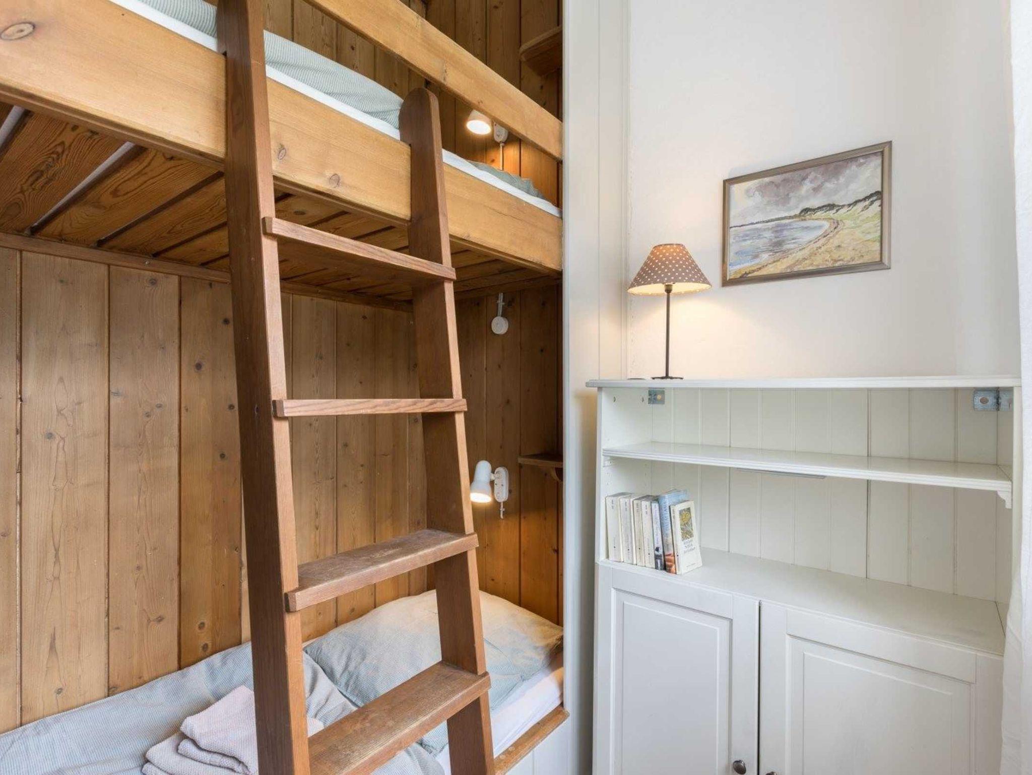 Schlafzimmer mit 2 Etagen-Einzelbetten (je 90x200cm) und einem Kleiderschrank.