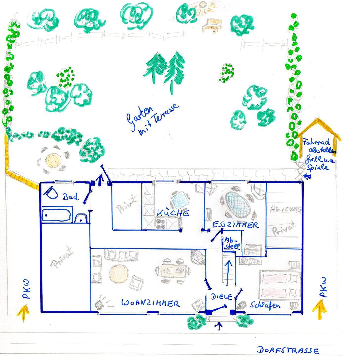 Der Außenbereich des Hauses ist ein wahres Paradies für Naturliebhaber. Auf der Terrasse können Sie die frische Landluft genießen, während der Garten mit Sonnenliegen, Gartenmöbeln und einem Grillplatz zu entspannten Stunden im Freien einlädt. Ein Gartenschuppen bietet zudem Stauraum für Ihre Fahrräder oder Strandutensilien. Der weitläufige Garten mit Liegewiese ist ideal zum Spielen für Kinder und verspricht entspannte Sonnenstunden.