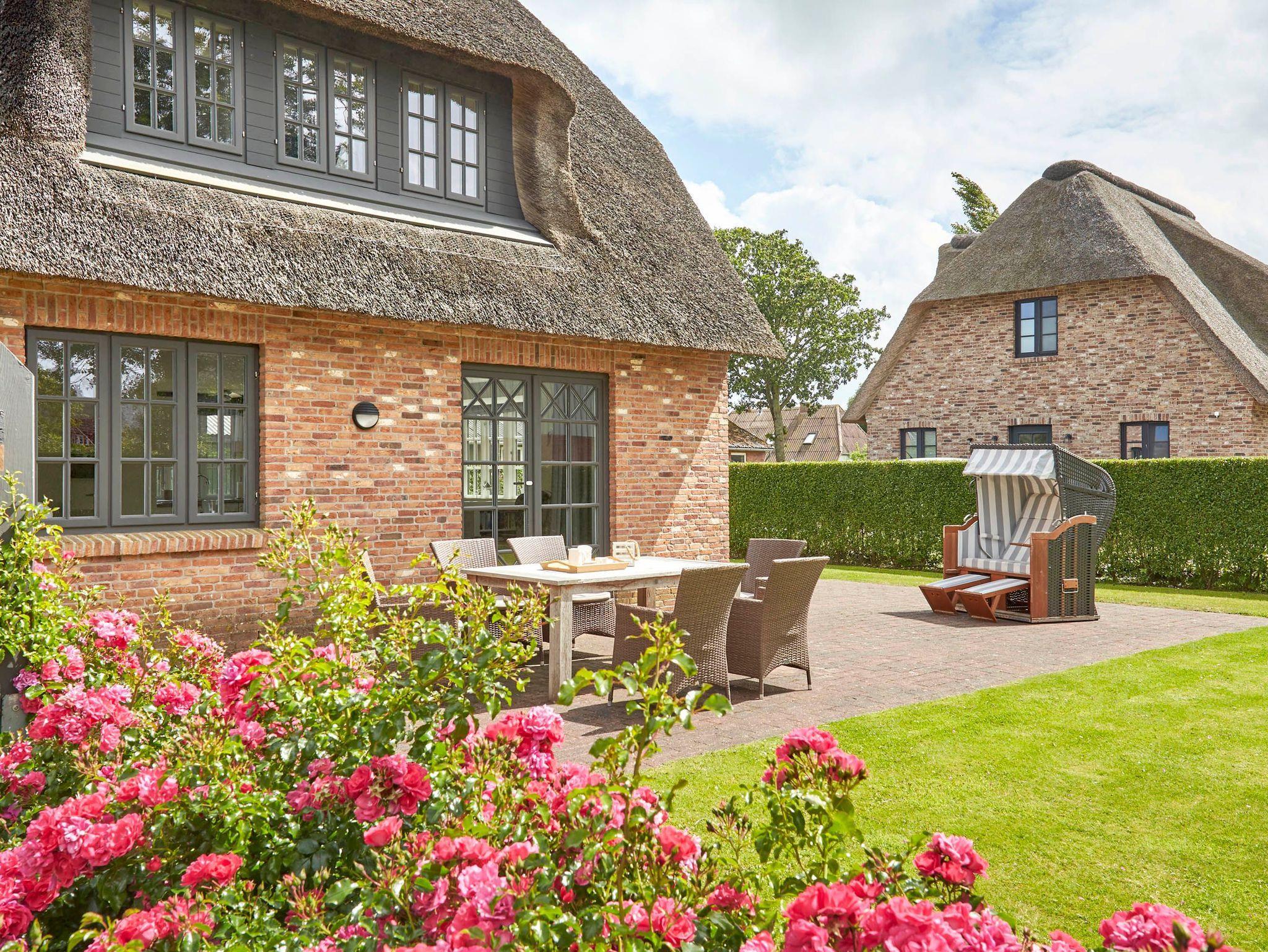 Willkommen in unserem exklusiven Reetdachhaus. Wohnen Sie auf Föhr Land im wunderschönen Dorf Oldsum mit dem Ambiente eines typisch friesischen Inseldorfes. Ein besonderes Wohnerlebnis erwartet Sie. Hier verbringen Sie Ihren Urlaub in einer großzügig und geschmackvoll ausgestatteten Haushälfte. Ob hochwertige Fliesen, Esstisch aus gekälkter Eiche in der Utlucht, eine Vollholzküche, hauseigene Sauna und der Mylin Kachelofen an dem Sie es sich auf dem Ecksofa in Lederausstattung gemütlich machen - es fehlt einfach an Nichts in diesem Urlaubsdomizil. Eine Terrasse (50qm) mit bequemen Möbeln, Sonnenschirm, Strandkorb und ein ca.350qm großer Garten runden die Sache ab und lassen Sie jede Stunde Ihres Urlaubes genießen.