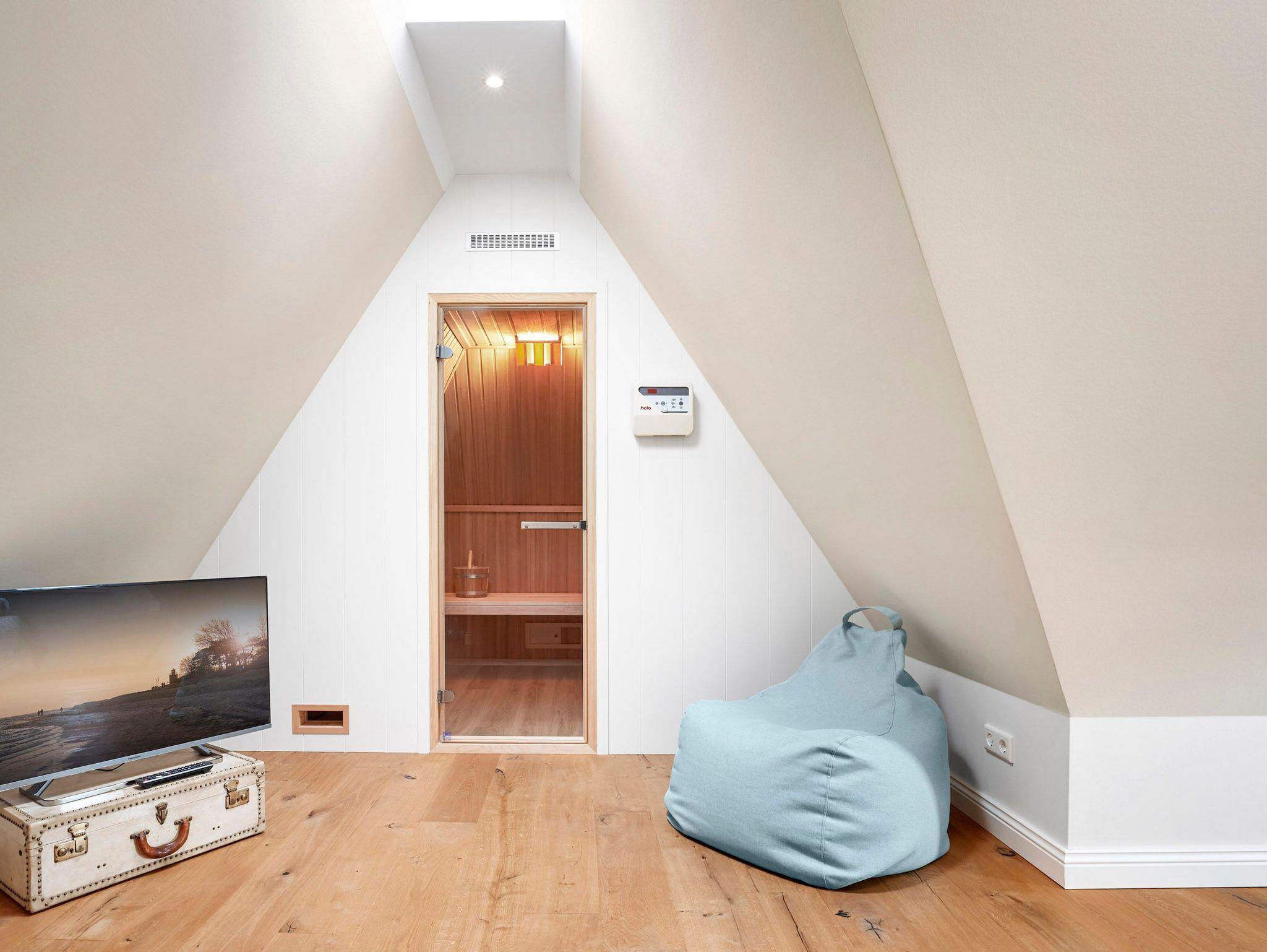 Das Haus bietet Platz für 6 Personen in drei Schlafzimmern. Der Kamin im Wohnzimmer lässt es zu jeder (Jahres-)Zeit gemütlich werden. Die Utlucht mit großem Esstisch und die offene Küche sind perfekt für die große Runde mit Familie und Freunden. Im Dachgeschoss können Sie den Tag in Ruhe bei einem erholsamen Saunagang ausklingen lassen und ungestört relaxen.