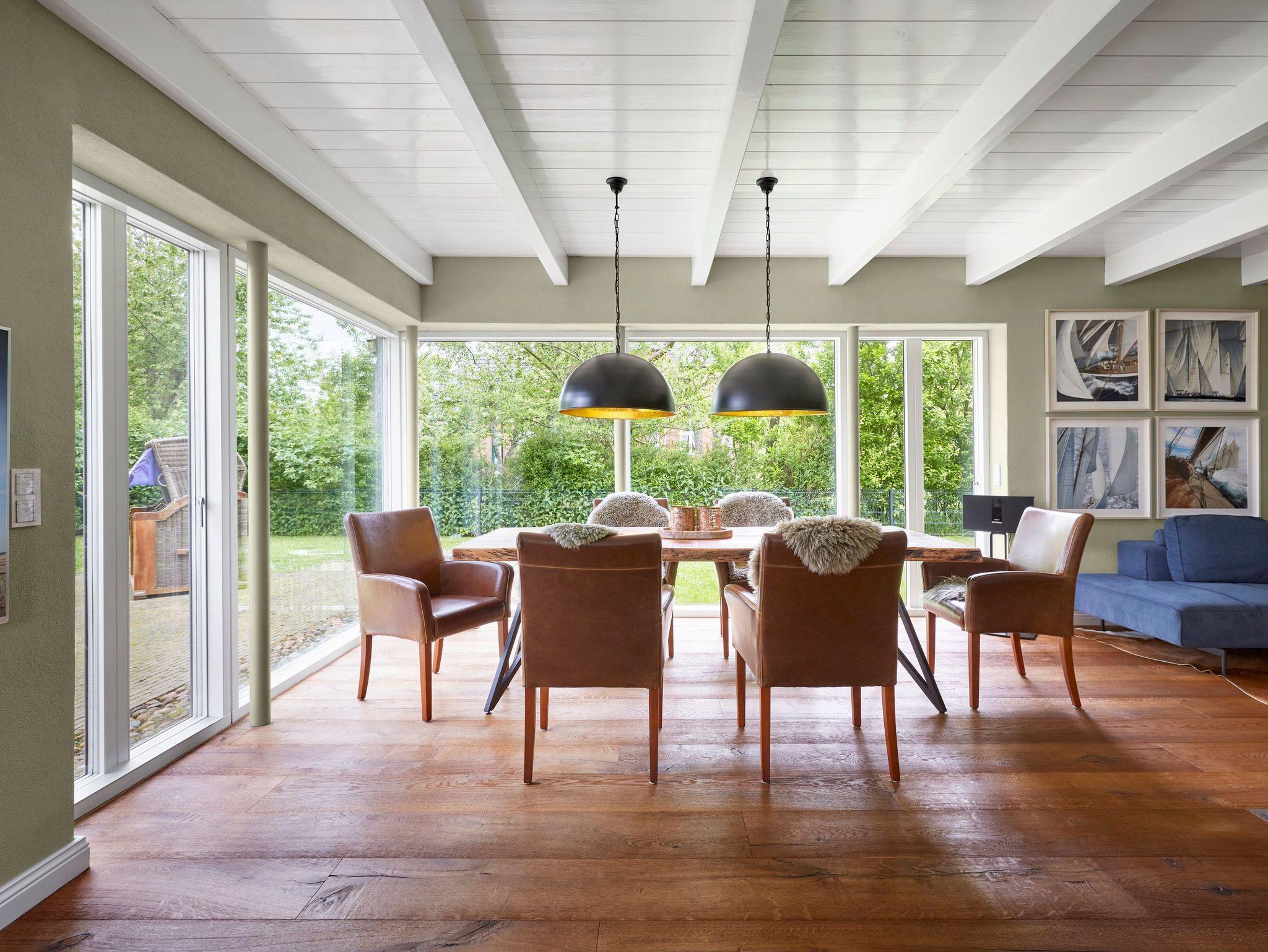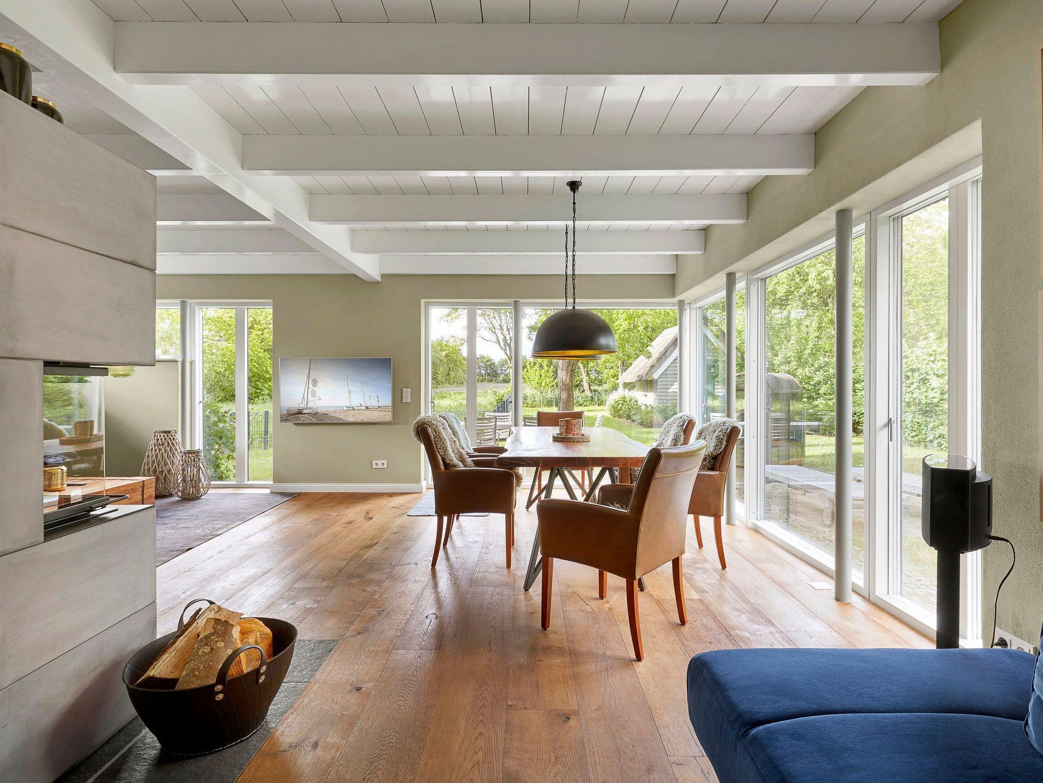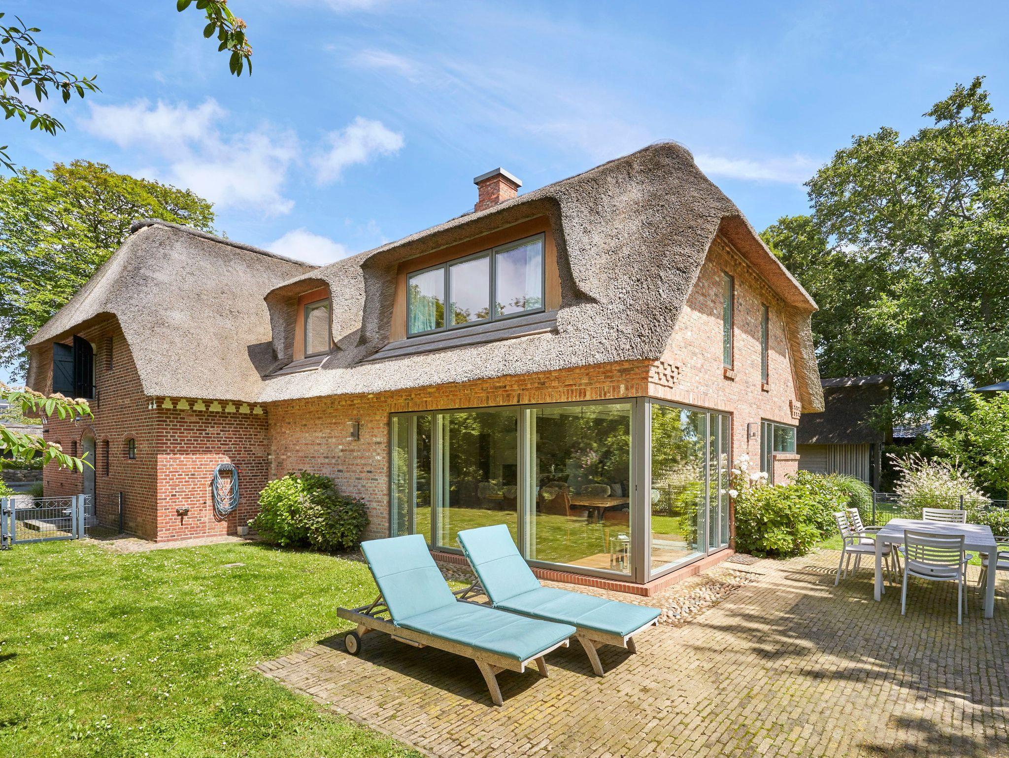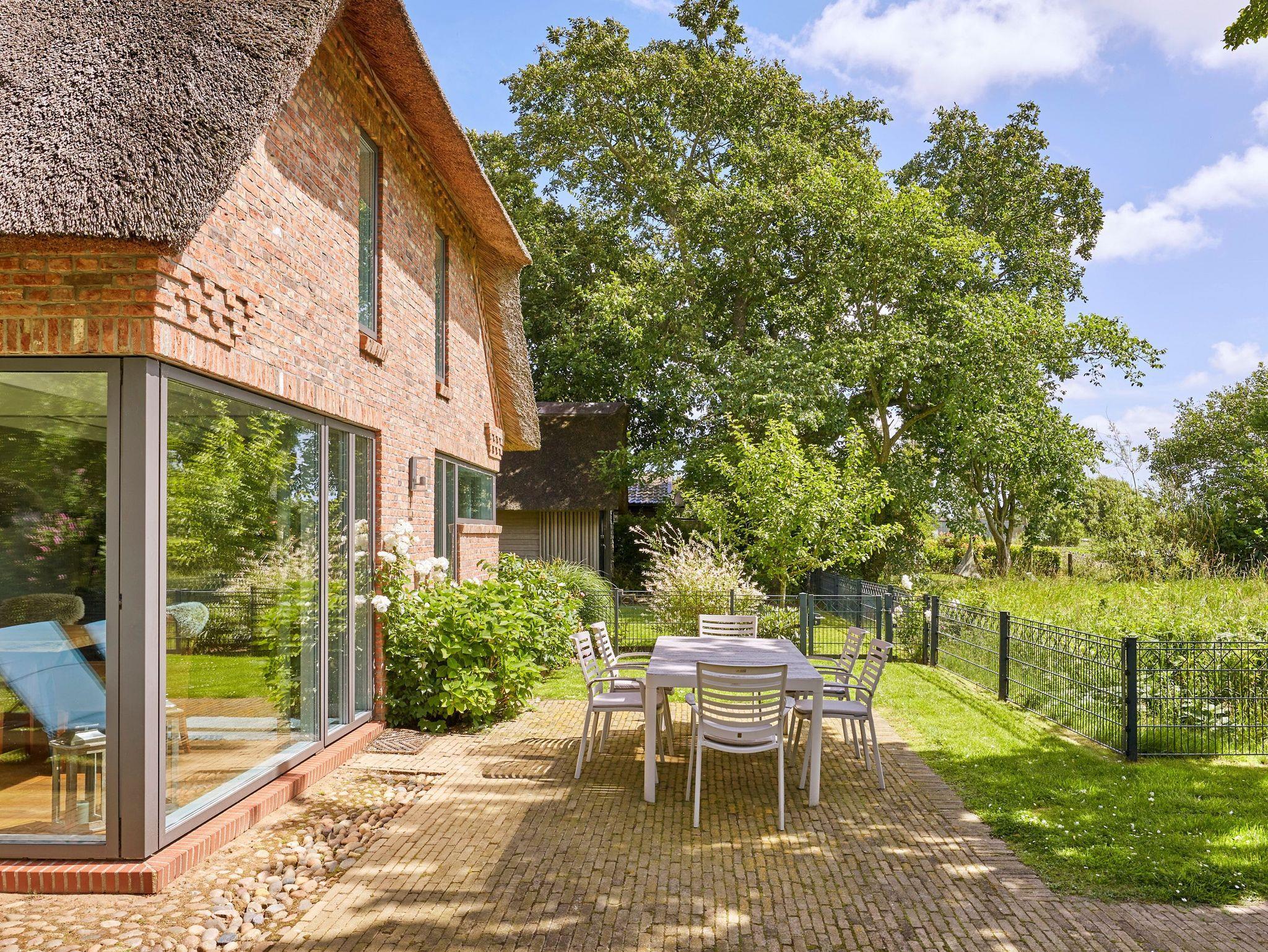Verlieben Sie sich auf den ersten Blick in das über 100 Jahre alte reetgedeckte friesische Bauernhaus Maria Gardina 1530[nbsp] - die Nachbarhaushälfte nennt sich Maria Gardina 1903 - in wundervoller Lage mit traumhaftem Blick auf die freie Geestlandschaft und sonnigem Bauerngarten. In der Atmosphäre eines großzügigen Privathauses mit Kunst, außergewöhnlicher Einrichtung und hochwertiger Haustechnik werden alle individuellen Wünsche nach Inspiration, Kreativität und Komfort erfüllt. Im Rahmen der denkmalgerechten Restaurierung wurde Wert auf den konsequenten Einsatz nachhaltiger und ökologischer Baustoffe gelegt. Die klare Abgrenzung von Neu zu Alt als spannender Kontrast zieht sich- immer wieder sichtbar- durch das Konzept des gesamten Objektes. Im besonderen Ambiente der exklusiven Sauna mit Raindance- Dusche und marokkanischen Fliesen finden Sie die Ruhe und Entspannung nach einem besonderen Urlaubstag auf Föhr. Der Wohn- und Essbereich bietet durch große Fensterschiebeelemente einmalige Blicke in den sonnigen Garten mit hochwertigem Outdoormöbeln.