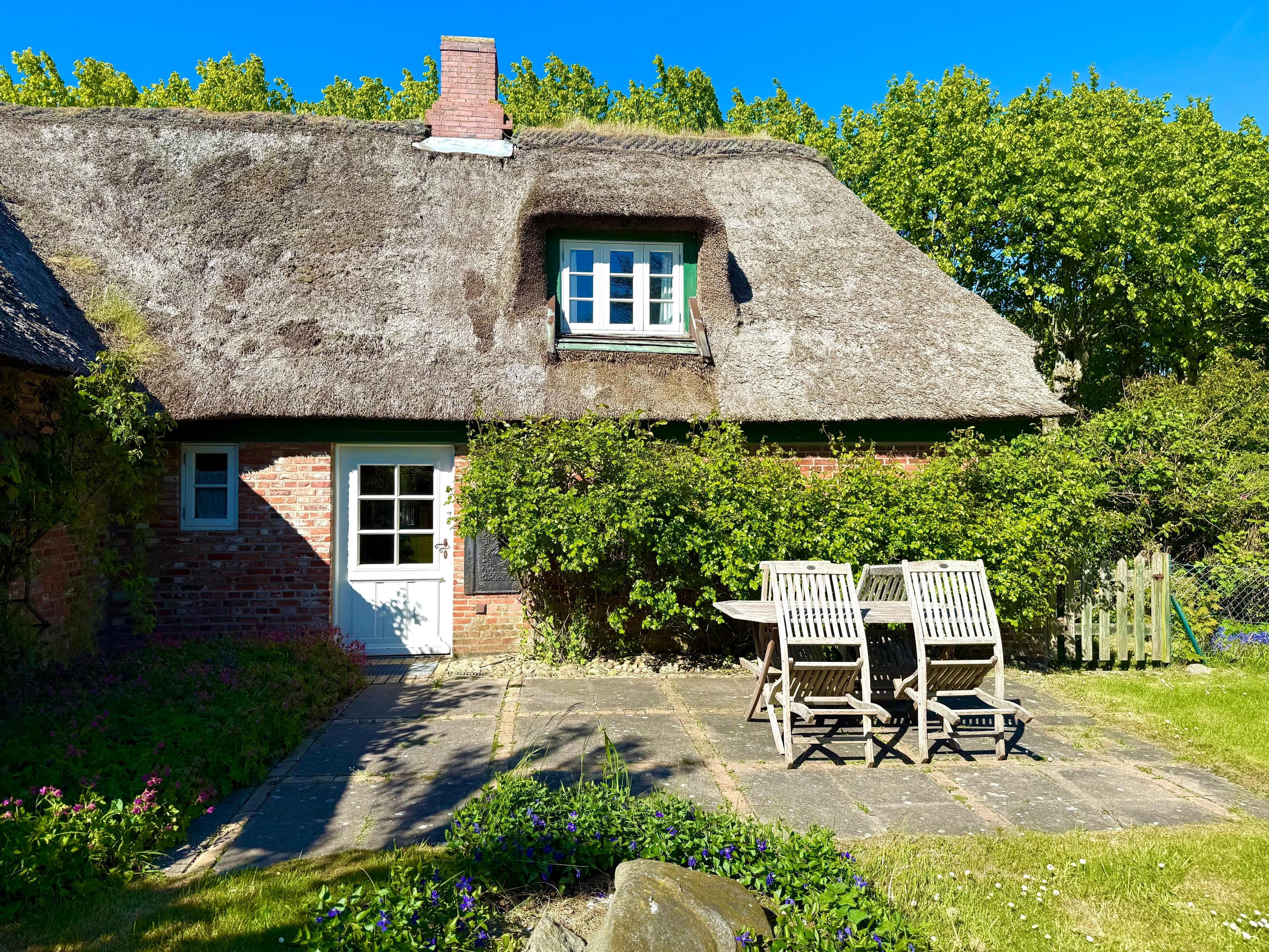 Im idyllischen Fischerdörfchen Oldsum finden Sie unsere geräumig und großzügig eingerichtete Ferienwohnung in einem typischen Föhrer Friesenhaus unter Reet. In dem von Reethäusern geprägten Friesendorf finden Sie zwei kleine Cafés mit Lädchen, ein Restaurant, Ateliers und kleine Galerien.