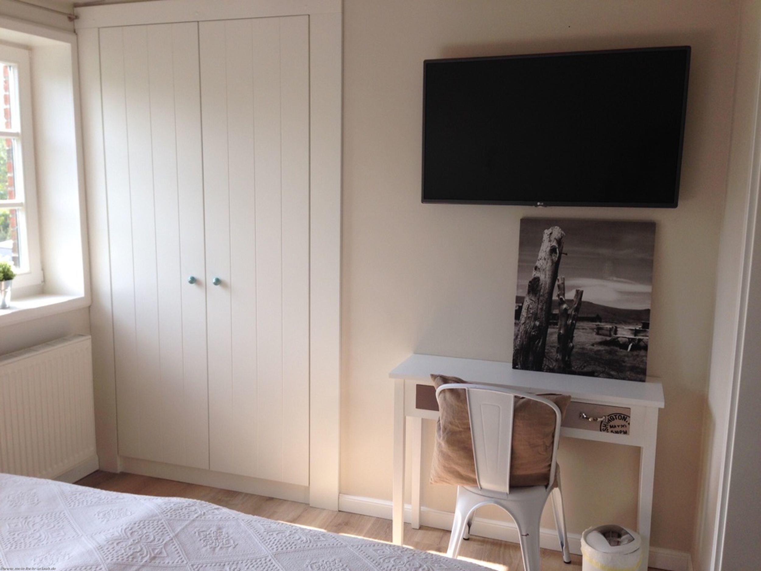 Die windgeschützte Südterrasse ist mit schönen Gartenmöbeln ausgestattet, außerdem stehen den Gästen zwei bequeme Gartenliegen zur Verfügung. Es gibt zwei moderne Duschbäder mit WC, im oberen Bad befindet sich eine Waschmaschine. Die beiden Schlafzimmer sind mit viel Liebe zum Detail eingerichtet, ein Zimmer mit Doppelbett und TV-Gerät, das andere hat zwei gemütliche Einzelbetten , eins davon mit einem zusätzlichen Ausziehbett. Somit ergeben sich 5 reelle Schlafplätze. Zur weiteren Ausstattung gehören Fön, Bügeleisen/Brett Wäscheständer, Hundenäpfe, Reinigungsgeräte inklusive eine Auswahl an Grundreinigungsmitteln, sowie Hochstuhl und Kinderbett bei Bedarf. Parkplätze befinden sich vor dem Haus.