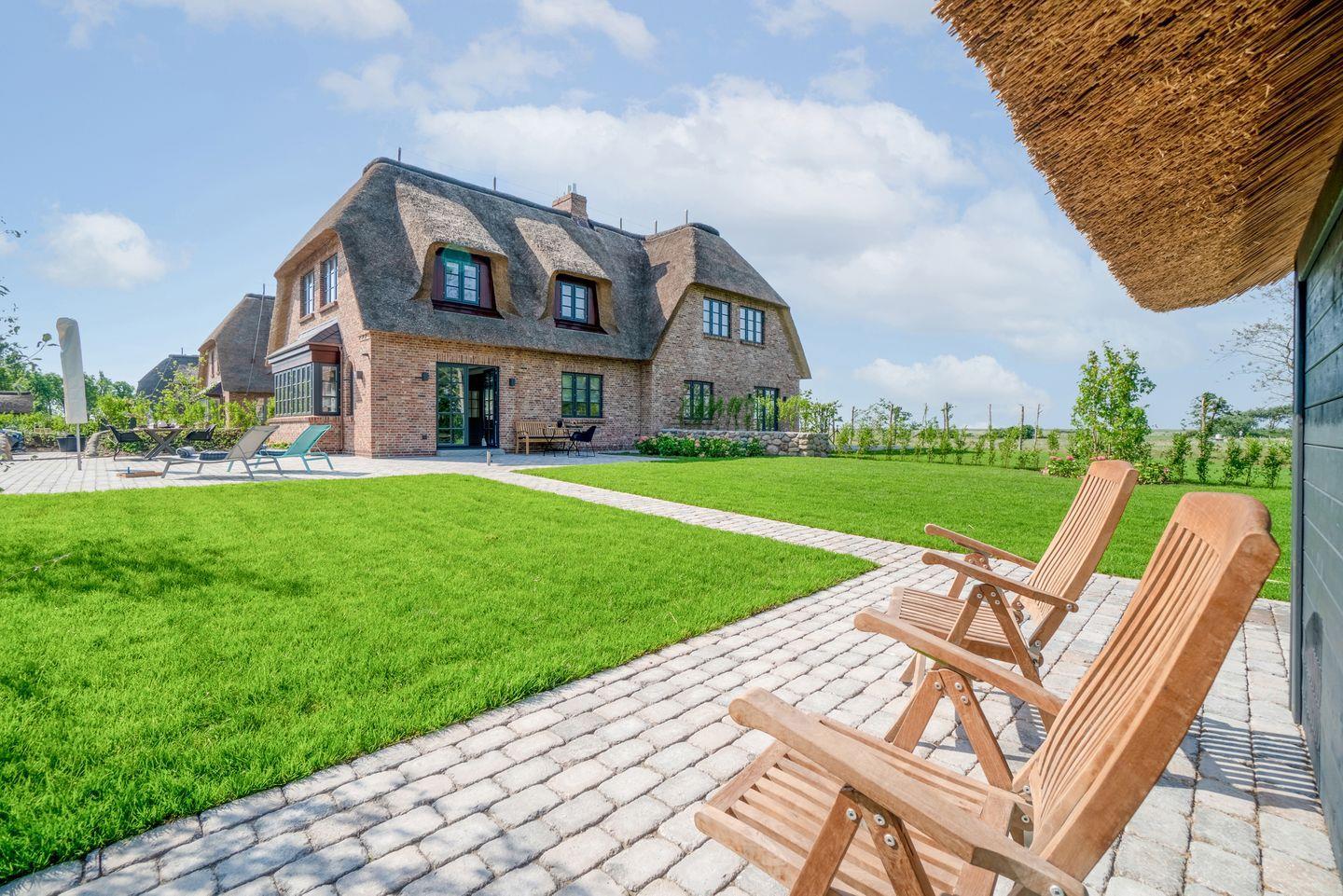 Das großzügige Grundstück, welches nach Süden ausgerichtet ist, bietet eine große Terrasse nach Süd und idyllischer Frühstückterrasse sowie eine separate Strandkorbterrasse im traditionellen Stil angelegten Garten, auch Sonnenliegen stehen Ihnen im Außenbereich der Immobilie zur Verfügung. Ihren Kindern wird viel Platz zum Spielen geboten.