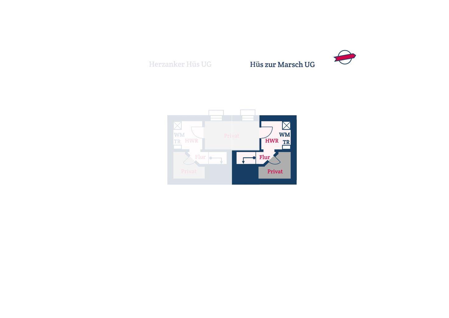 Im Souterrain befindet sich ein Hauswirtschaftsraum mit Waschmaschine und Trockner für die Gäste von dem Hüs zur Marsch.