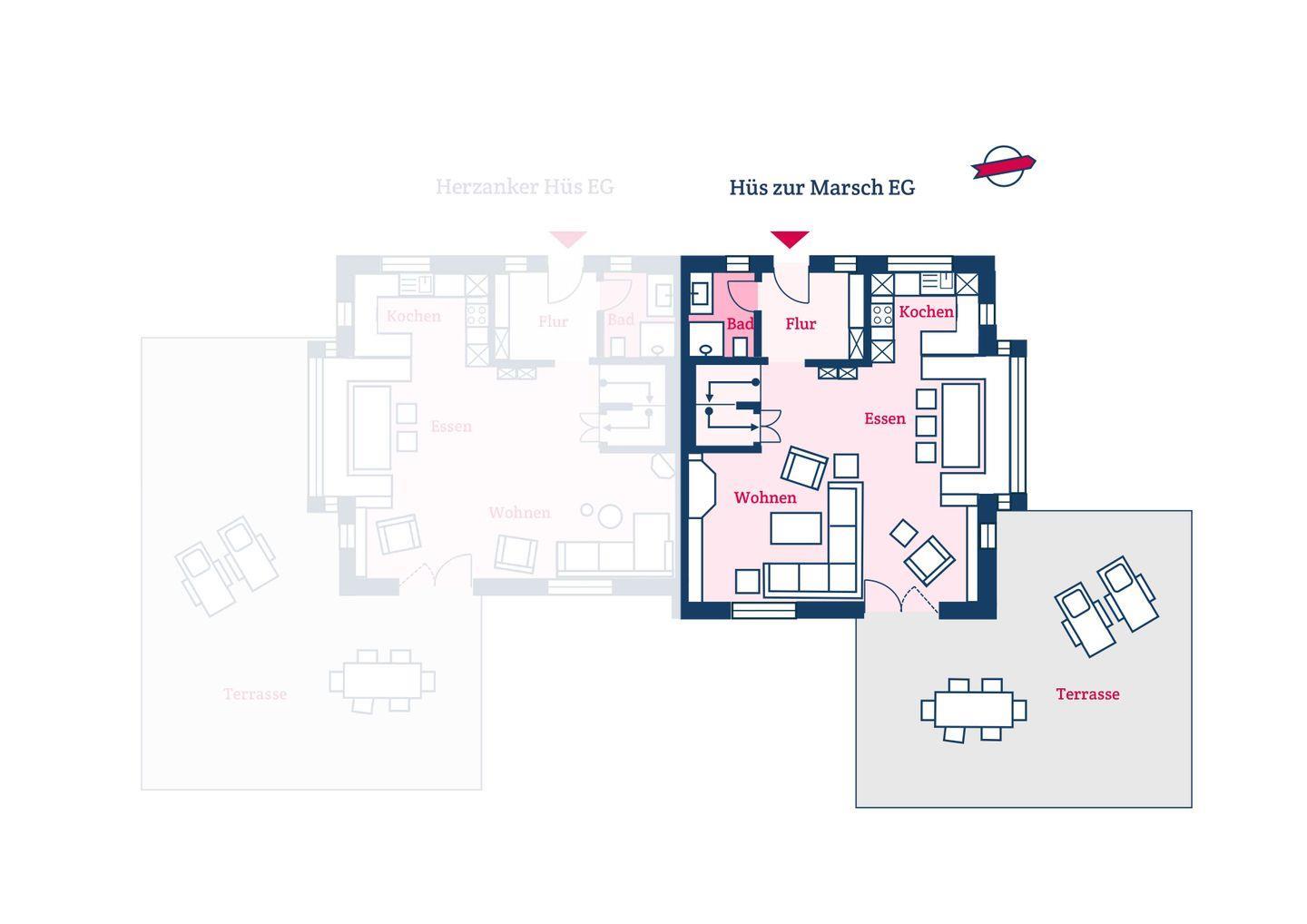 Die reetgedeckte Doppelhaushälfte Hüs zur Marsch verfügt über 3 Schlafzimmer und 2 Bäder und bietet somit komfortabel Platz für bis zu 6 Personen zuzüglich einer Kleinkinderaufbettung. Auch bis zu 2 Hunde sind hier herzlich willkommen.