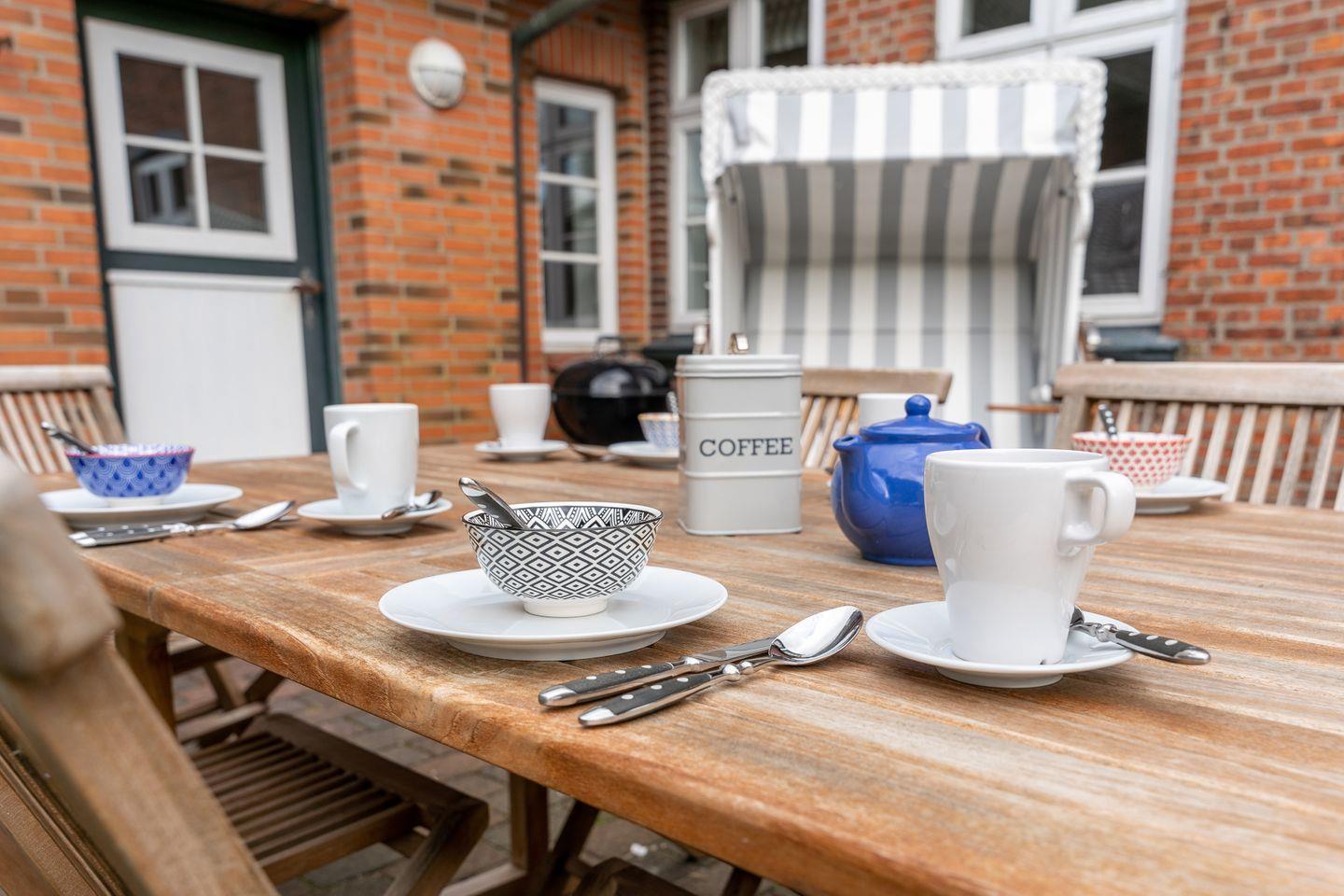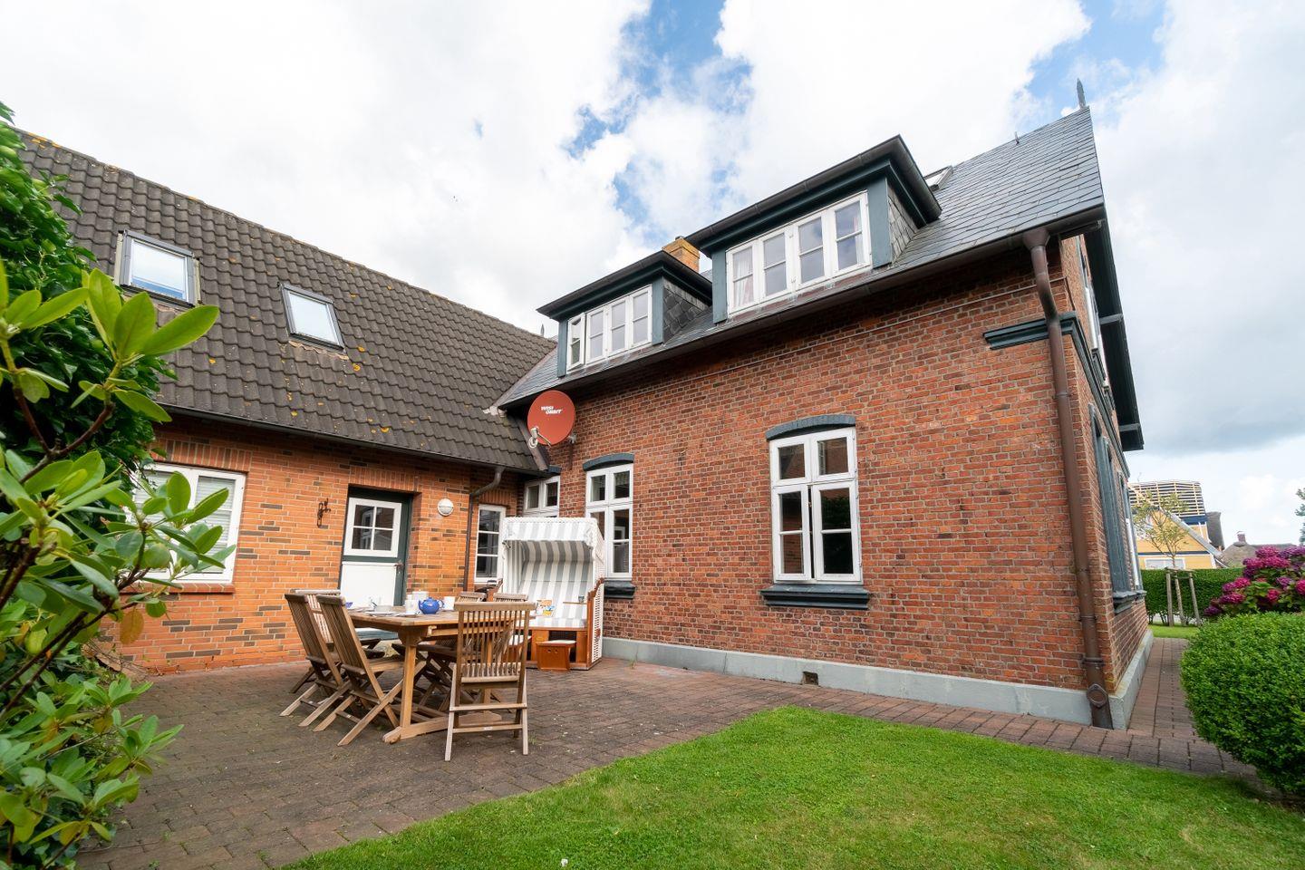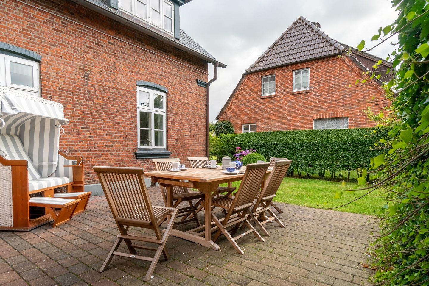 Großzügiges und stilvoll eingerichtetes Ferienhaus im idyllischen Inseldorf Oldsum mit hauseigener Sauna, historischen Mylin-Kachelofen und Terrasse mit Strandkorb.