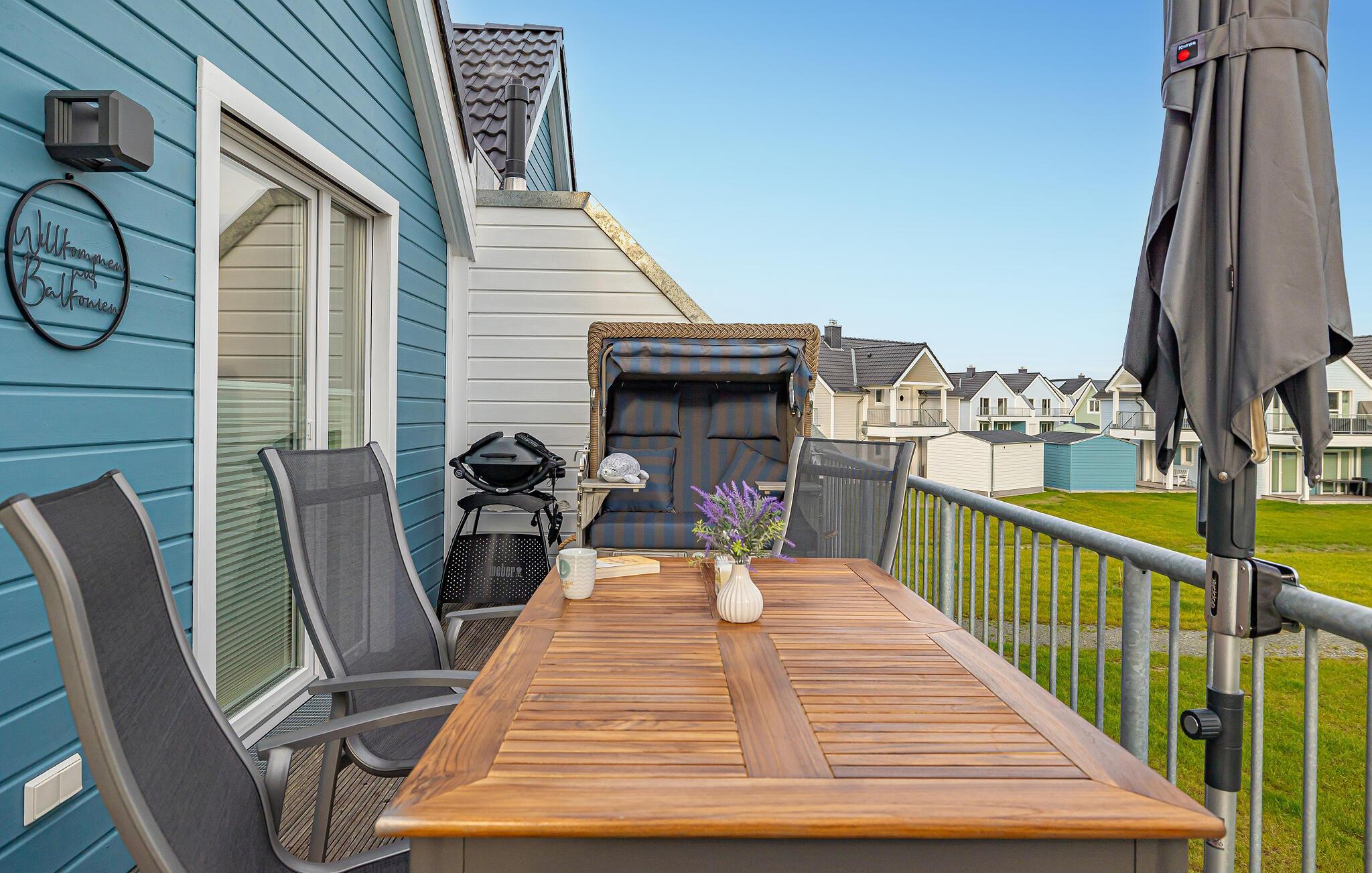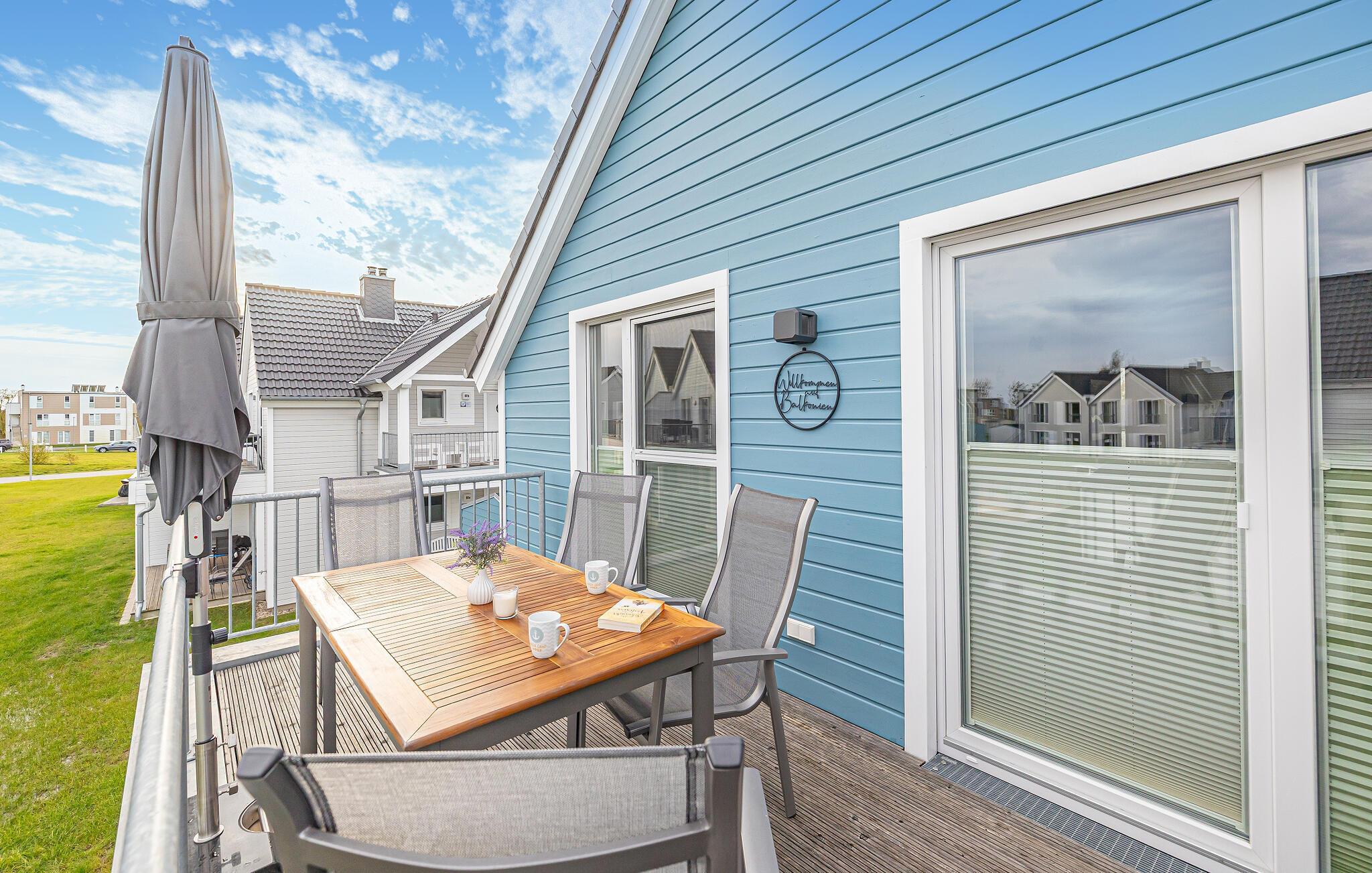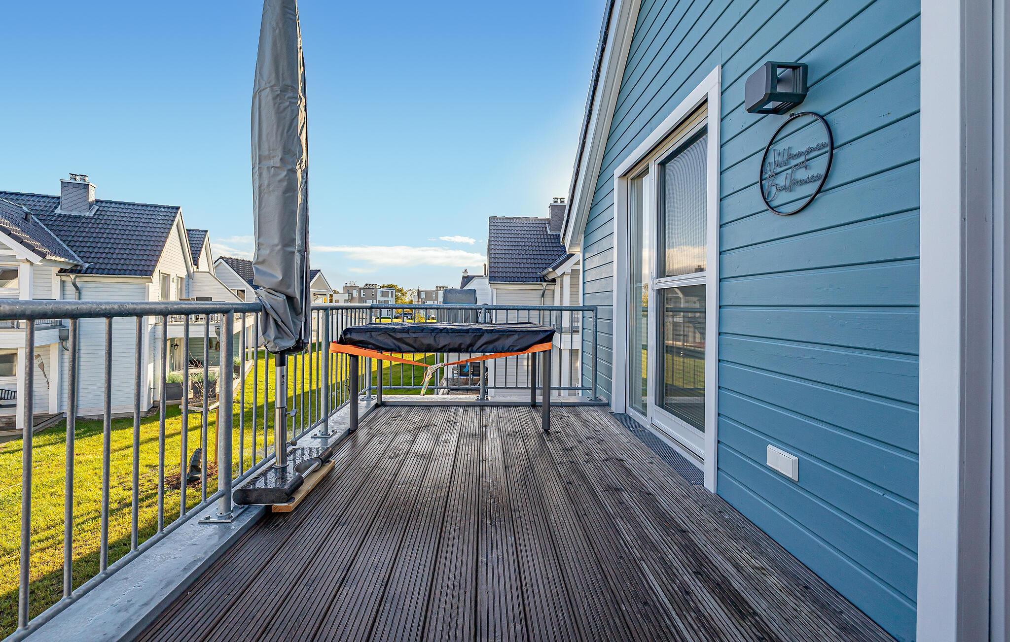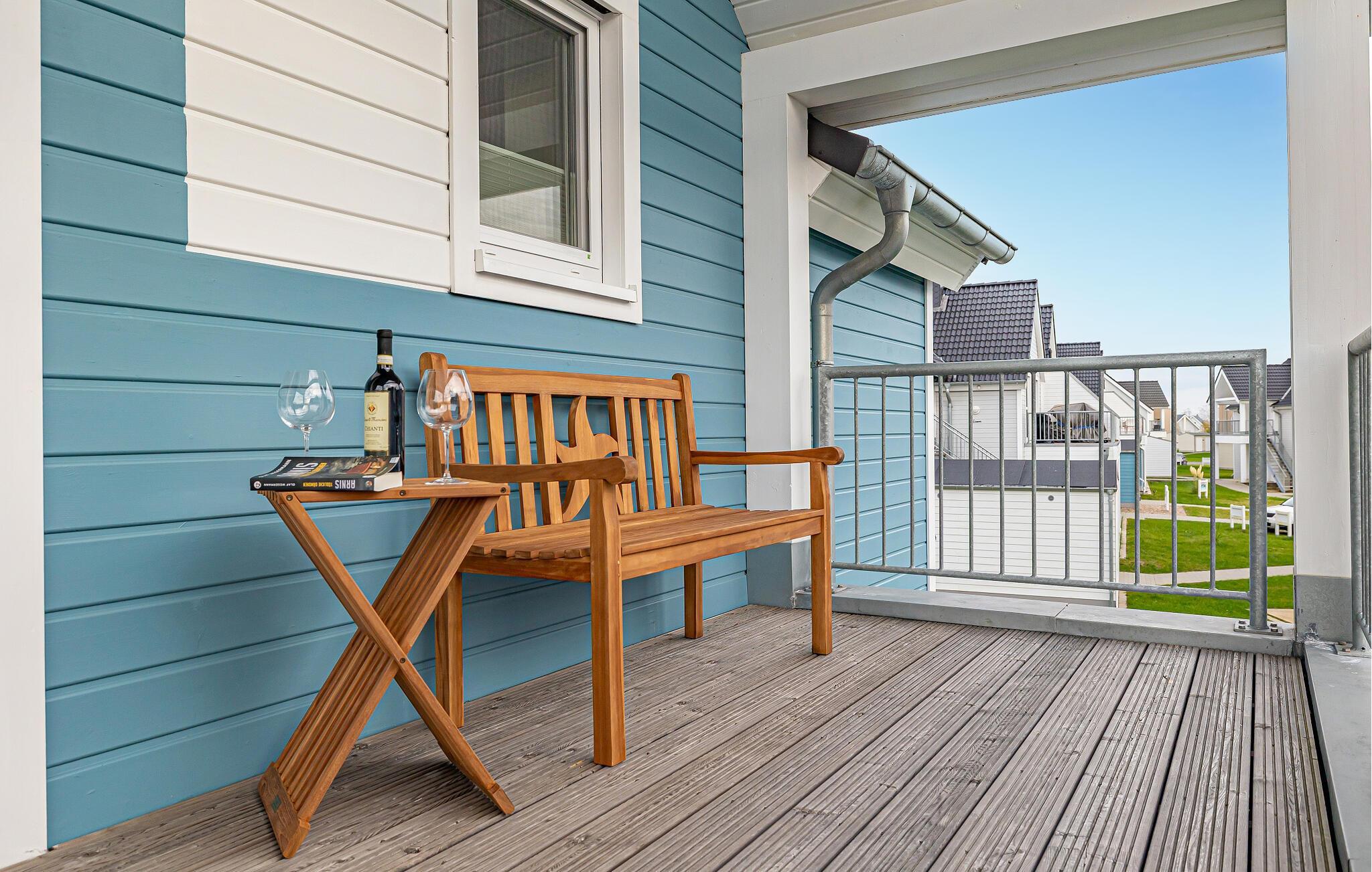 Tilbring også ubekymrede timer udenfor på altanen. På solrige dage kan I spise jeres middag under åben himmel, nippe til forfriskende drinks og nyde solnedgangen eller slappe af i strandkurven. Der er også et cykelskur, hvor I kan stille jeres cykler eller en barnevogn.