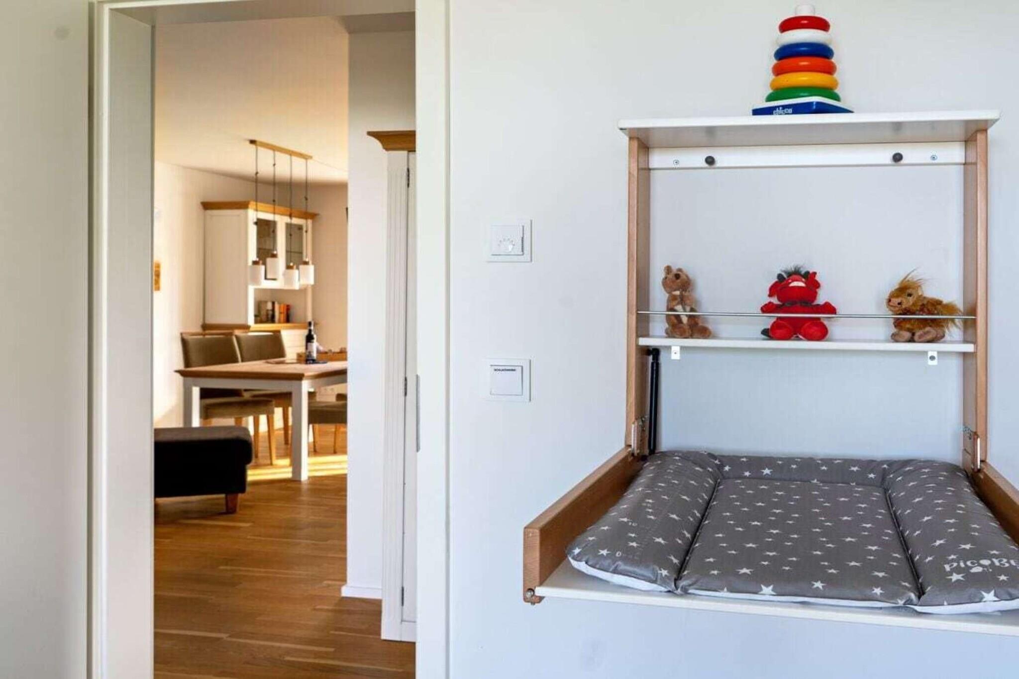 Auf der Kapitäns-Halbinsel des OstseeResort Olpenitz, in der Kapitänsstraße 50 gelegen, bietet diese 3 Zimmer “Ferienwohnung MEERwert by Seeblick Ferien” von allen "Sternhäusern“ den mit Abstand schönsten Blick auf die Marina, die beste Lage und einen Anlaufpunkt für Erholungsurlaub auf 77m² im Erdgeschoss. Die Wohnung ist sehr Familien- und überaus kinderfreundlich und in unmittelbarer Nähe zum Weidefelder Sandstrand. Die Hafenpromenade des OstseeResort Olpenitz lädt mit wachsendem Angebot zum Flanieren ein, während der Segel- und Sportboothafen für Hafenkino sorgt. Der Eingangsbereich führt vorbei an einem schönen Badezimmer. Dies lässt Wellnessherzen höher schlagen, denn es verfügt über XXL bodengleiche Dusche und über eine Sauna (Infrarotkabine) mit Farblichttherapie sowie integriertem Hifi-Sound-System mit USB-Schnittstelle. Hier darf zur eigenen Lieblingsmusik nach dem Strandspaziergang ausgeruht und geträumt werden. Auf der anderen Seite folgen zwei gut gestaltete Schlafzimmer mit Platz für maximal vier Erwachsene und einen traumhaften Blick auf`s Wasser. Der Masterbedroom verfügt über ein Boxspringbett (1,80 x 2,00) mit zusätzlichem Smart TV, während ein hochwertiges Etagenbett (auch für Erwachsene 0,90 x 2,00) im zweiten Schlafzimmer auf Sie wartet. Im Fokus steht aber der perfekt umgesetzte lichtdurchflutete Wohn- und Essbereich mit Holz befeuertem Kaminofen und bodentiefen Fenstern, durch die sich der Wohnbereich mit der Natur verbindet. Moderne und hochwertige Möbel verleihen dem Herz der Wohnung Charme und Gemütlichkeit. Der Kaminofen mit seinem knisternden Feuer und die Fußbodenheizung verwandeln in diesem gemütlichen Ambiente selbst nordische Schietwettertage in heimelige Kuschelstunden. WLAN über Glasfaseranschluss und Smart TV mit Telekom Home Entertainment Programm sorgen ebenfalls für Indoor-Unterhaltung. Zwei überdachte Sonnenterrassen (Süd- und Westausrichtung) mit direktem Zugang in den Garten und die liebevollen Details in der Ausstattung versprechen Genuss von Sonnenauf - bis -untergang, während die Grünfläche um das Haus zum Sonnenbaden, Spielen und Verweilen einlädt. Der Hafenblick mit traumhaften Sonnenuntergängen bietet echten MEERwert. Die offene Küche mit hochwertiger Ausstattung lässt keine Wünsche offen. Bis ins kleinste Detail liebevoll eingerichtet liegt sogar ein Kindergeschirr bereit. Am Esstisch lassen sich Urlaubsmahlzeiten genießen. Von hier aus fällt der Blick durch die bodentiefen Fenster auf die anliegende Terrasse, die Richtung Ostsee ausgerichtet ist und mit Südausrichtung traumhafte Sonnenstunden verspricht. Frühstücken bei Morgensonne, ein Grillabend oder ein romantisches Candle Light Dinner – unvergessliche Urlaubsmomente sind hier garantiert. Das ist Urlaubsfeeling mit Seeblick Ferien ORO in der Ferienwohnung MEERwert. Auch an die “Lütten” wird gedacht: Für Indoor- Unterhaltung sorgen verschiedene Spiele, Kinderbücher und Spielsachen sowie eine kleine Holzeisenbahn. Zusätzlich lädt ein CD Spieler zum Hörbuchhören ein.Über das internetfähige Radio kann dem Lieblingssender gelauscht werden. Zudem ist das zweite Schlafzimmer mit einem Nachtlicht ausgestattet. Auch ein Rausfallschutz für das Etagenbett ist vorhanden. Steckdosensicherungen, Kinderhochstuhl, Babybett und sogar ein Tritthocker finden sich in der umfangreichen Ausstattung. Ein Wickeltisch ist in dieser Wohnung selbstverständlich. Vor dem Haus steht ein eigener Parkplatz und ein abschließbarer Fahrradschuppen zur Verfügung. Gemeinsam Urlaub machen - aber getrennt wohnen? Auch für eine Großfamilie oder zwei Pärchen/kleine Familien, die zwar gemeinsam Urlaub machen, aber getrennt wohnen möchten, ist diese Wohnung in Verbindung mit der Fewo Kapitän James Cook in der ersten Etage perfekt geeignet: Im selben Haus, nur auf zwei verschiedenen Etagen gelegen, bieten diese beiden Wohnungen im Doppelpack zusammen Platz für bis zu 9 Personen- aber auch den nötigen Abstand! !****Strom- und Wasserkosten sind nicht im Reisepreis enthalten und werden separat nach Verbrauch abgerechnet. Bettwäsche und Handtücher können in Form von Wäschepaketen (ca. 21,-EURO pro Person) direkt bei der Agentur Seeblick Ferien ORO gebucht werden. Ihre Betten wären dann bei Anreise bereits bezogen****! Eine Kaution ist bei Anreise in Höhe von 300,-EURO in BAR zu hinterlegen. Diese wird sofort beim Check Out nach Abzug der Verbrauchskosten zurückerstattet. Das Ostseeresort Olpenitz befindet sich momentan noch in einem ständigen Wandel mit Bautätigkeit. Dies ist bei der Preisberechnung bereits berücksichtigt und stellt keinen Mangel dar.