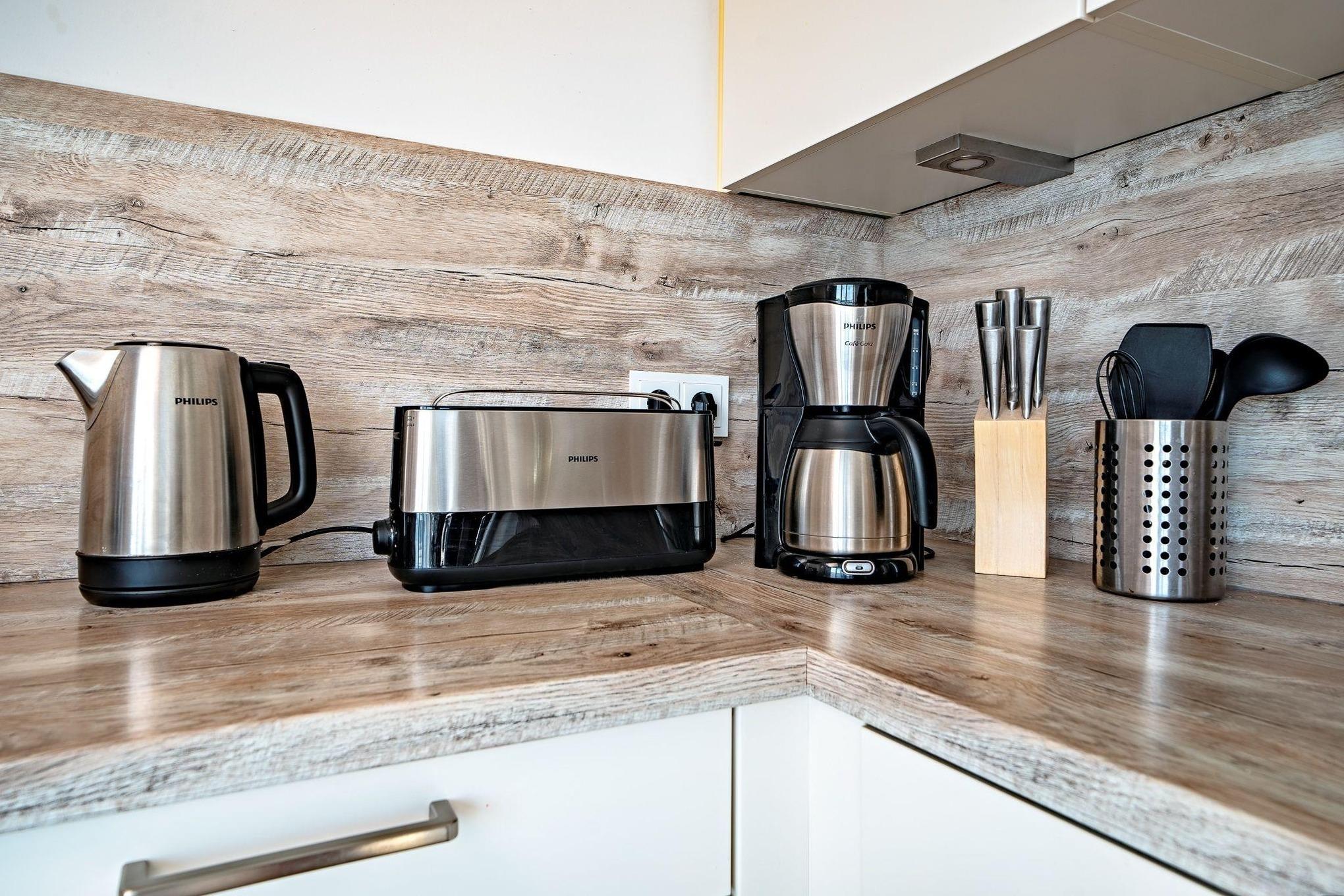 Die gesamte Ferienwohnung lässt sich über die Fußbodenheizung einfach temperieren und bietet dank des Kaminofens und der Sauna das ganze Jahr über eine angenehme Wärme und eine gemütlich-wohlige Atmosphäre. Für Unterhaltung sorgen im Wohnbereich ein 55 Zoll Smart TV mit Bluetooth und Samsung Soundbar, eine Playstation, Blu-ray-Player, ein separates Internet Radio sowie eine Spielesammlung.