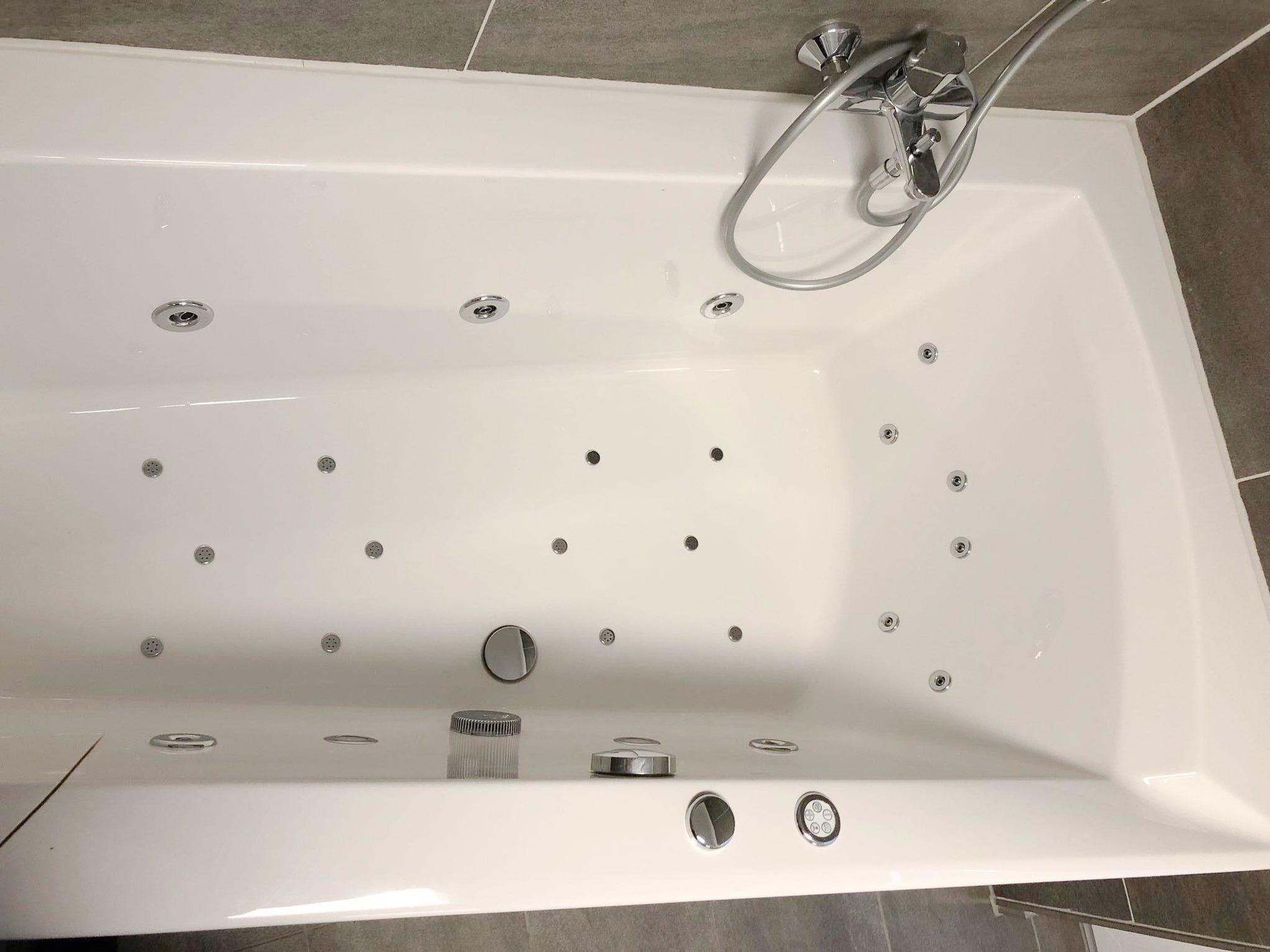 Das Ferienhaus besticht zudem mit einer luxuriösen Ausstattung, die keine Wünsche offenlässt. Entspannen Sie im Whirlpool mit Luft- und Massagedüsen sowie Farblichttherapie oder gönnen Sie sich eine erfrischende Dusche im modernen Bad mit WC. Ein zusätzliches Gäste-WC im Erdgeschoß sorgt für noch mehr Komfort. Die voll ausgestattete Einbauküche mit Spülmaschine, Kochfeld, Backofen, Mikrowelle und Kühlschrank mit Eisfach ermöglicht Ihnen die Zubereitung Ihrer Lieblingsspeisen.