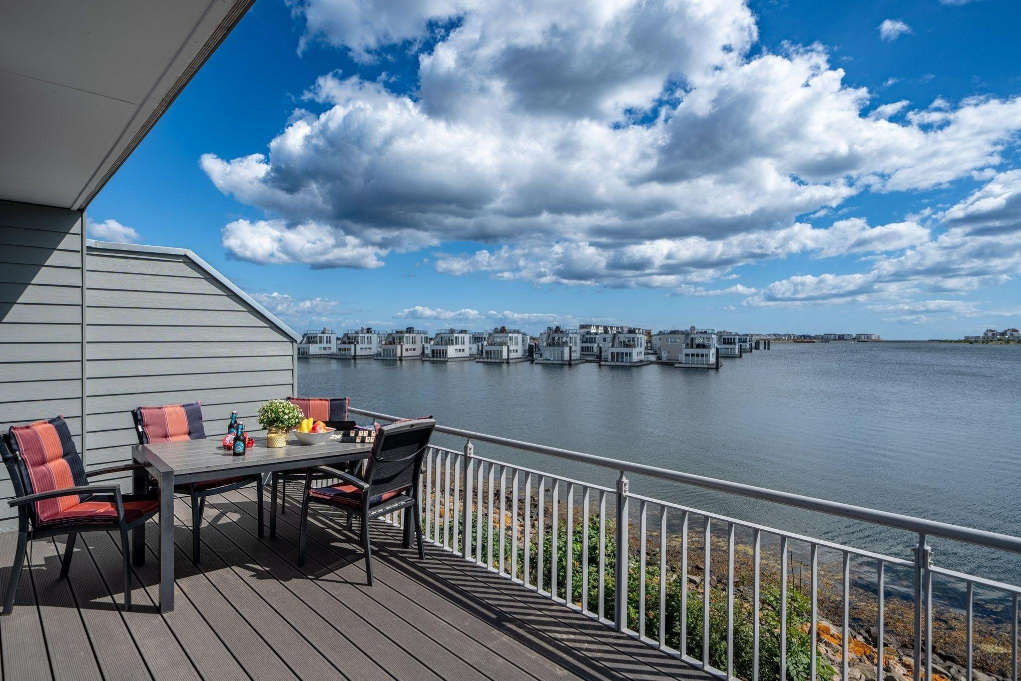 Die Terrassen dieser traumhaften Unterkunft bieten ganztägig Sonne – von Sonnenaufgang bis Sonnenuntergang. Jede Etage verfügt über einen ansprechenden Außenbereich, wobei das Highlight die 360°-Dachterrasse mit sensationellem Panoramablick ist. Von hier aus genießen Sie die Aussicht auf die Marina, die Ostsee, die Schleimündung, den Ostseefjord Schlei und das umliegende Naturschutzgebiet.