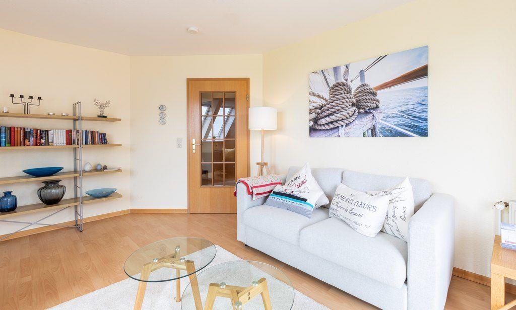 Die Ferienwohnung (ca. 70m²) umfasst einen gemütlichen Wohnraum, zwei Doppelschlafzimmer, eine großzügige Küche mit Geschirrspüler und Essecke, sowie ein großes Bad mit Wanne.