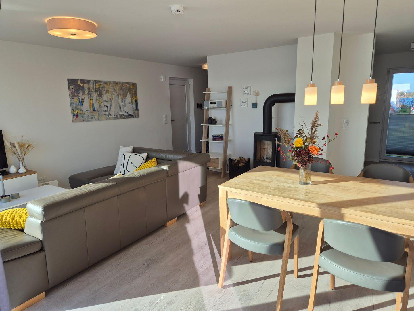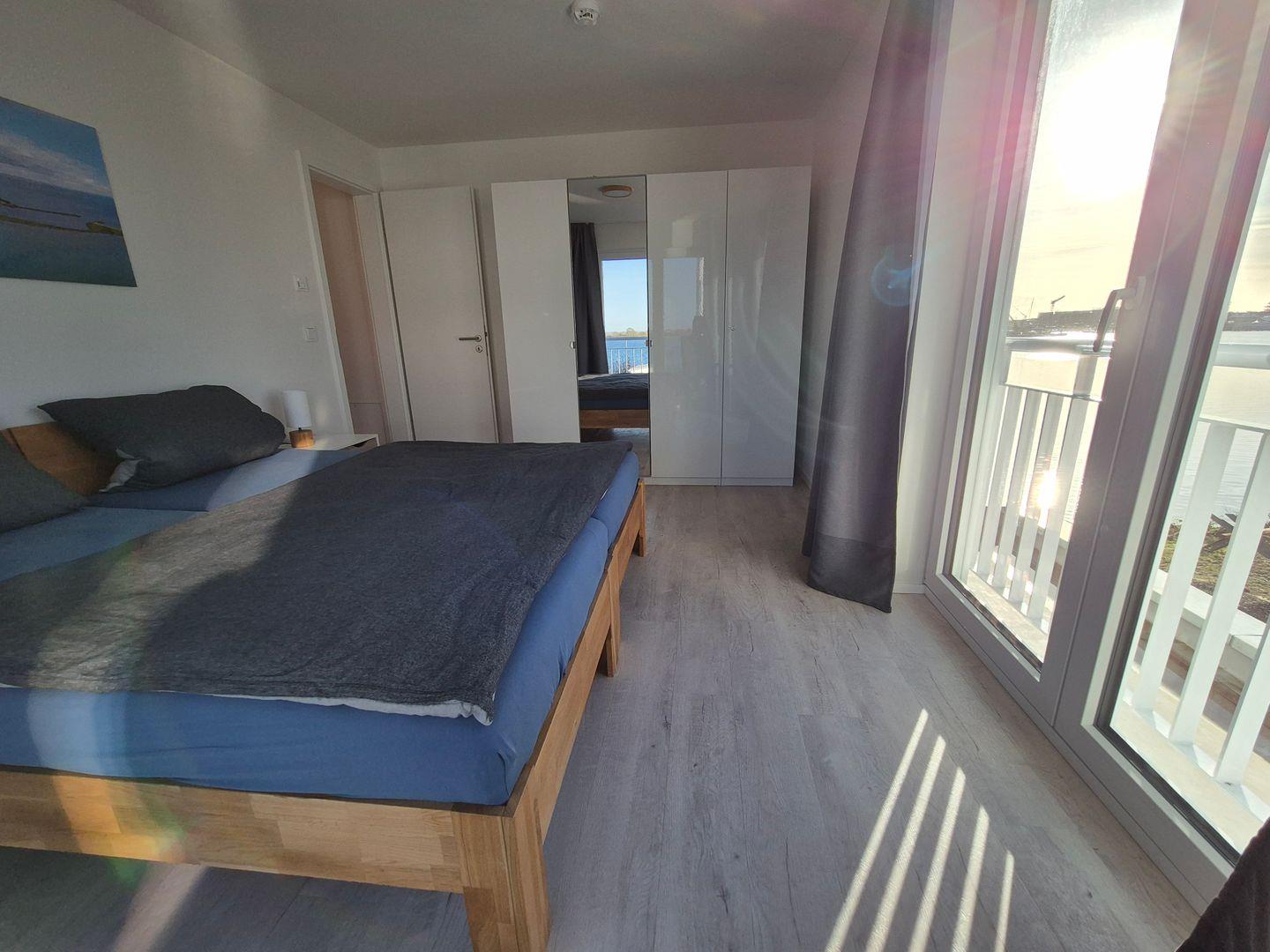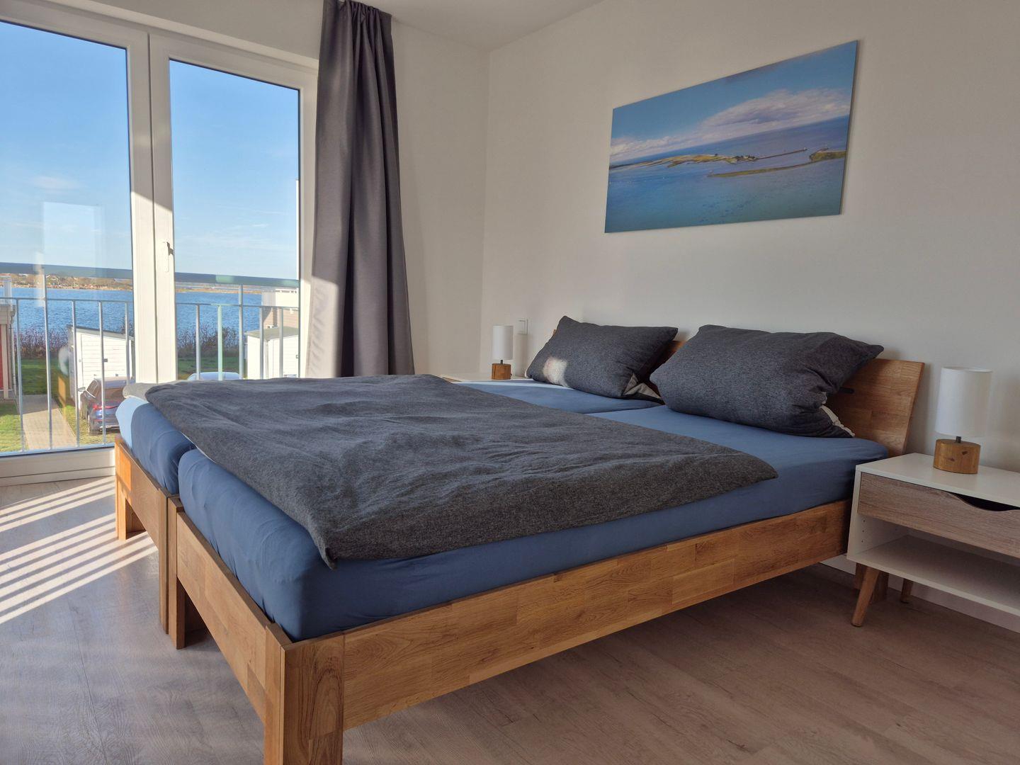 Das Ferienhaus "Süd-See-Seite" lässt auf ca. 127m² keine Wünsche offen. Der modern und stilvoll eingerichtete Wohn- und Essbereich lädt zum Verweilen ein und bietet durch bodentiefe Fenster einen wunderschönen Blick auf den Hafen. Von hier aus gelangen Sie zur großzügigen Terrasse, auf der Sie hervorragend Ihr Frühstück genießen können. Die hochwertig ausgestattete Küche ist für gesellige Kochabende bestens geeignet. Im Erdgeschoss befindet sich ein Gäste-WC. Im 1. Obergeschoss bieten zwei Schlafzimmer Platz für 4 Personen. Das Hauptschlafzimmer ist mit einem großen Doppelbett ausgestattet und zur Hafenseite ausgerichtet. Im Gegensatz dazu, befinden sich im anderen Schlafzimmer zwei Einzelbetten, welche Sie jedoch problemlos aneinander schieben und somit gemeinsam den Blick auf die Schlei genießen können. Das Badezimmer auf dieser Etage ist mit einer Dusche, sowie einer Badewanne ausgestattet und verspricht Entspannung pur. Ein Highlight des Hauses ist das Studio im 2. Obergeschoss. Auch hier haben Sie wieder einen fantastischen Blick über die Schlei und den gesamten Hafen des Resorts. Dieser zusätzliche Wohnbereich ist mit einer komfortablen Schlafcouch für zwei Personen ausgestattet. Vom Studio aus erreichen Sie die großzügige Dachterrasse, von der Sie den Sonnenuntergang bestaunen können. Zusätzlich befindet sich im Dachgeschoss die Sauna und eine weitere große Dusche. Perfekt um den Tag mit etwas Wellness ausklingen zu lassen. Es handelt sich bei dem Ferienhaus um die südliche Haushälfte, wodurch Sie viel Licht und Sonne im Haus und auf den Terrassen haben. Zwei PKW Stellplätze befinden sich direkt vor dem Haus, mitgebrachte oder geliehene Fahrräder können Sie im abschließbaren Schuppen unterstellen. Eine E-Ladestation befindet sich ebenfalls vor dem Haus.