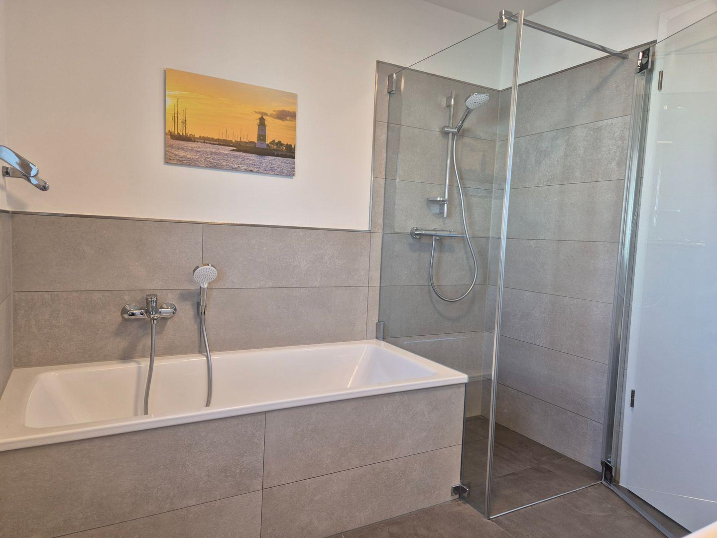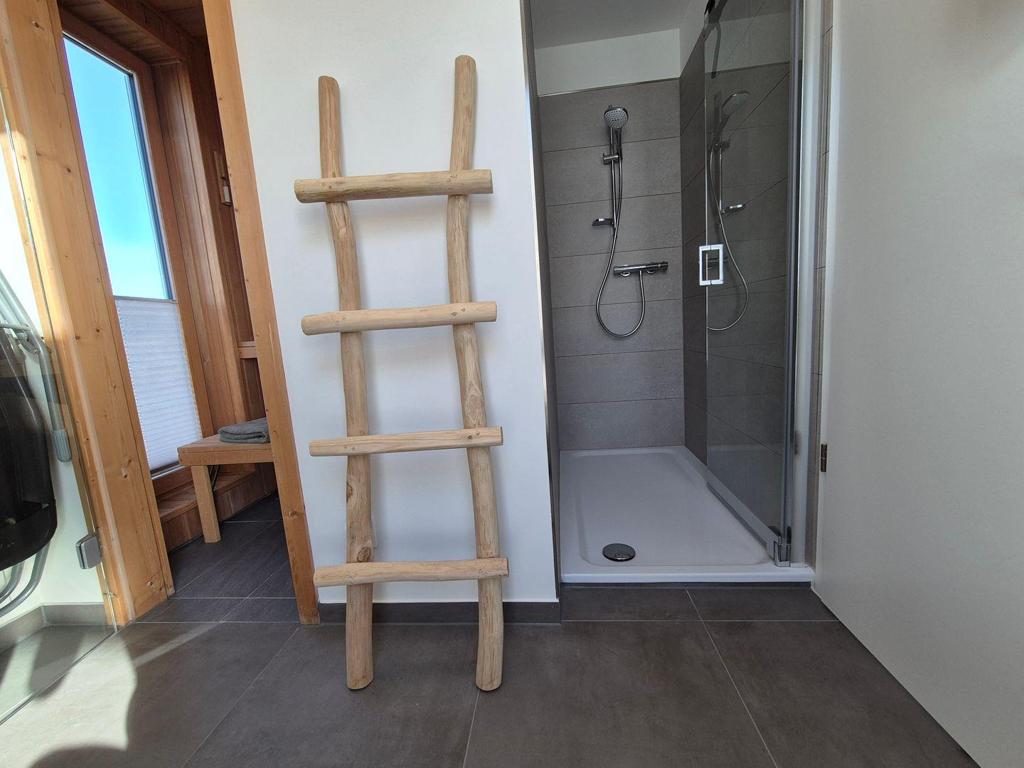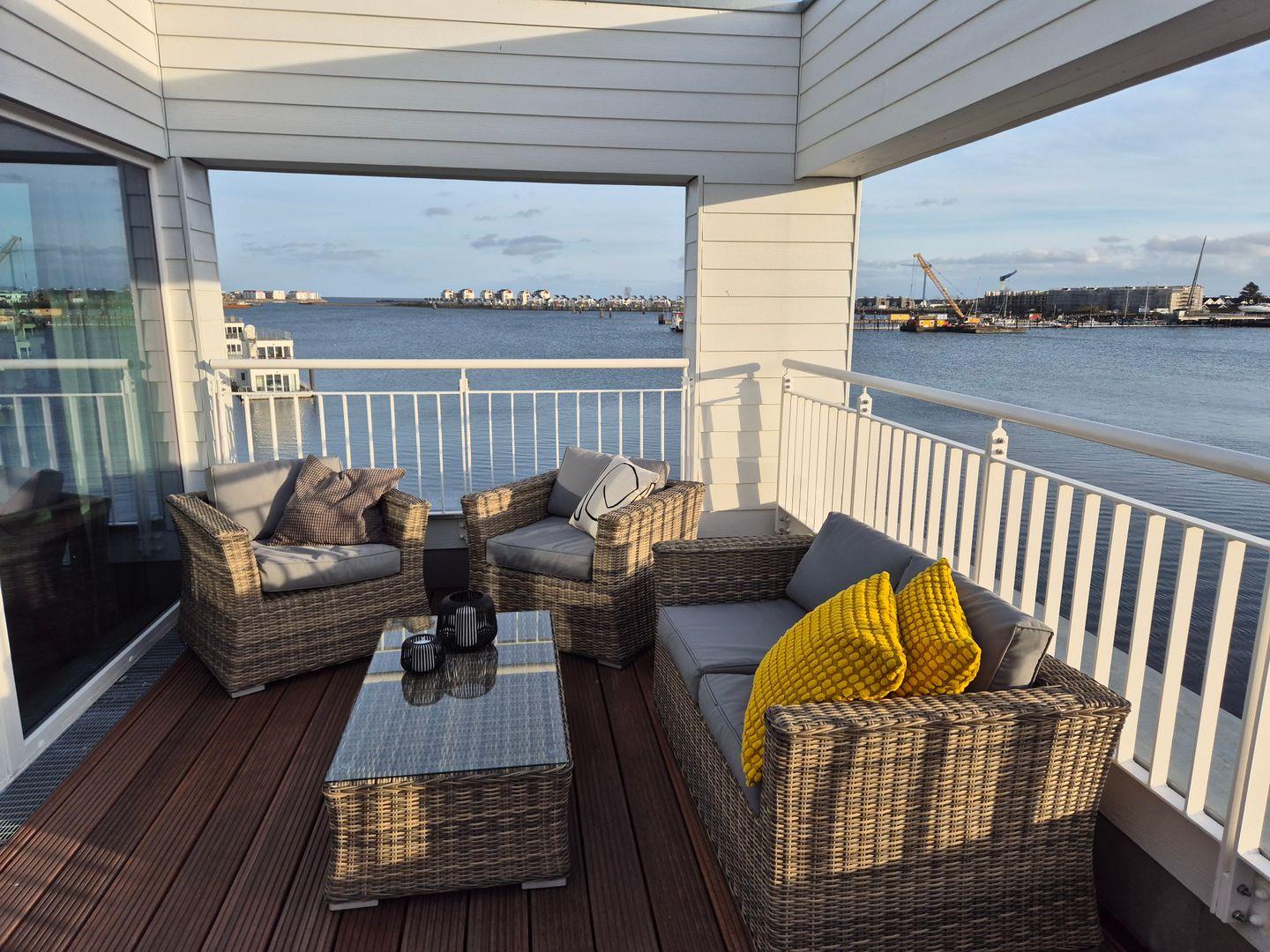 Das Ferienhaus "Süd-See-Seite" lässt auf ca. 127m² keine Wünsche offen. Der modern und stilvoll eingerichtete Wohn- und Essbereich lädt zum Verweilen ein und bietet durch bodentiefe Fenster einen wunderschönen Blick auf den Hafen. Von hier aus gelangen Sie zur großzügigen Terrasse, auf der Sie hervorragend Ihr Frühstück genießen können. Die hochwertig ausgestattete Küche ist für gesellige Kochabende bestens geeignet. Im Erdgeschoss befindet sich ein Gäste-WC. Im 1. Obergeschoss bieten zwei Schlafzimmer Platz für 4 Personen. Das Hauptschlafzimmer ist mit einem großen Doppelbett ausgestattet und zur Hafenseite ausgerichtet. Im Gegensatz dazu, befinden sich im anderen Schlafzimmer zwei Einzelbetten, welche Sie jedoch problemlos aneinander schieben und somit gemeinsam den Blick auf die Schlei genießen können. Das Badezimmer auf dieser Etage ist mit einer Dusche, sowie einer Badewanne ausgestattet und verspricht Entspannung pur. Ein Highlight des Hauses ist das Studio im 2. Obergeschoss. Auch hier haben Sie wieder einen fantastischen Blick über die Schlei und den gesamten Hafen des Resorts. Dieser zusätzliche Wohnbereich ist mit einer komfortablen Schlafcouch für zwei Personen ausgestattet. Vom Studio aus erreichen Sie die großzügige Dachterrasse, von der Sie den Sonnenuntergang bestaunen können. Zusätzlich befindet sich im Dachgeschoss die Sauna und eine weitere große Dusche. Perfekt um den Tag mit etwas Wellness ausklingen zu lassen. Es handelt sich bei dem Ferienhaus um die südliche Haushälfte, wodurch Sie viel Licht und Sonne im Haus und auf den Terrassen haben. Zwei PKW Stellplätze befinden sich direkt vor dem Haus, mitgebrachte oder geliehene Fahrräder können Sie im abschließbaren Schuppen unterstellen. Eine E-Ladestation befindet sich ebenfalls vor dem Haus.