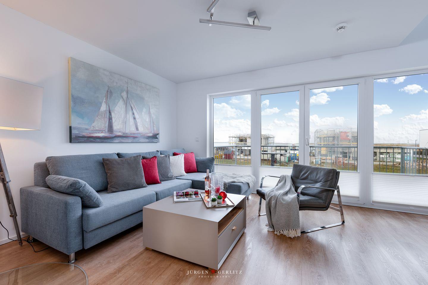 Erleben Sie jetzt die Geschichten, von denen Sie später gerne erzählen möchten! Die exklusive Ferienwohnung "Ab ans Meer" im OstseeResort Olpenitz liegt nur wenige Meter vom Wasser entfernt. Der lichtdurchflutete Wohnbereich lädt mit seiner gemütlichen Sitzlandschaft an kalten Abenden zu einem Kaminabend ein. Die großzügige Wohnküche mit Essplatz für 6 Personen, ist mit allem was das Herz begehrt ausgestattet. Das Hauptschlafzimmer ist ausgestattet mit einem Doppel-Boxspringbett und verfügt über einen traumhaften Hafenblick. Das zweite Schlafzimmer schaut auf den Ostseefjord Schlei und bietet Ihnen zwei Boxspring-Einzelbetten. Beide Schlafzimmer sind verdunkelbar und verfügen über Flatscreen TVs. Die fünfte Schlafmöglichkeit befindet sich auf dem bequemen Schlafsofa. Das Wellnessbad lädt zum Entspannen ein. Eine Infrarot Wärmekabine mit HiFi-Sound-System und LED-Farblichttherapie, sowie eine große Relax-Badewanne mit Wasserblick stehen nach dem Strandspaziergang zum Wohlfühlprogramm bereit. Von der großen Terrasse haben Sie einen fantastischen Blick über den Segel-und Sportboothafen. Ein kostenfreier Parkplatz befindet sich direkt vor der Unterkunft.
