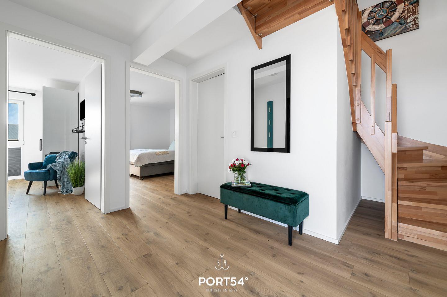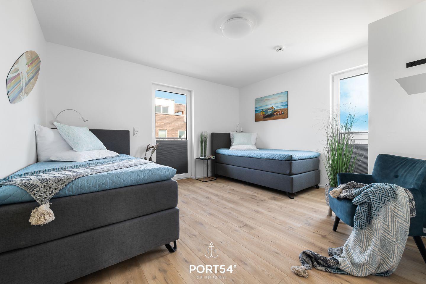 Die Ferienwohnung "Sloop-Lounge" befindet sich im neuerbauten OstseeResort Olpenitz. Starten Sie Ihren wohlverdienten Urlaub in der "Sloop-Lounge" mit Blick auf die Ostsee! Die drei Schlafzimmer, zu finden in der ersten Etage, präsentieren sich als Oase der Erholung. Hochwertige Boxspringbetten laden zu erholsamen Nächten ein, während ein TV und Verdunklungsmöglichkeiten für zusätzlichen Komfort sorgen. Zwei der Schlafzimmer verführen mit großzügigen Doppelbetten (180×200cm), während das dritte Schlafzimmer mit zwei Einzelbetten (100×200cm) und einem eigenen Balkon aufwartet – der perfekte Platz, um den Blick auf den malerischen Hafen von Olpenitz zu genießen. Ein Badezimmer mit Badewanne auf derselben Etage rundet das Wohlfühlerlebnis ab. Im zweiten Obergeschoss eröffnet sich Ihnen eine beeindruckende Fensterfront, die den Wohnbereich in ein lichtdurchflutetes Paradies verwandelt. Hier können Sie auf der gemütlichen Wohnlandschaft entspannen, sei es bei einem spannenden Filmabend oder einer unterhaltsamen Spielrunde. An kühlen Abenden verbreitet der Kamin eine behagliche Wärme. Die voll ausgestattete Küche ist der ideale Ort für gemeinsame Kochabende mit Ihren Liebsten. Ein weiteres Tageslicht-Badezimmer mit ebenerdiger Dusche und Infrarot-Sauna verspricht Wellness pur in Ihrem Urlaub. Die große halb überdachte Terrasse mit Süd-West-Ausrichtung, erreichbar vom Wohnbereich aus, lädt ein zu sonnigen Frühstücken und gemütlichen Grillabenden an warmen Sommerabenden. Vor der Ferienwohnung steht Ihr eigener PKW-Stellplatz bereit – der Startpunkt für unvergessliche Urlaubserlebnisse!